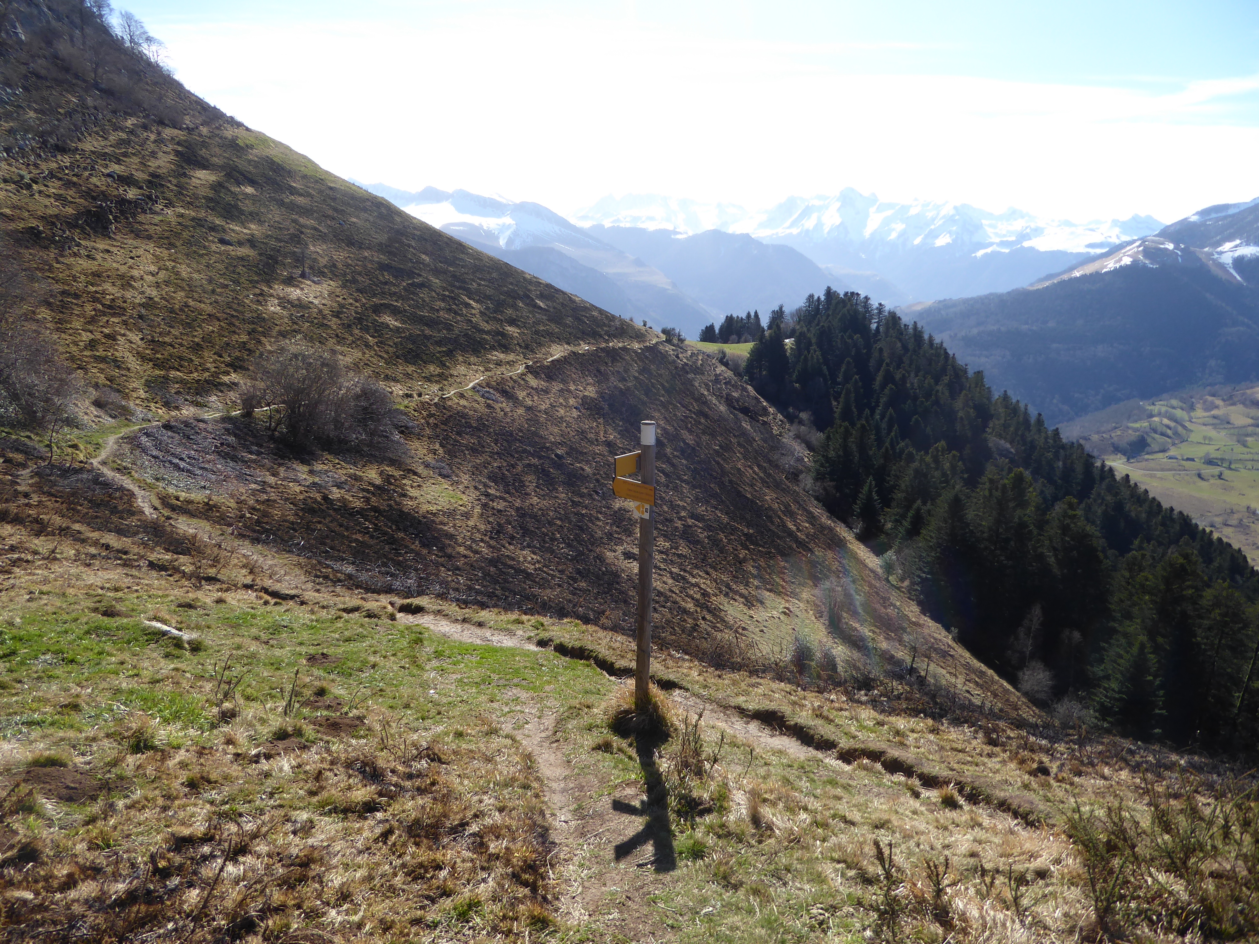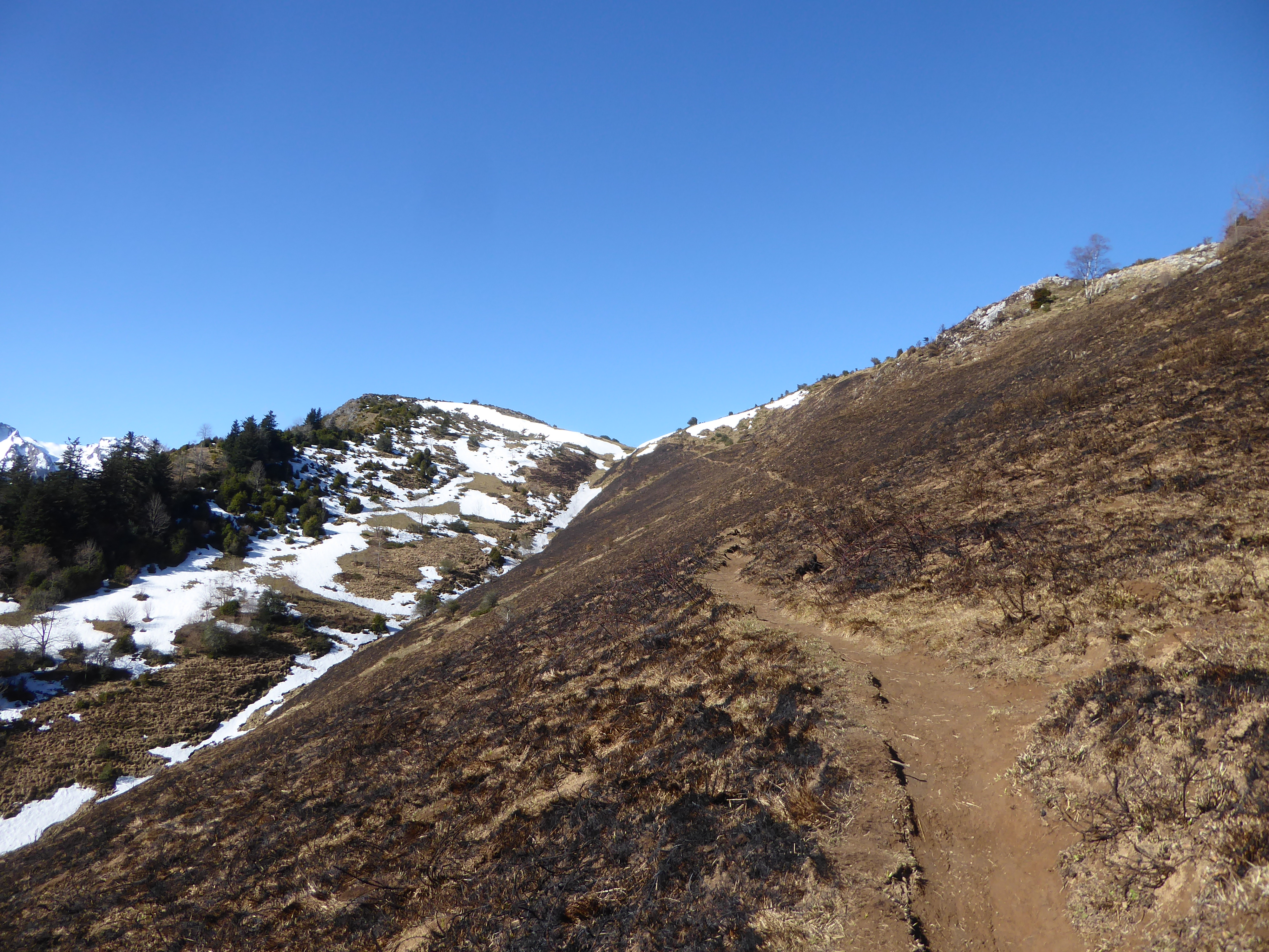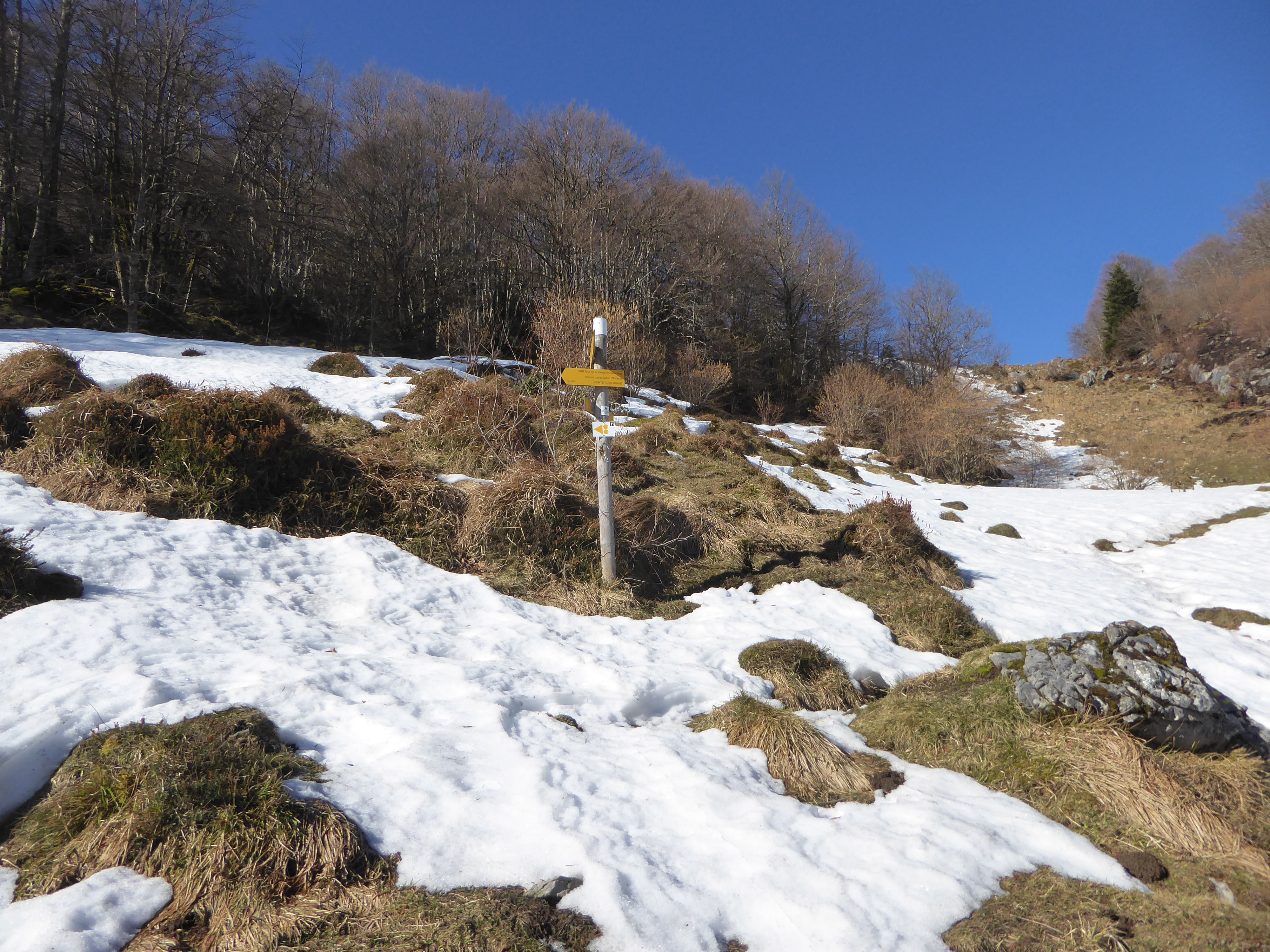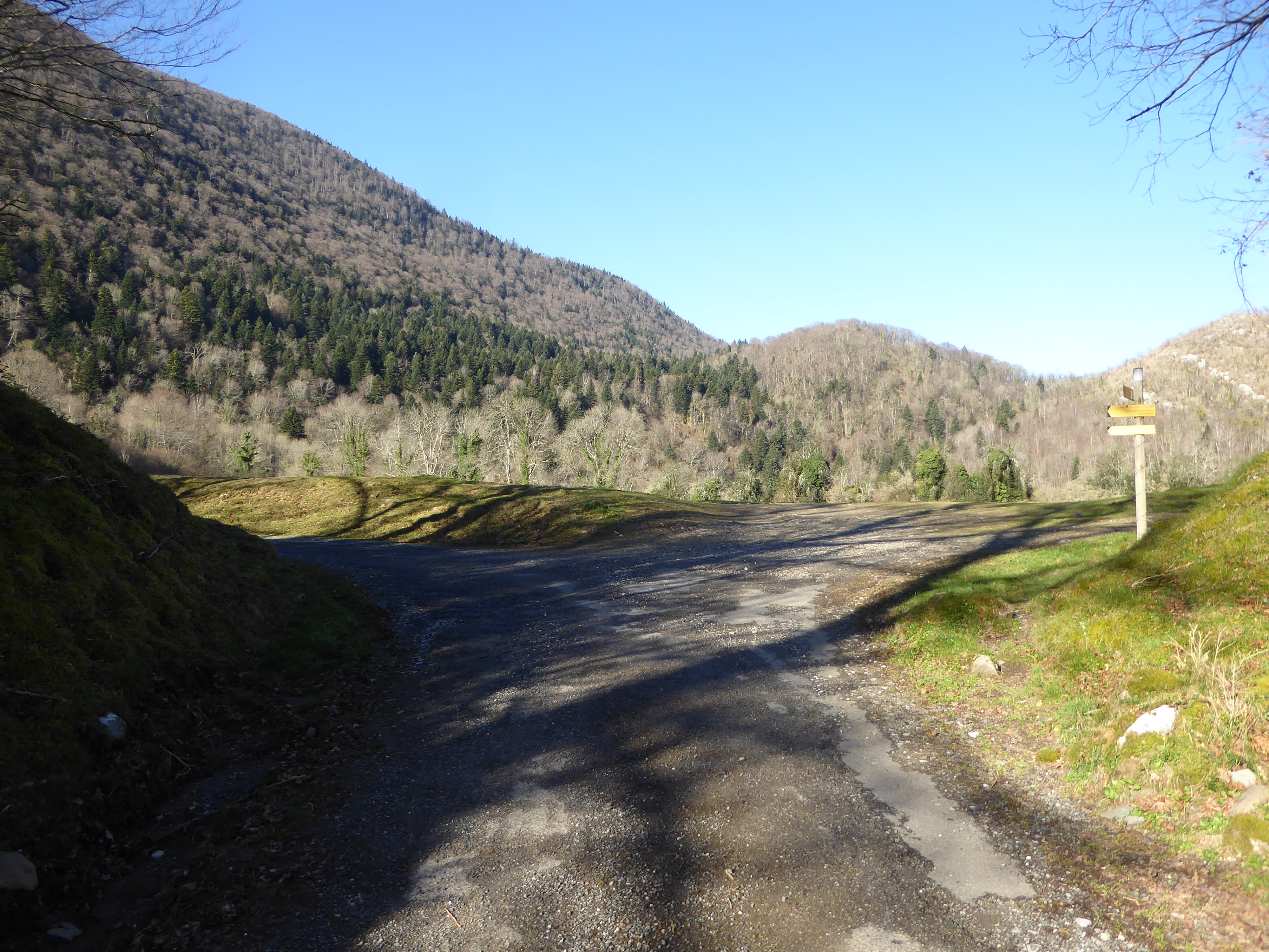 Pente du Bersaut (1232 m) : quitter le GRP pour suivre le chemin montant sur la droite direction Col de la Houn Barrade, aucun balisage dorénavant
