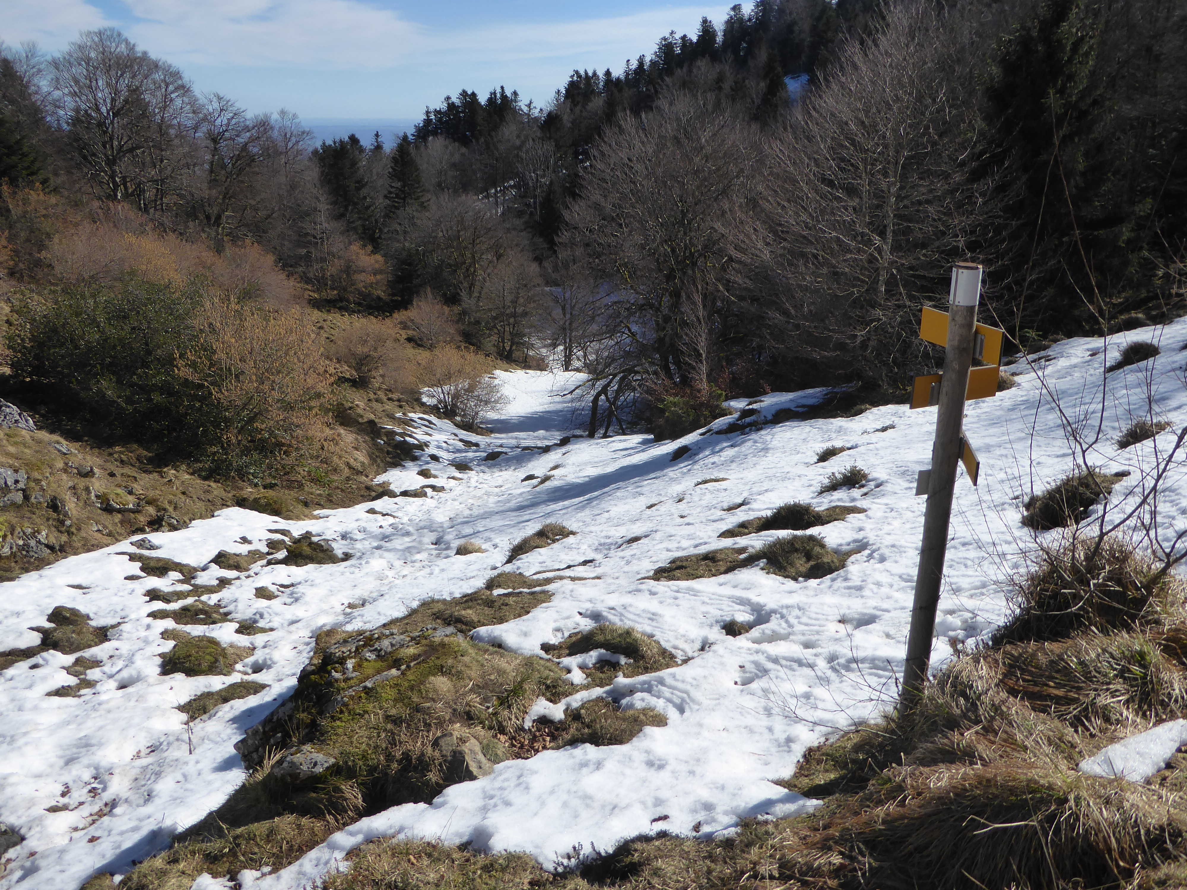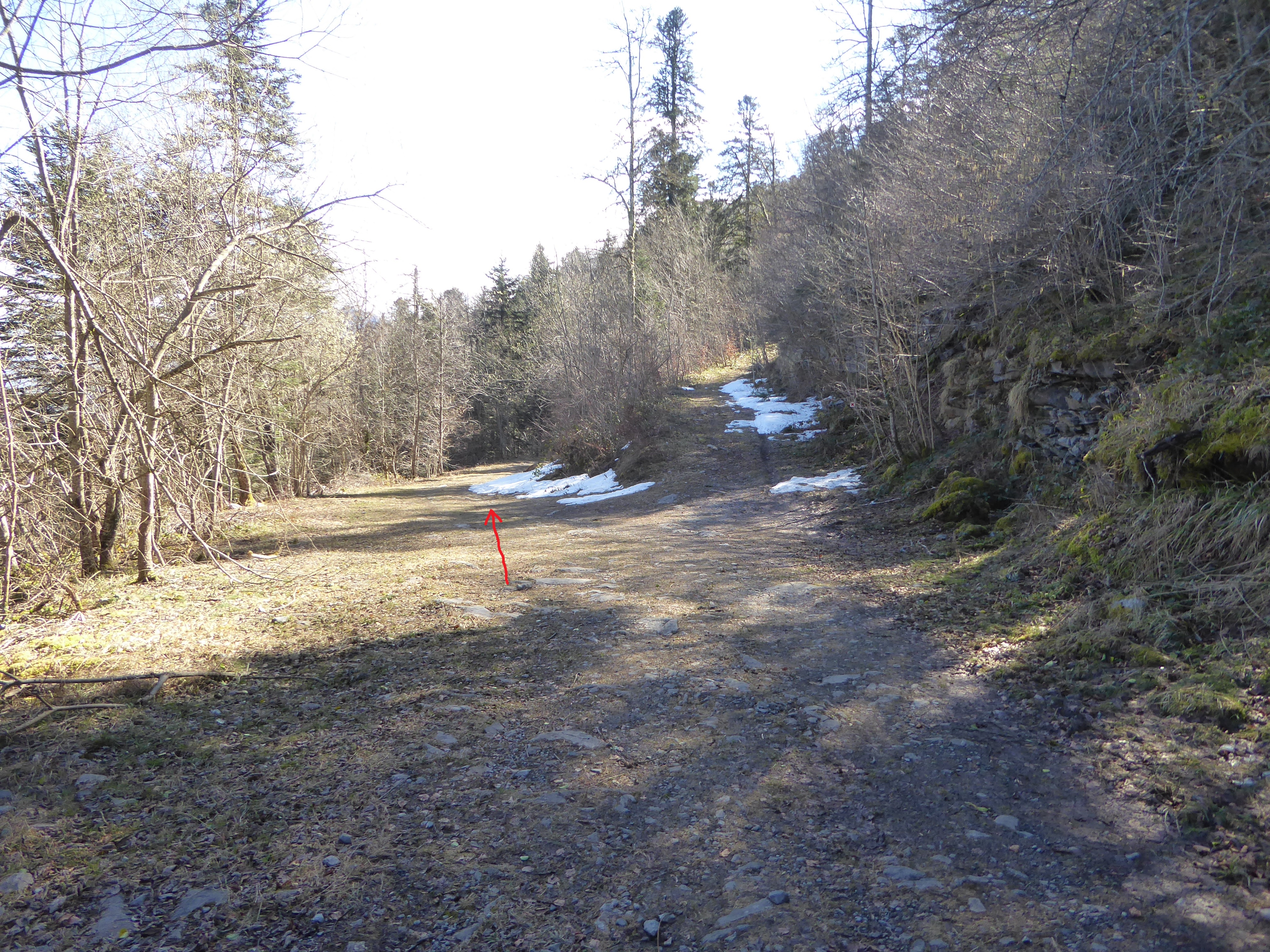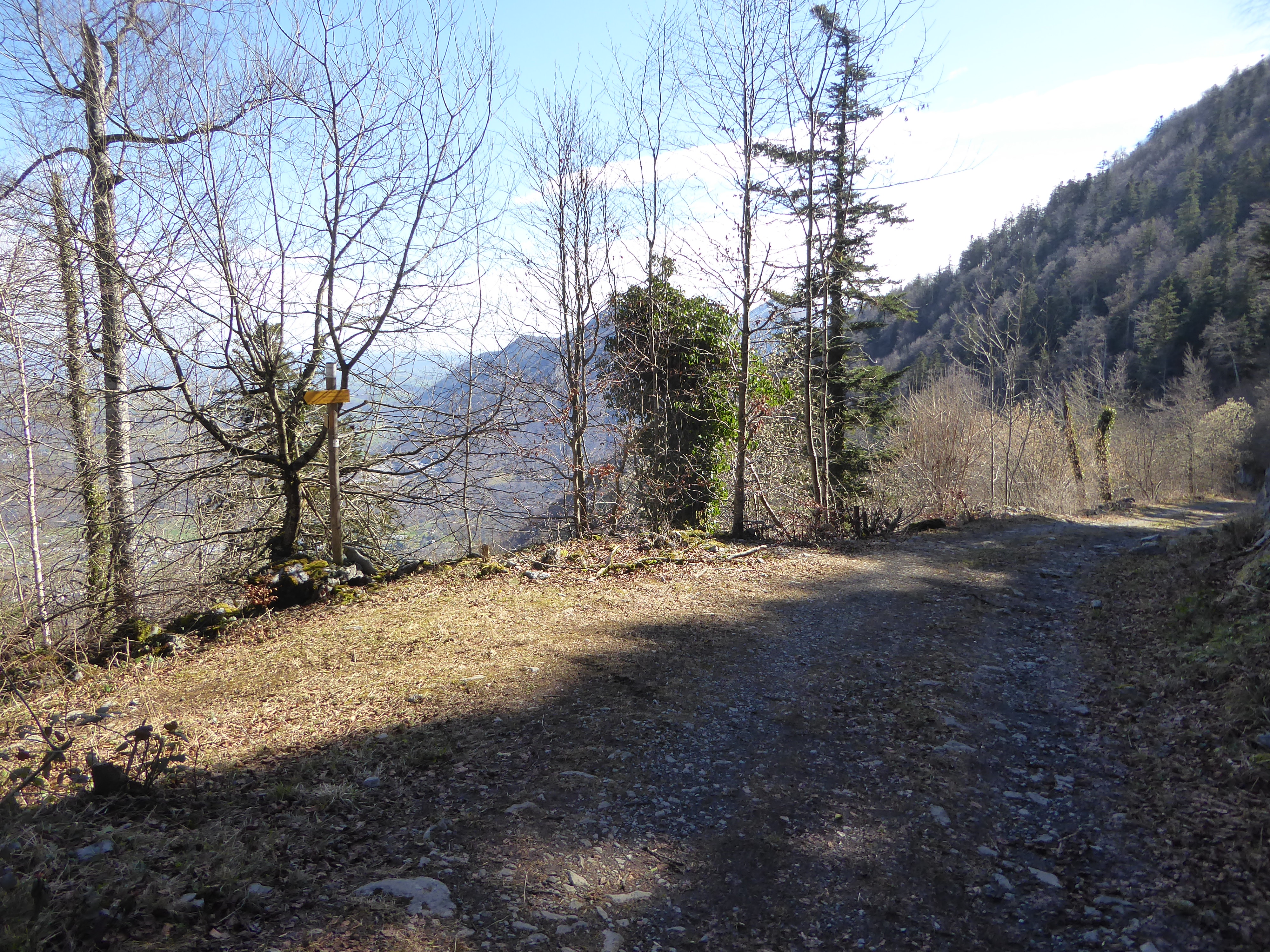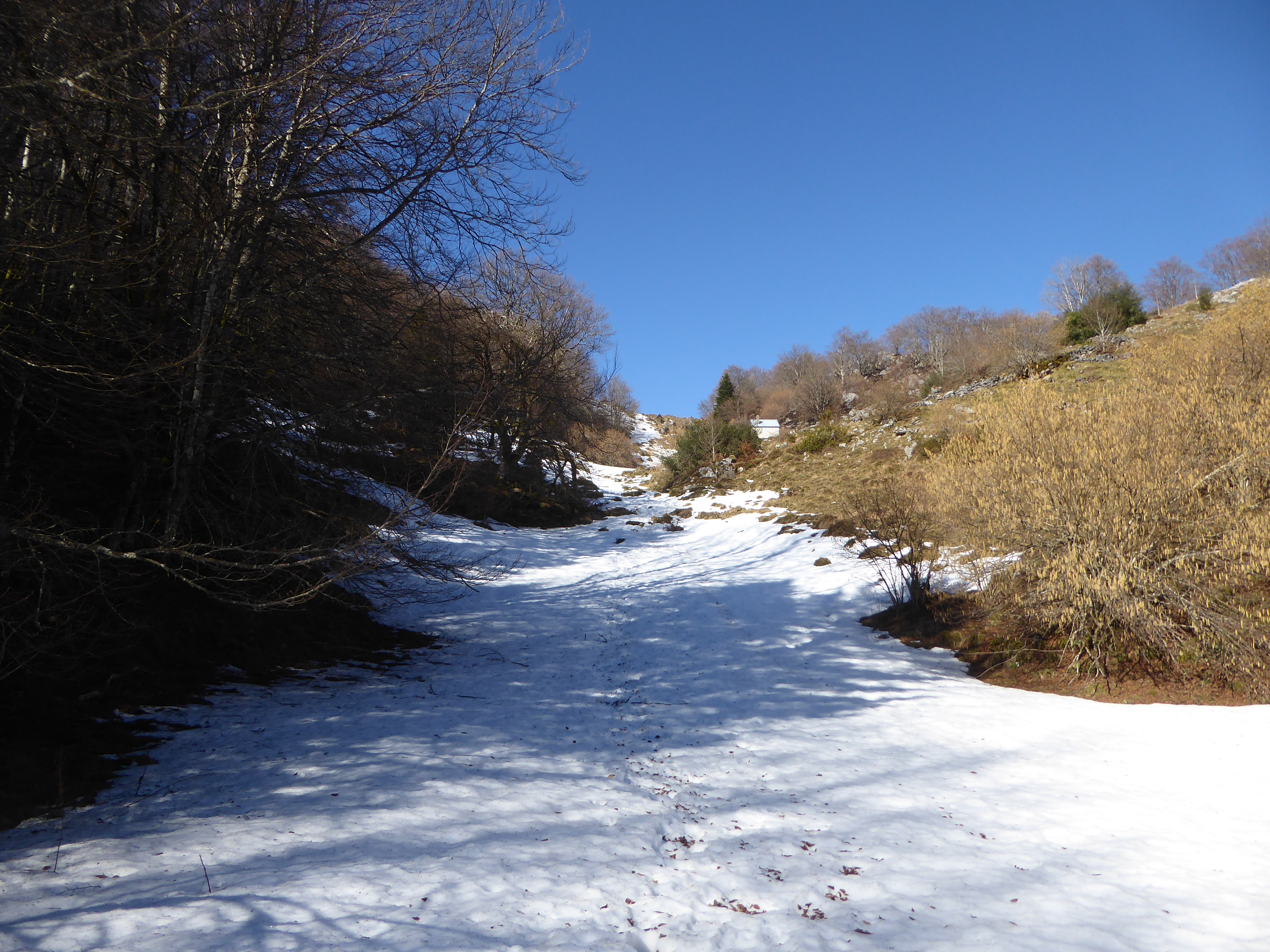 Pente du Bersaut (1232 m) : quitter le GRP pour suivre le chemin montant sur la droite direction Col de la Houn Barrade, aucun balisage dorénavant