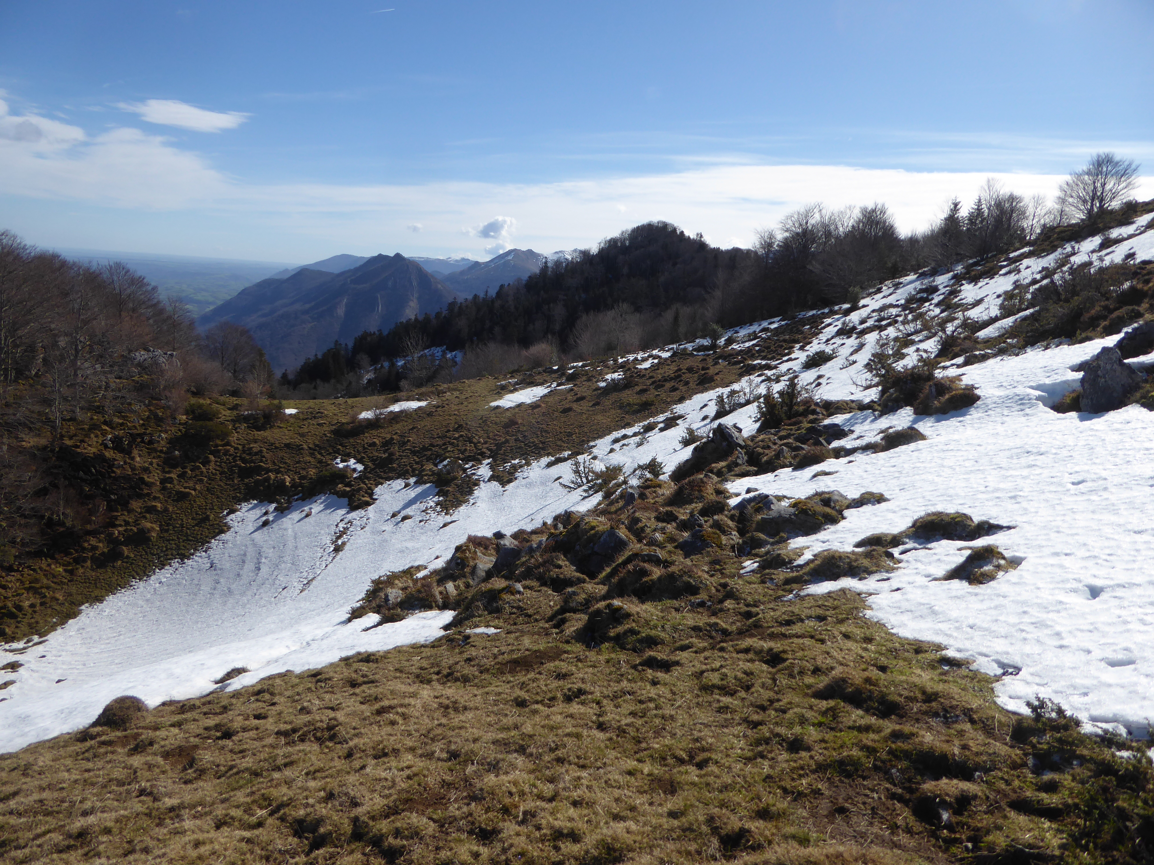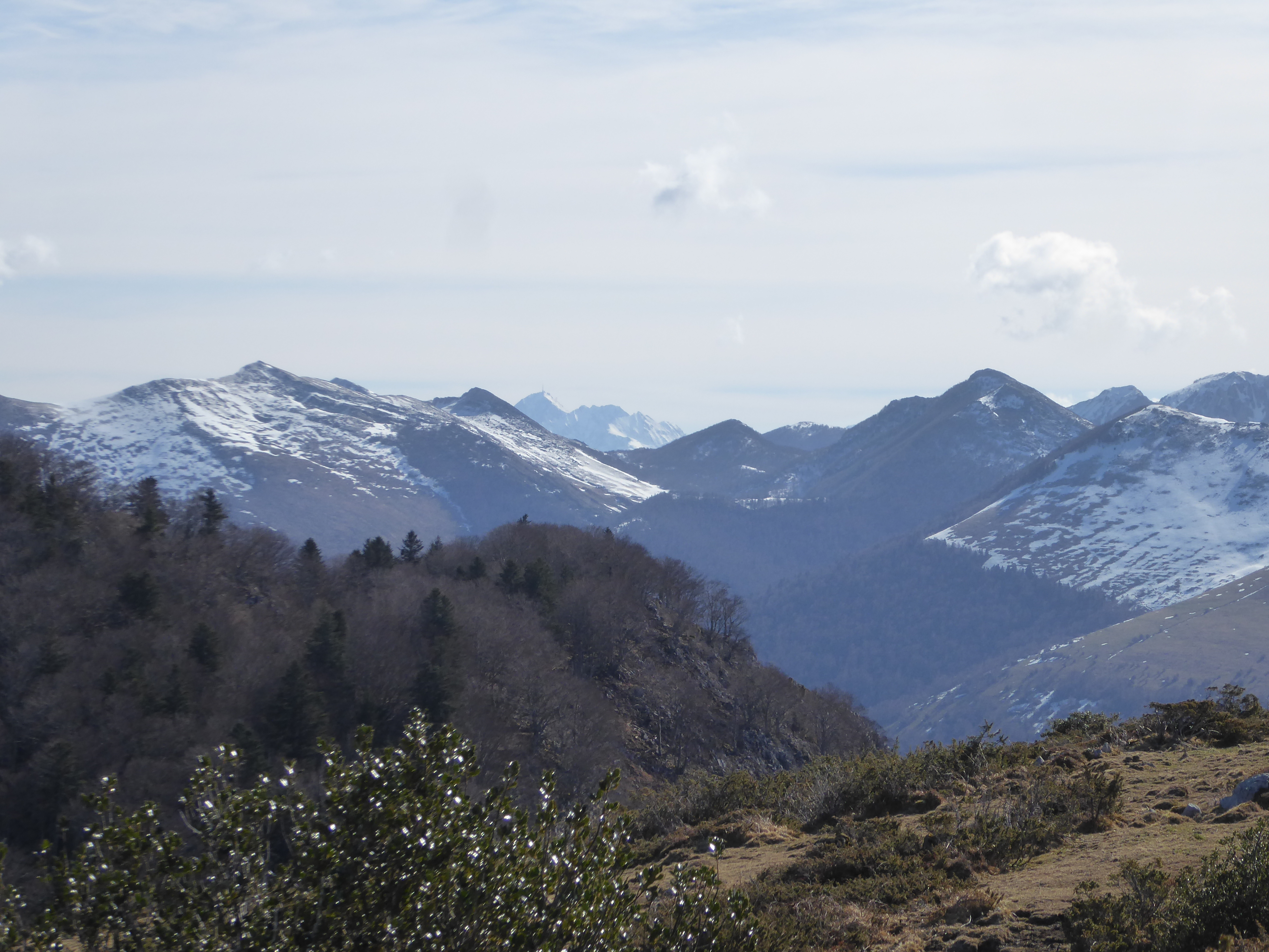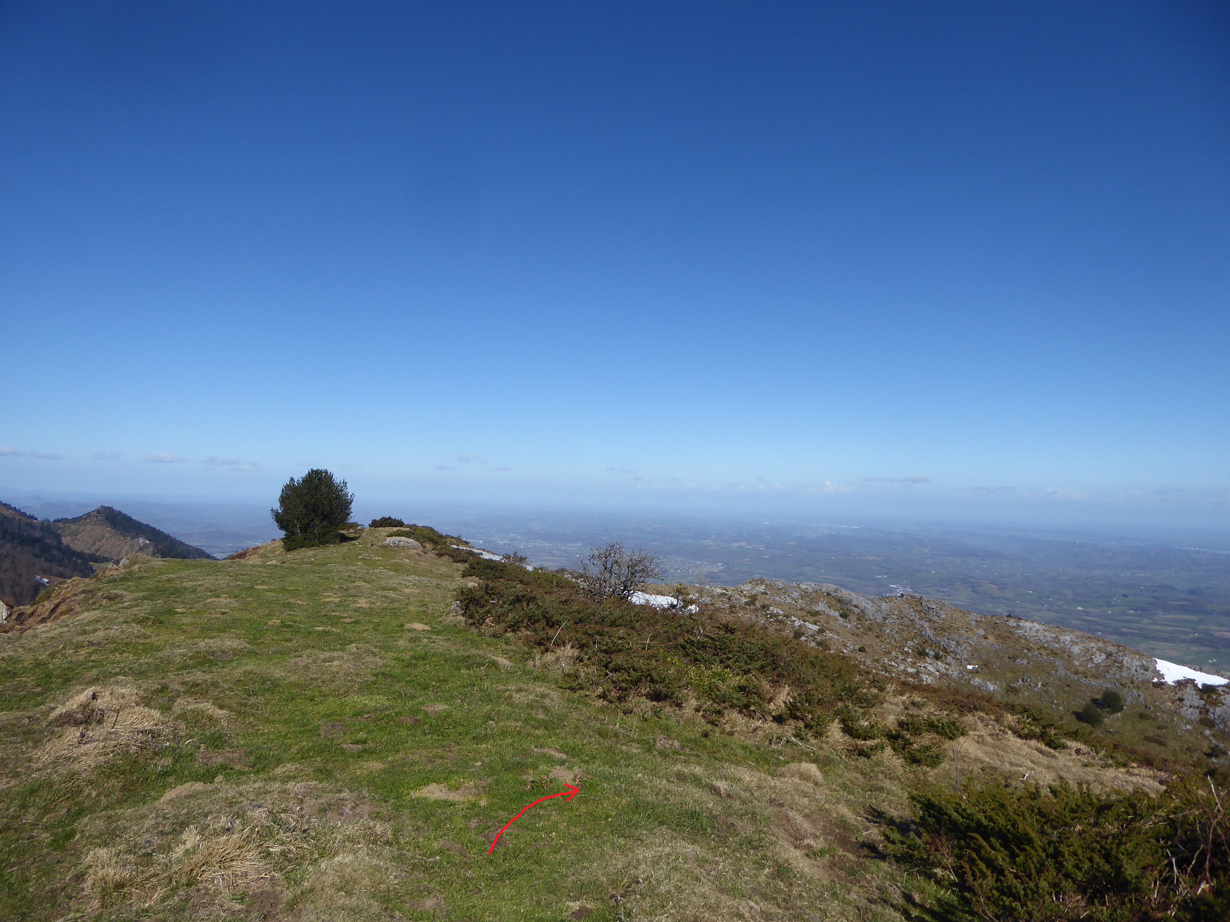 Arrivée au sommet du Soum de Counée (1361 m) : très beau panorama sur les sommets du secteur de Gourette, de la Vallée d'Ossau et du piémont entre Vallée d'Ossau et Vallée d'Aspe ... la plaine est masquée par le Pic Bersaut