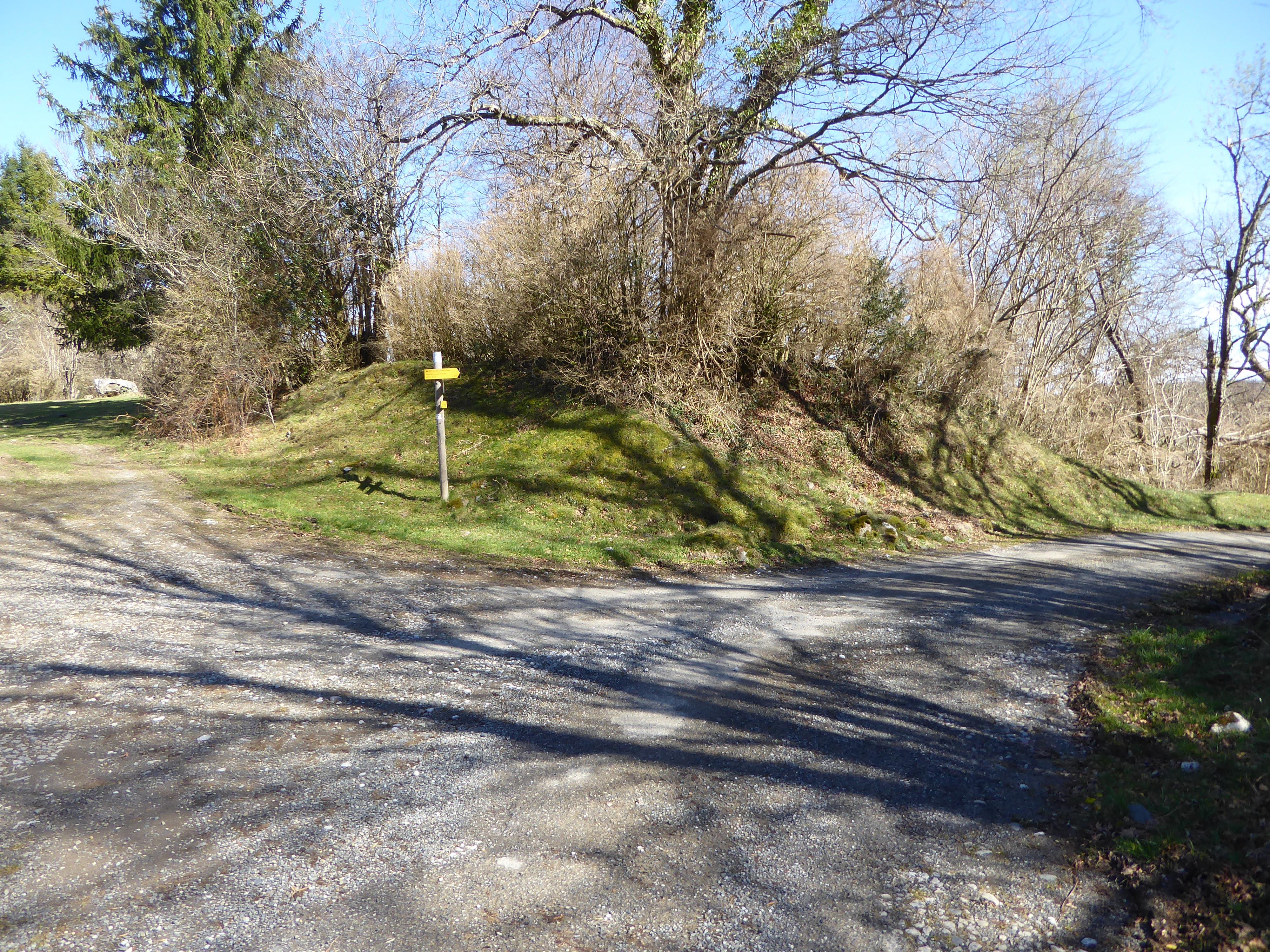 Plateau du Zoum (618 m) : suivre la route goudronnée descendant sur la droite direction Pont des Granges Médevielle, balisé en jaune et rouge
