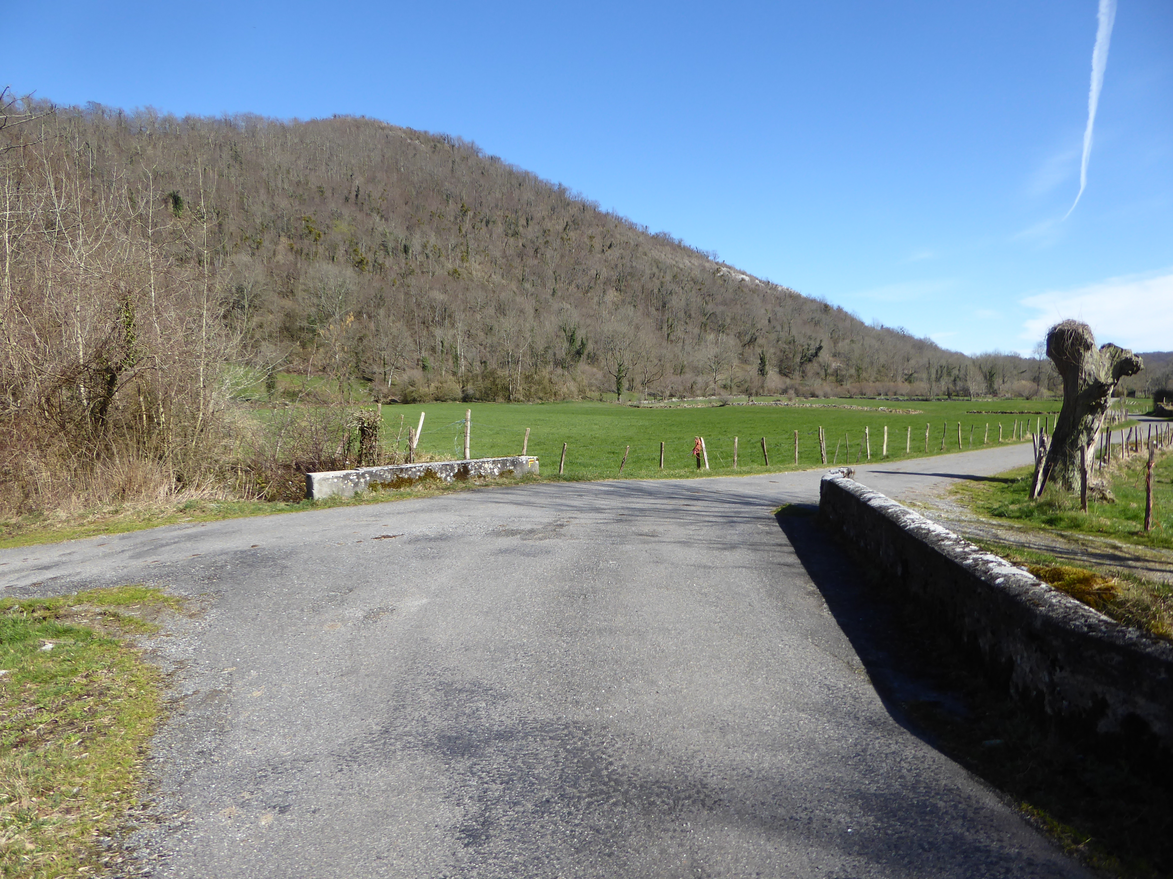 Départ Pont des Granges Médevielle (436 m) : suivre la route goudronnée partant légèrement sur la gauche direction Bois d'Izeste, balisé en jaune et rouge