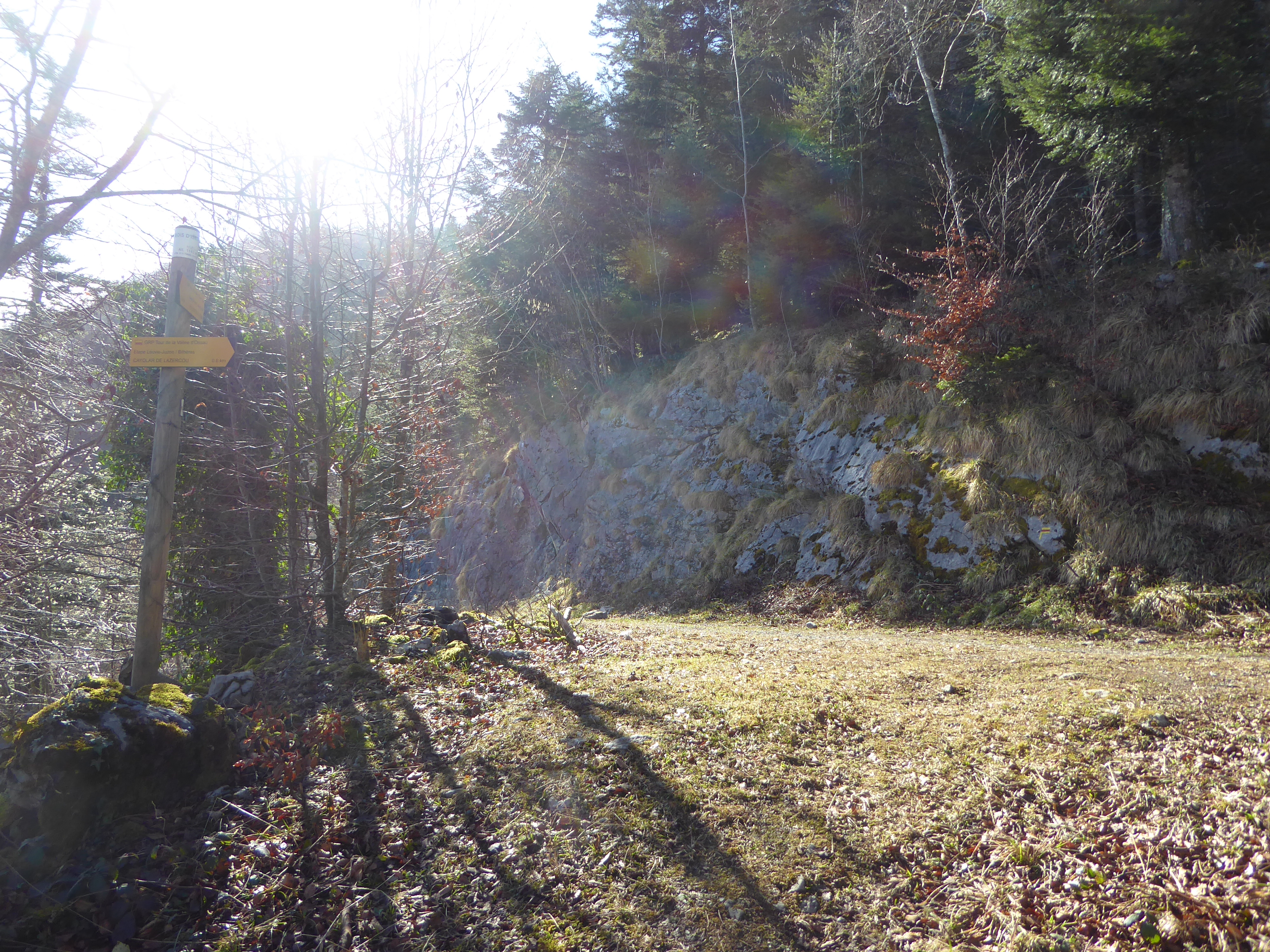 Cayolar de Lazercou (1246 m) : suivre le chemin descendant tout droit direction Bois d'Izeste, balisé en jaune et rouge dorénavant