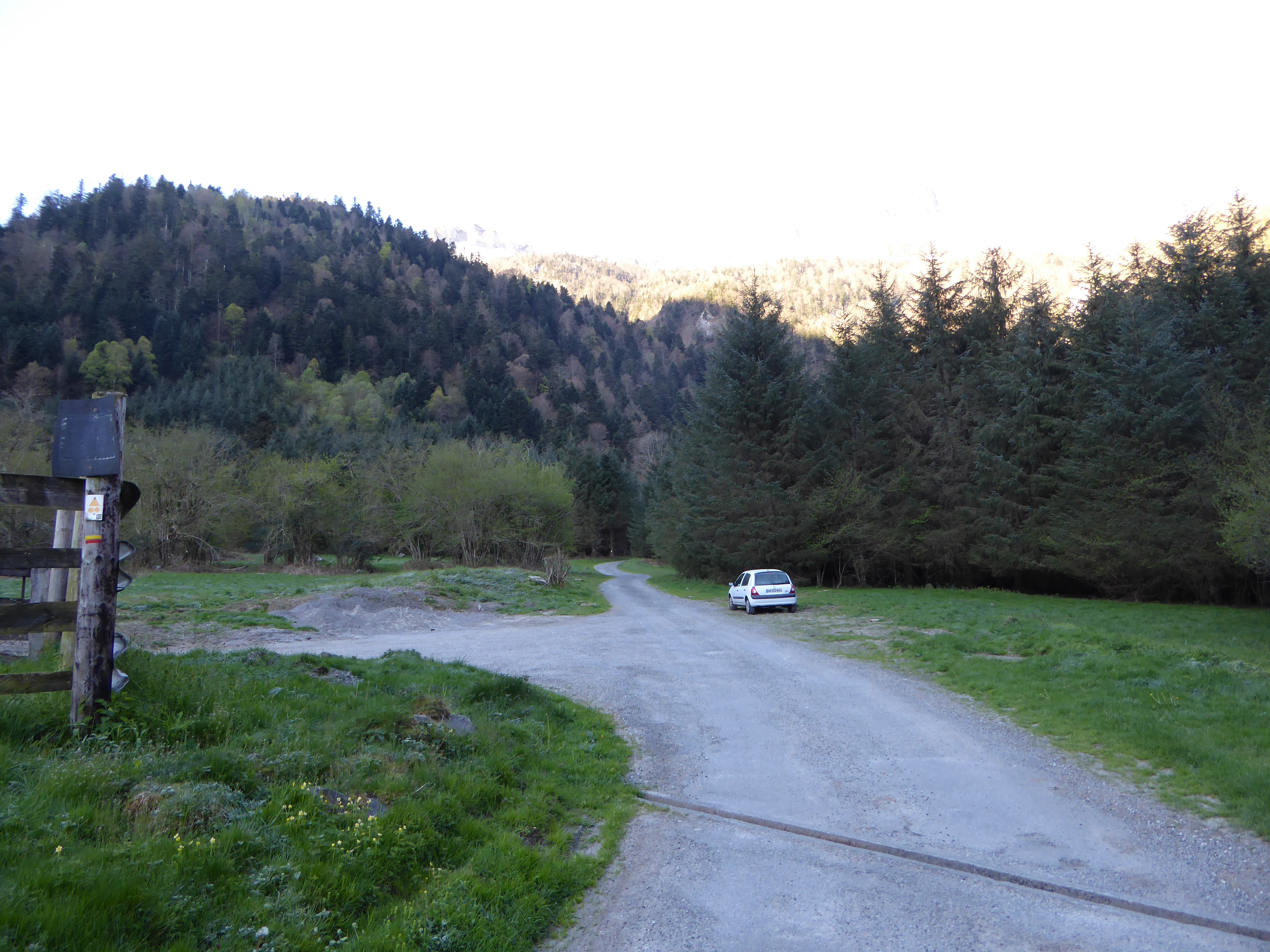 Départ Cabane du Bourdiou d'Aspeigt (845 m) : suivre la route goudronnée qui va vite se transformer en piste carrossable direction Cabane d'Ibech, balisé en jaune et rouge