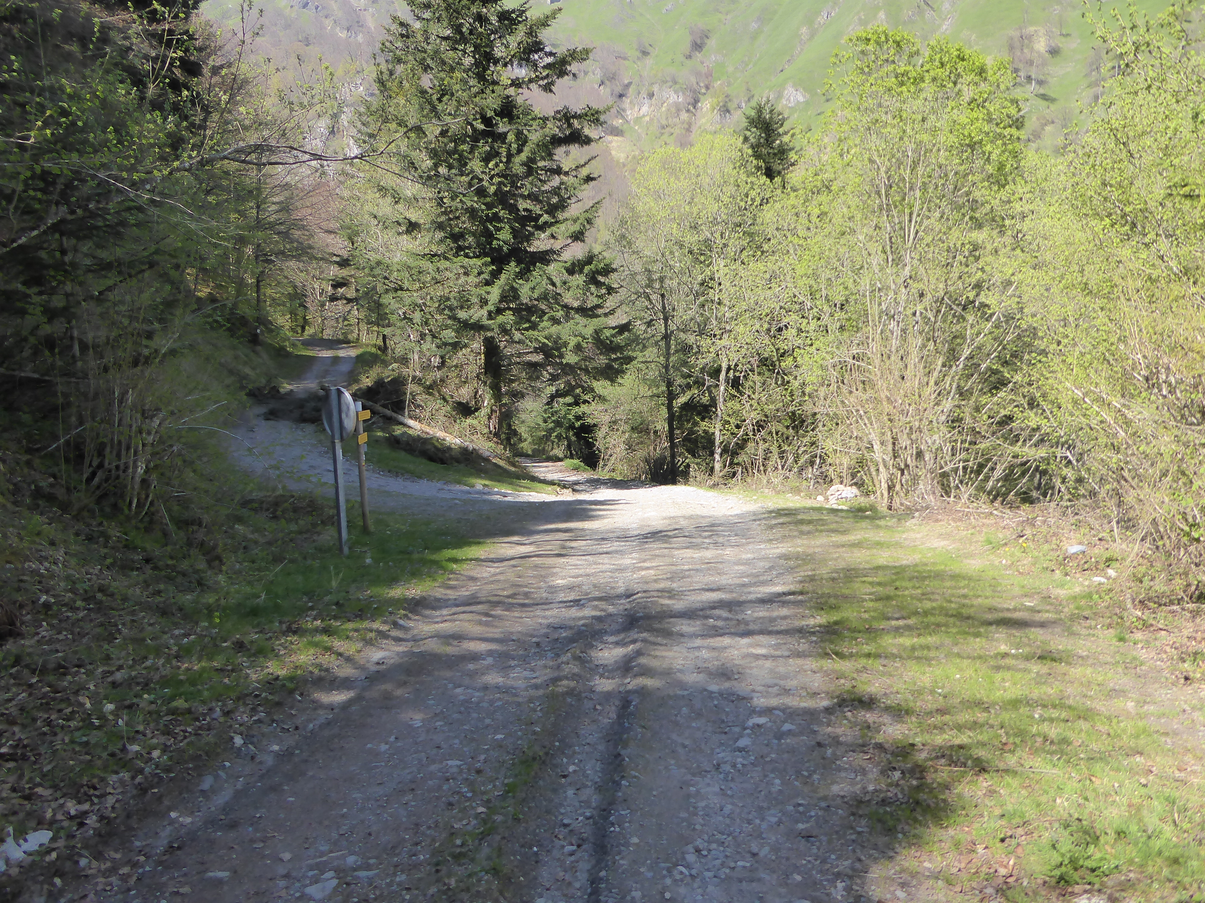 Bois d'Aspeigt (923 m) : continuer à suivre la piste montant tout droit direction Cabane d'Ibech, balisé en jaune et rouge