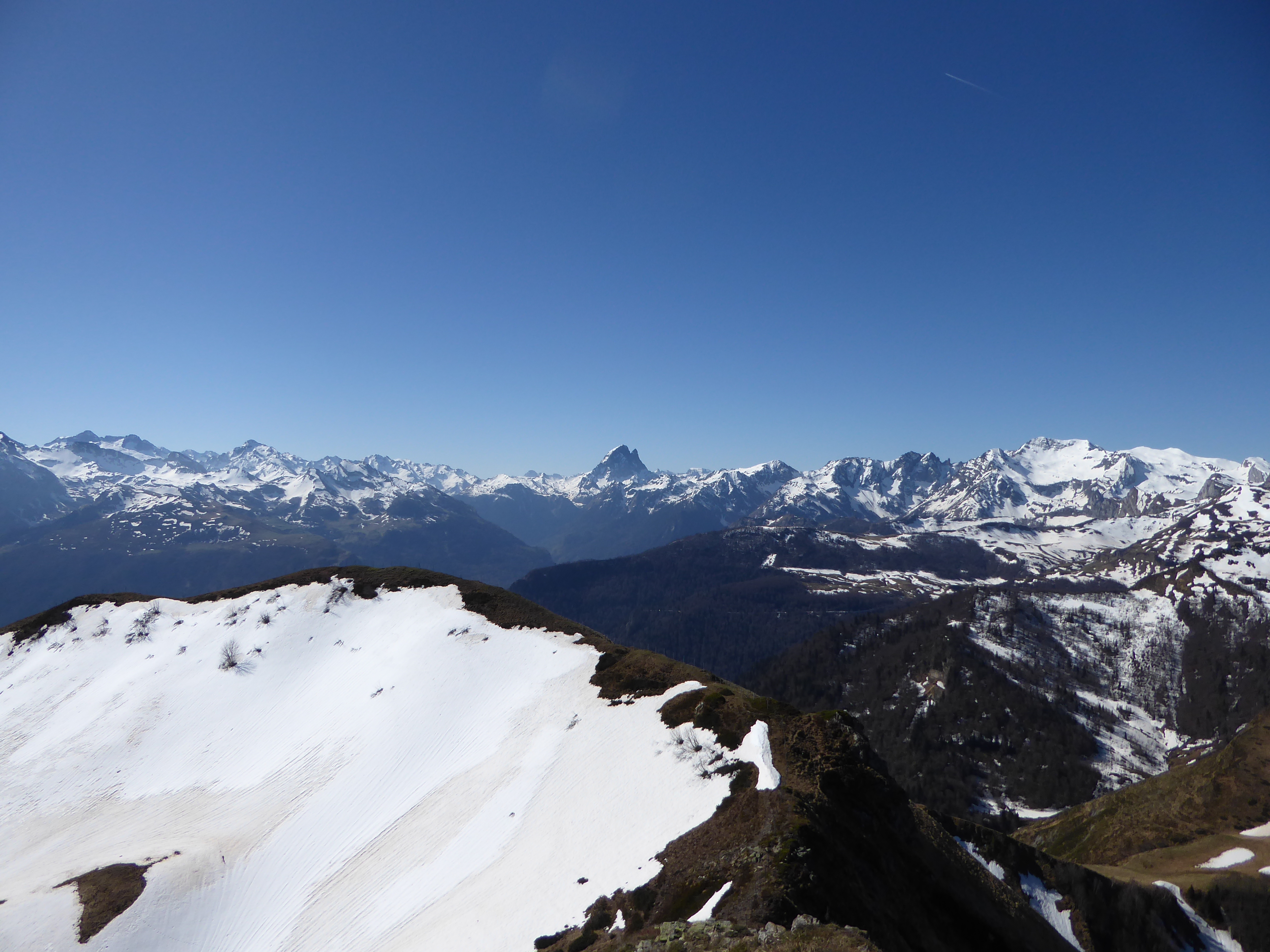 Arrivée au sommet du Pic de Gerbe (1901 m) : magnifique panorama sur les sommets des Hautes-Pyrénées, de la Vallée d'Ossau, de la Vallée d'Aspe, du proche Pays Basque et sur la plaine