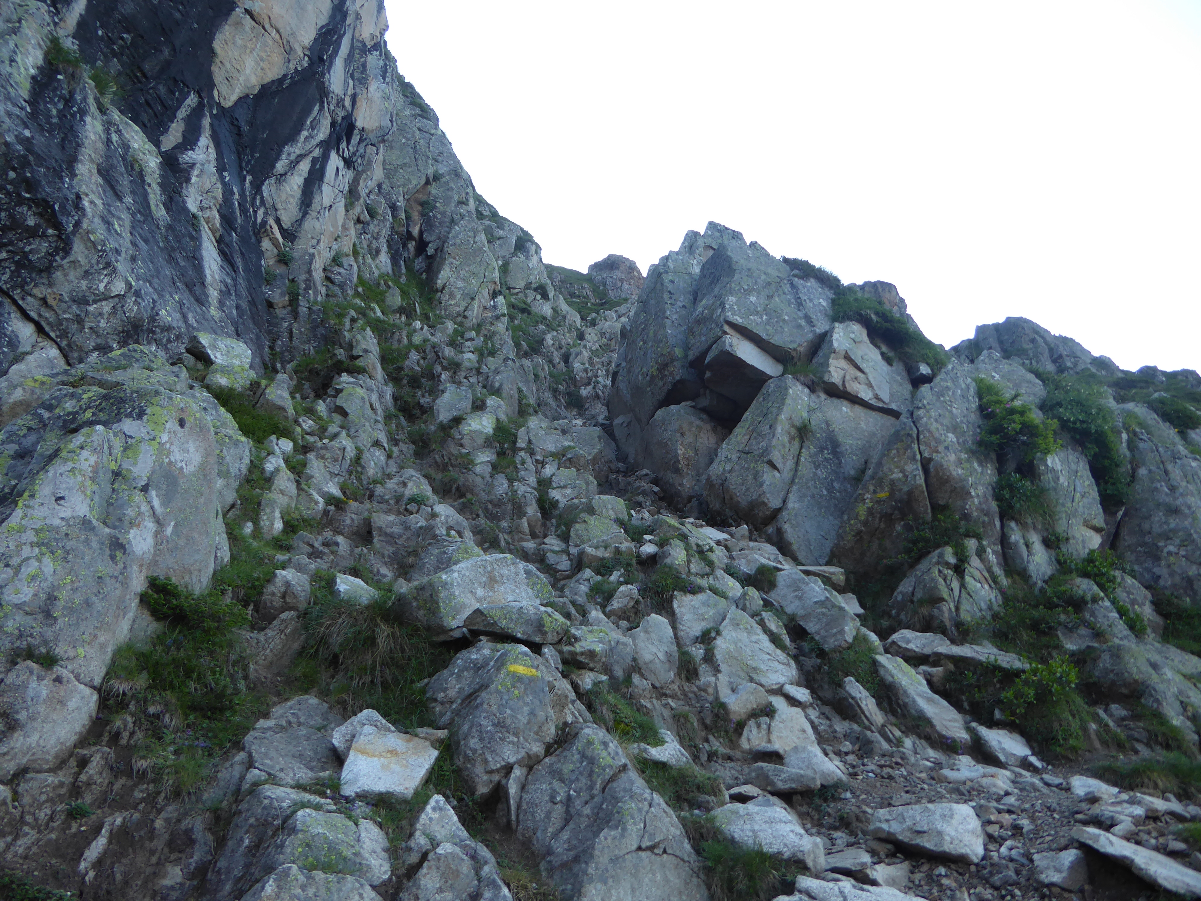 Barre rocheuse (2145 m) : franchir cette première barre rocheuse d'une trentaine de mètres sans difficulté technique direction l'Arbizon, balisé en jaune