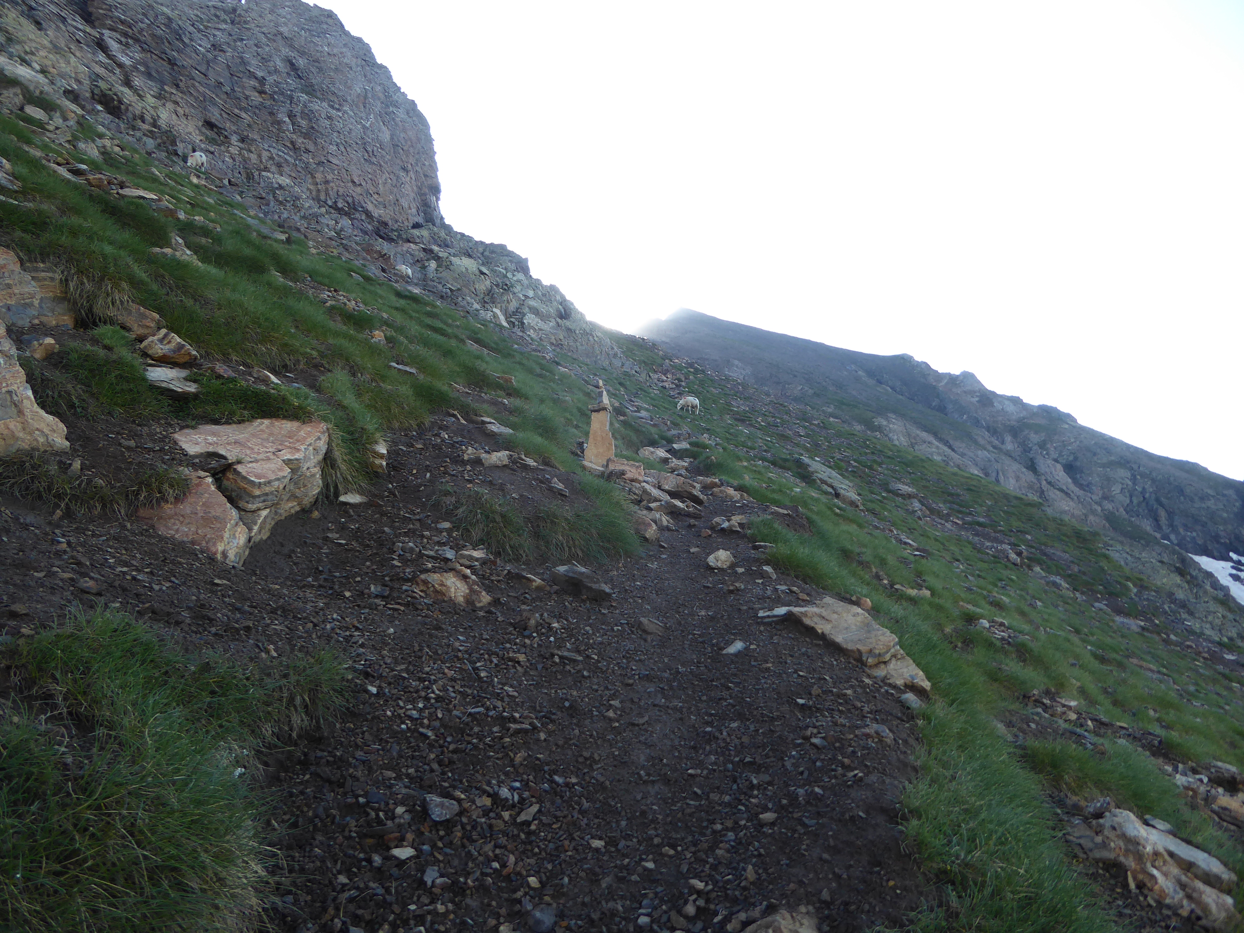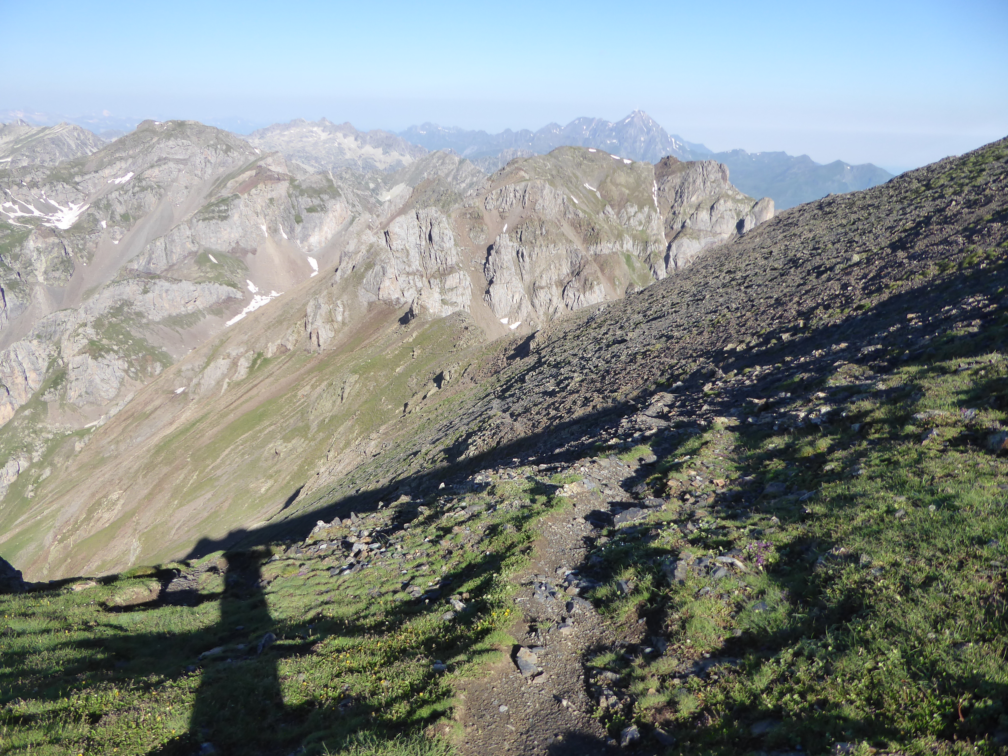 A proximité de la Brèche d'Aurey (2594 m), le chemin longe le fil de crête de l'Arbizon en contrebas de ce dernier ; on aperçoit enfin le relais téléphonique du sommet !