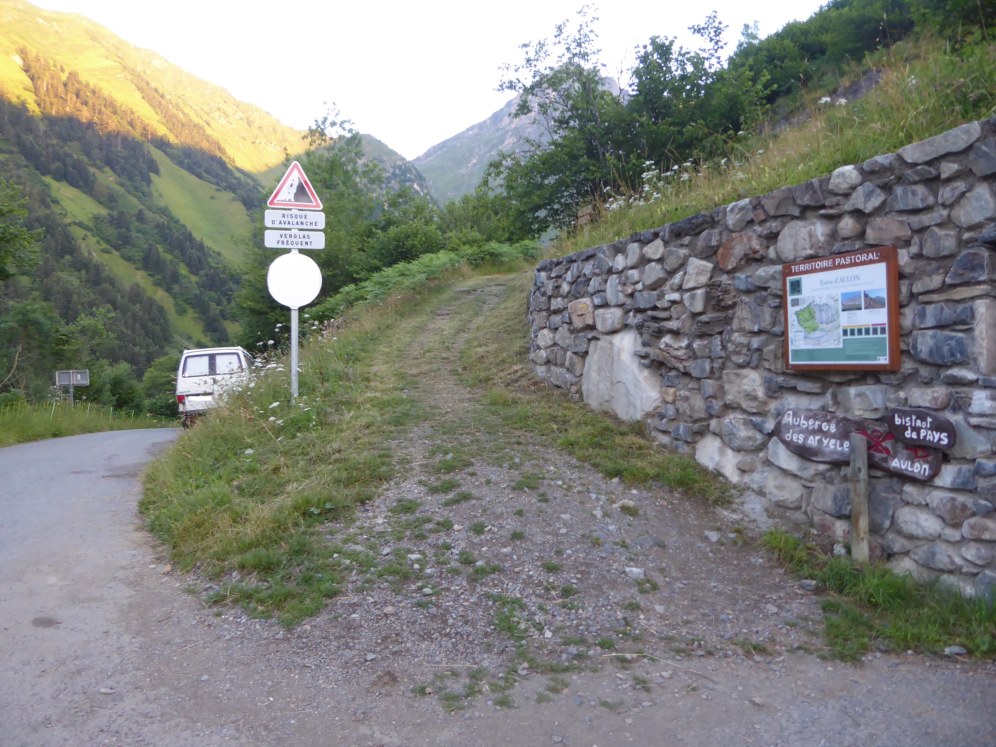 Départ Aulon (1212 m) : suivre la rue qui part tout droit direction Granges de Lurgues, aucun balisage