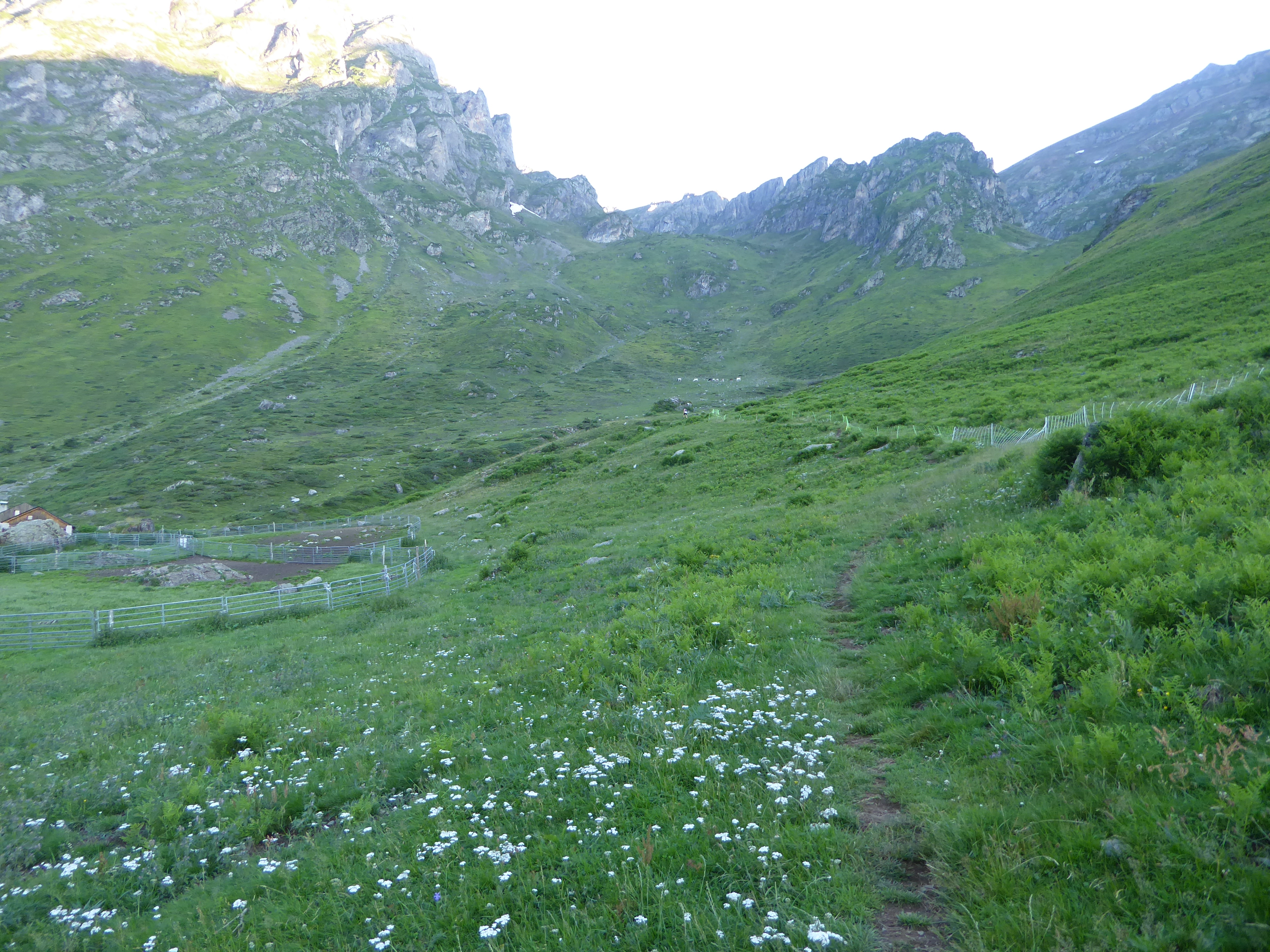 Cabane d'Espigous (1665 m) : suivre le chemin descendant tout droit direction Granges de Lurgues, balisé en jaune