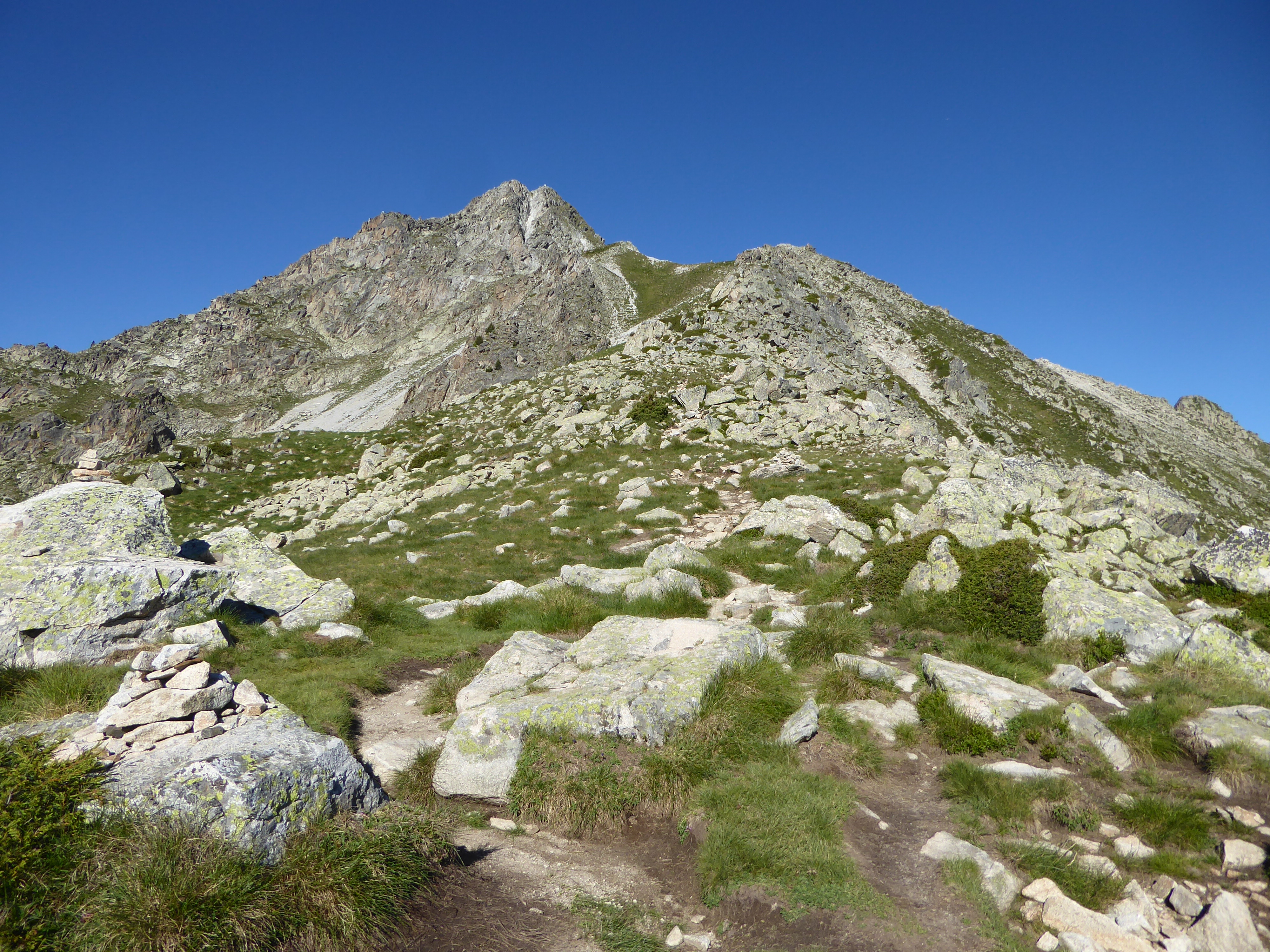Col de Bastanet (2509 m) : suivre le chemin cairné partant sur la droite direction Pic de Bastan, aucun balisage dorénavant