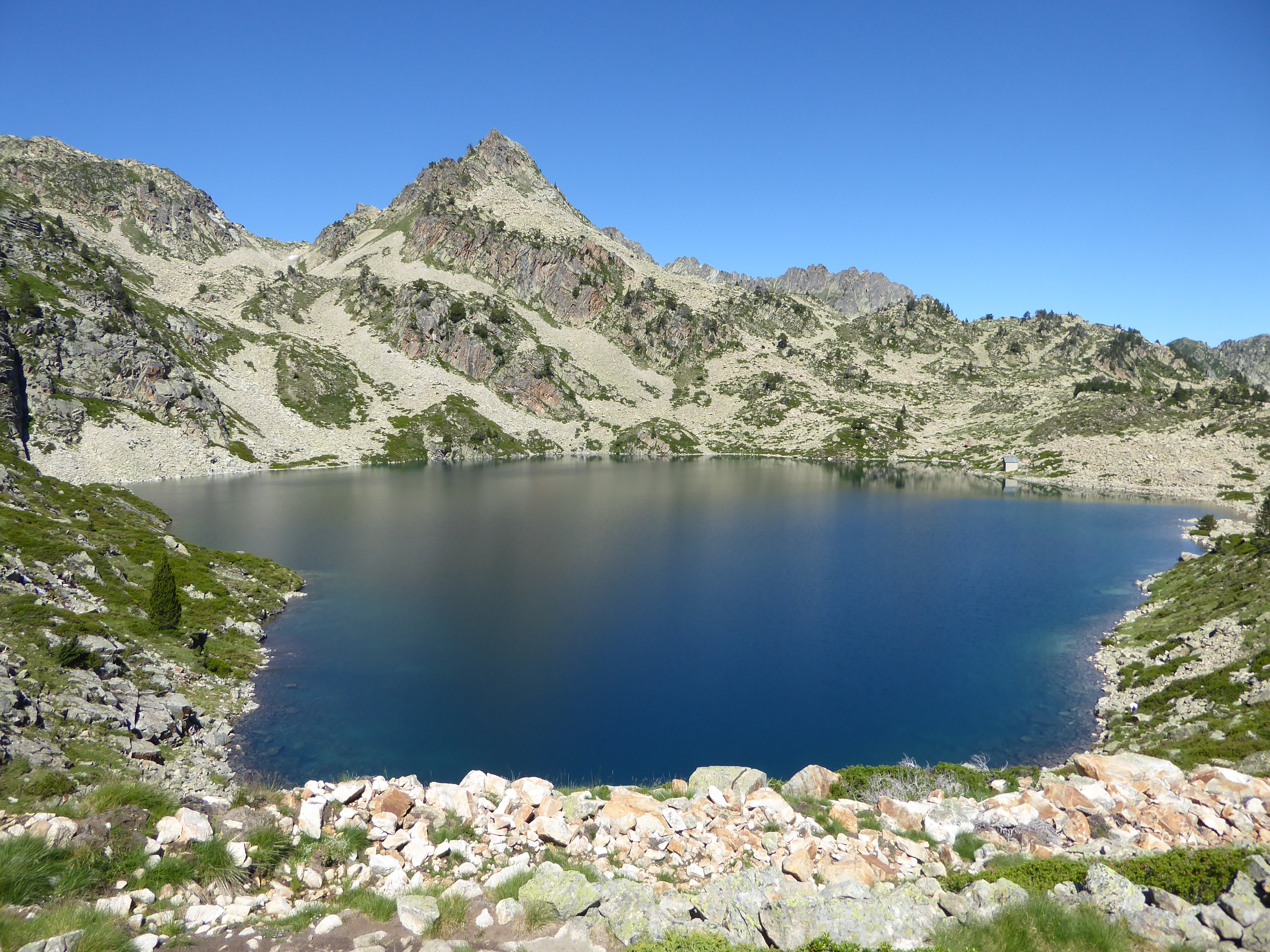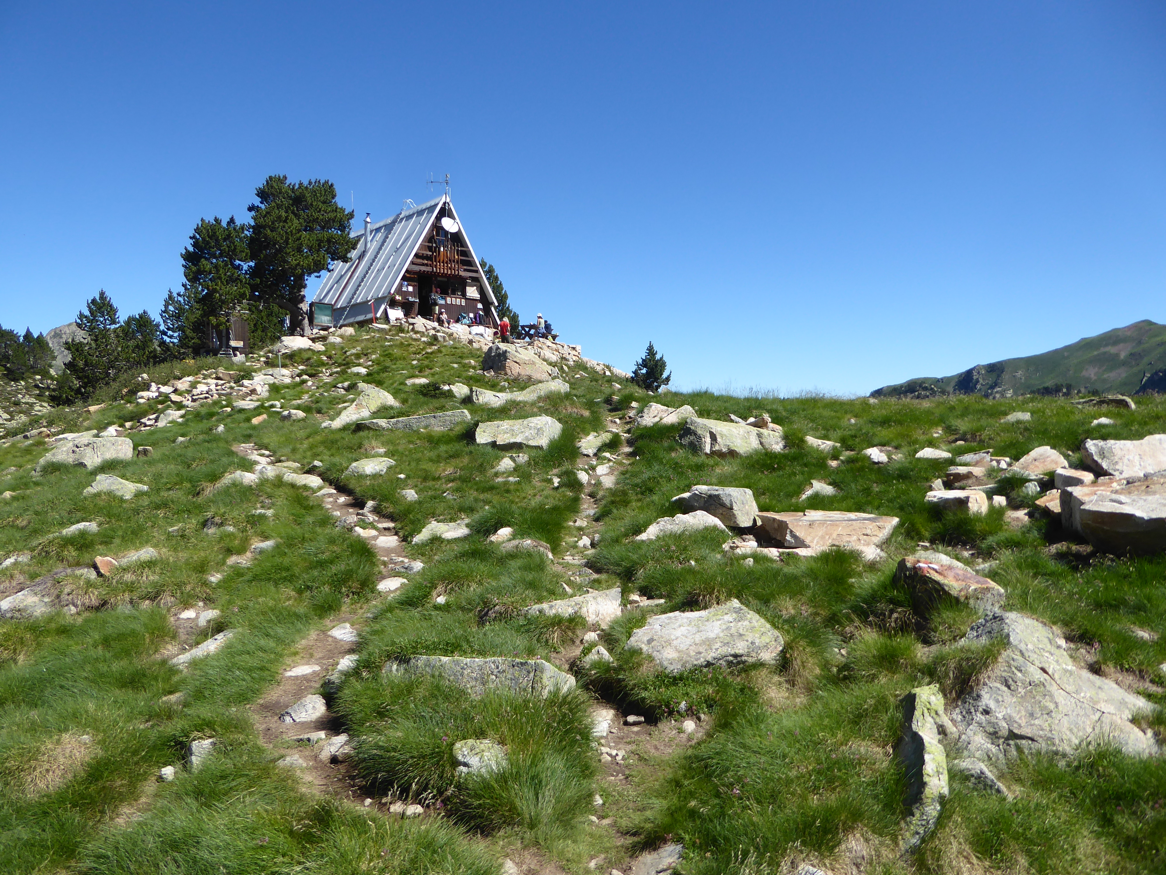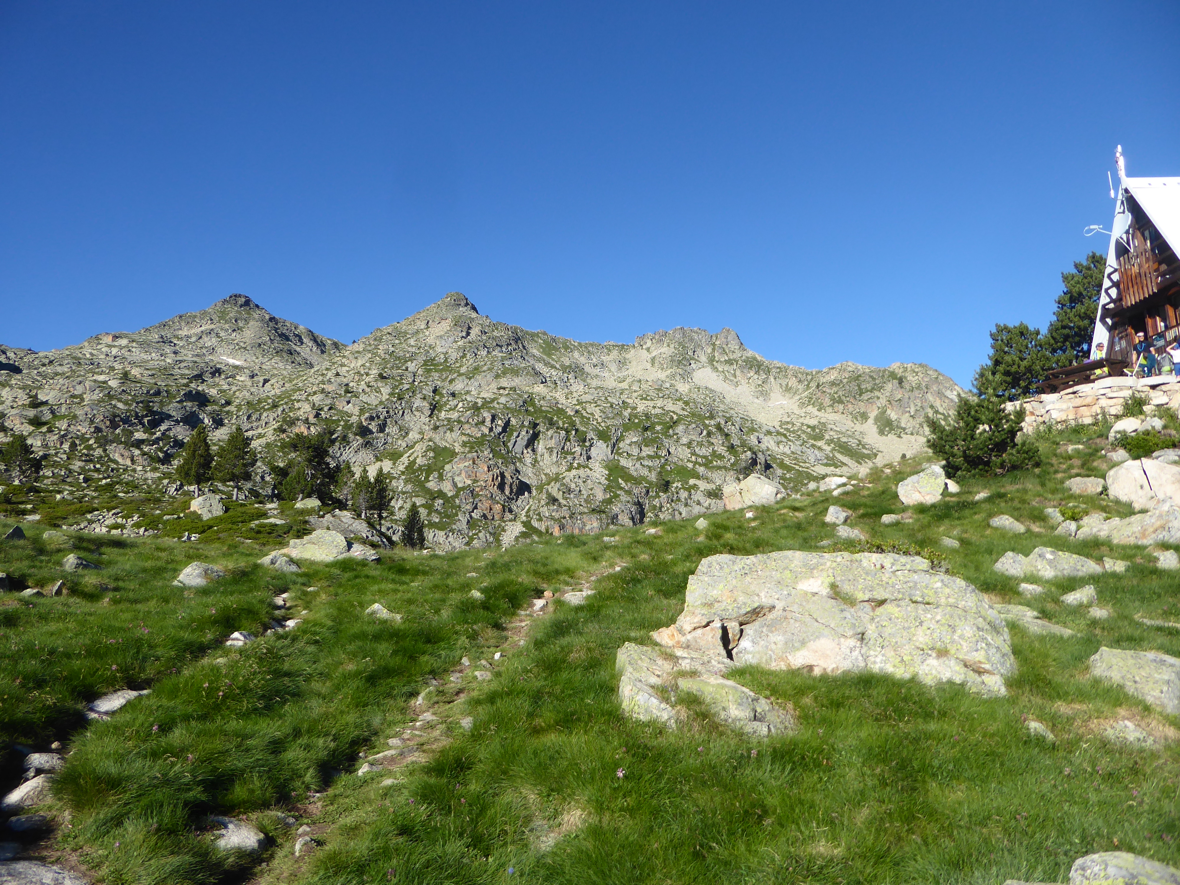 Refuge de Campana de Cloutou (2219 m) : suivre le chemin partant tout droit direction Lac de Gréziolles, balisé en rouge et blanc