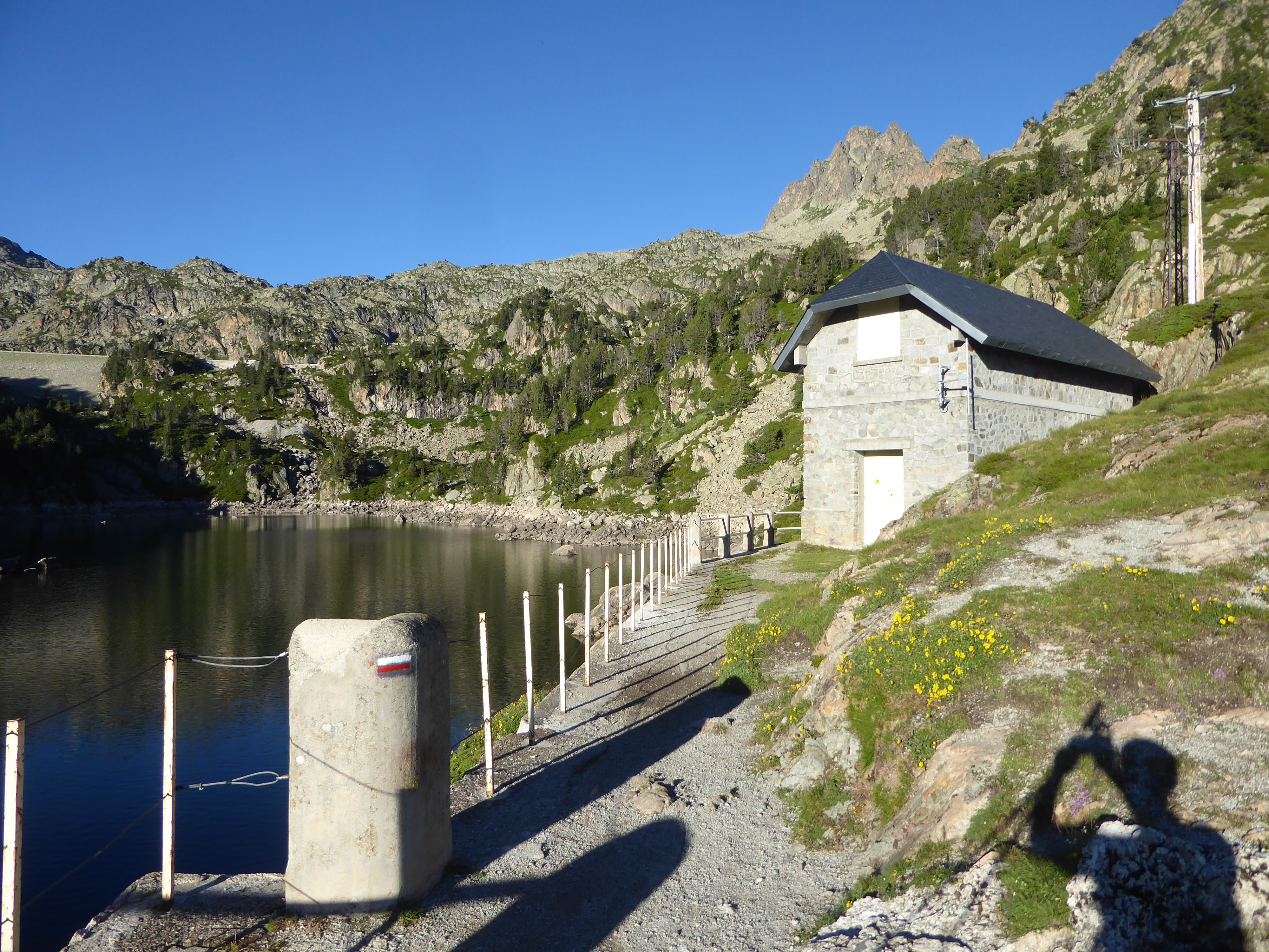 Réservoir des Laquets (2037 m) : suivre le chemin partant tout droit direction Lac de Gréziolles, balisé en rouge et blanc