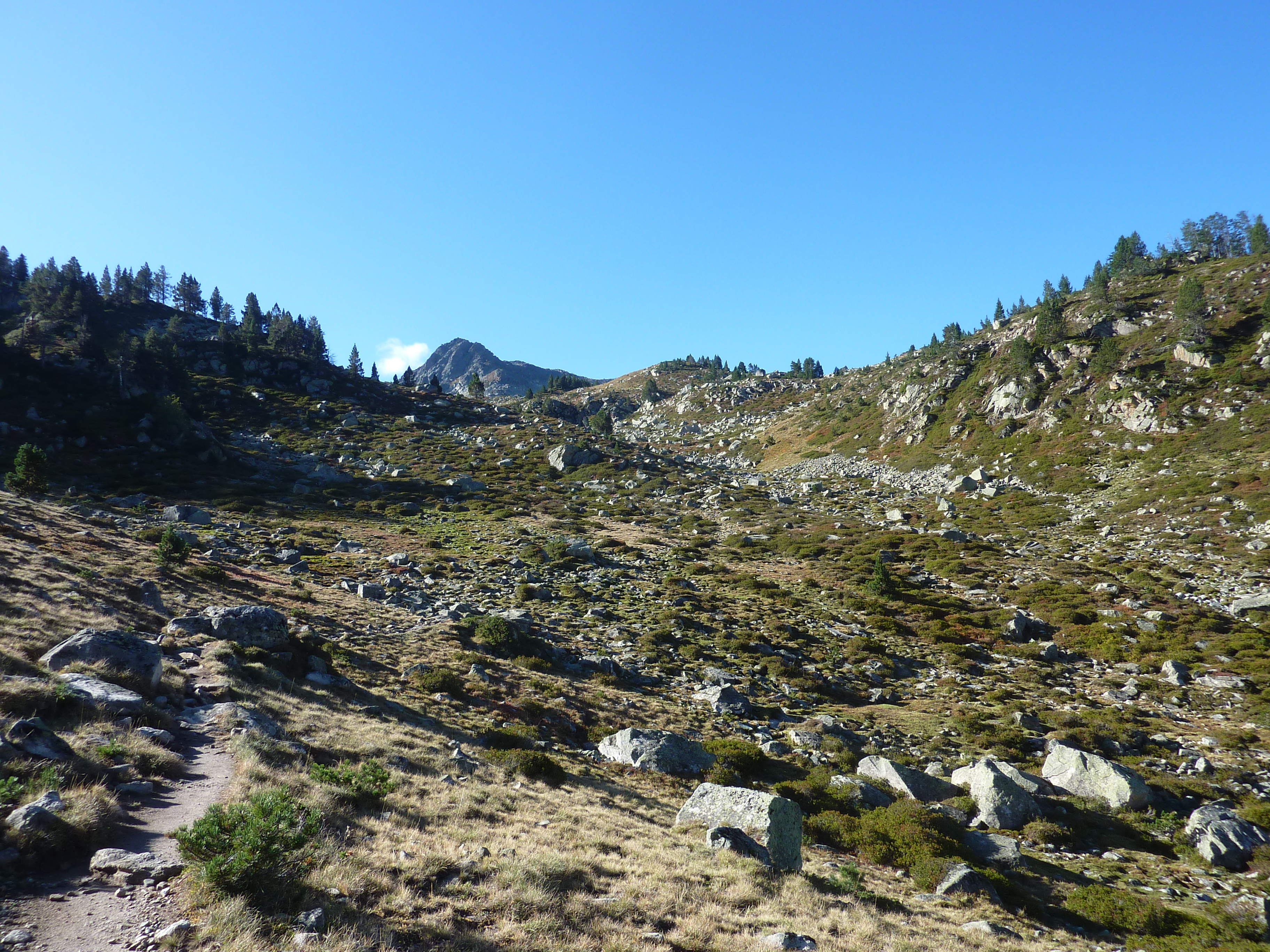 Vue arrière sur la raide montée vers le Lac dets Coubous pour ceux qui voudraient faire le circuit en sens inverse