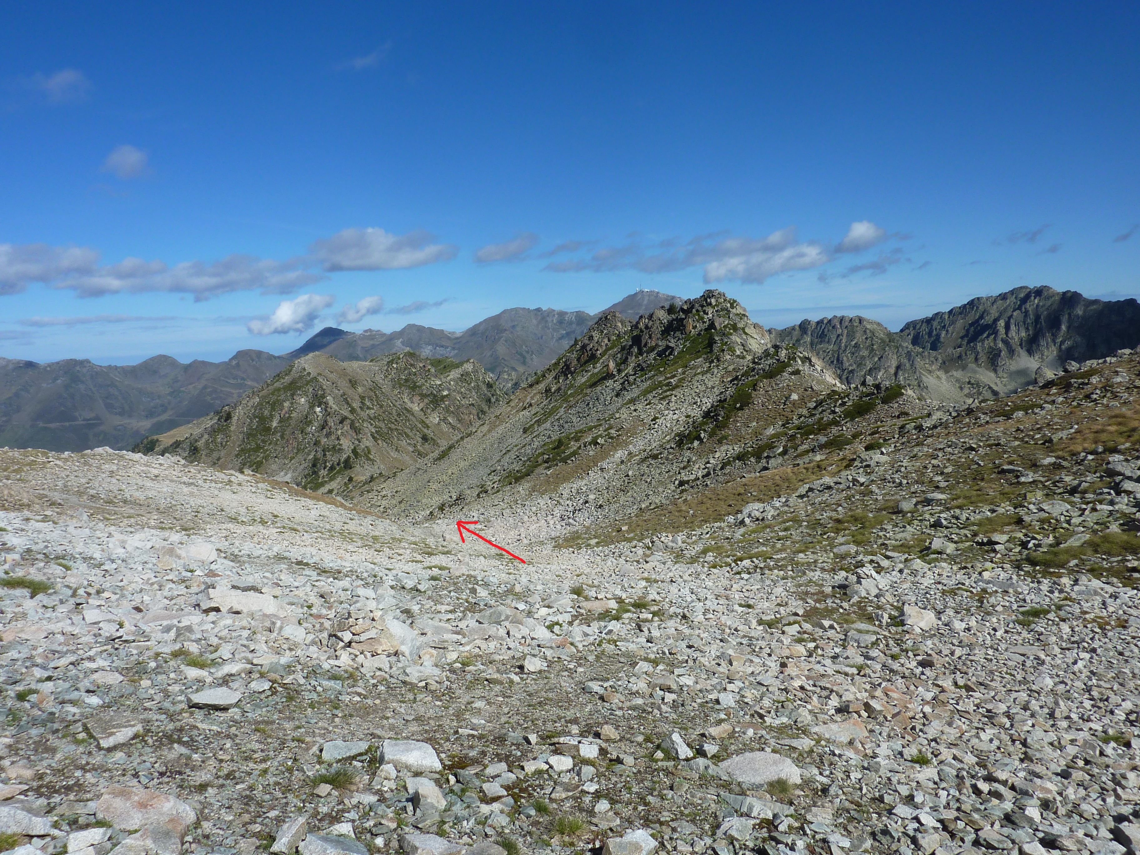 Redescendre du sommet dans le même sens que celui de l'aller en descendant sur la droite direction Lac dets Coubous