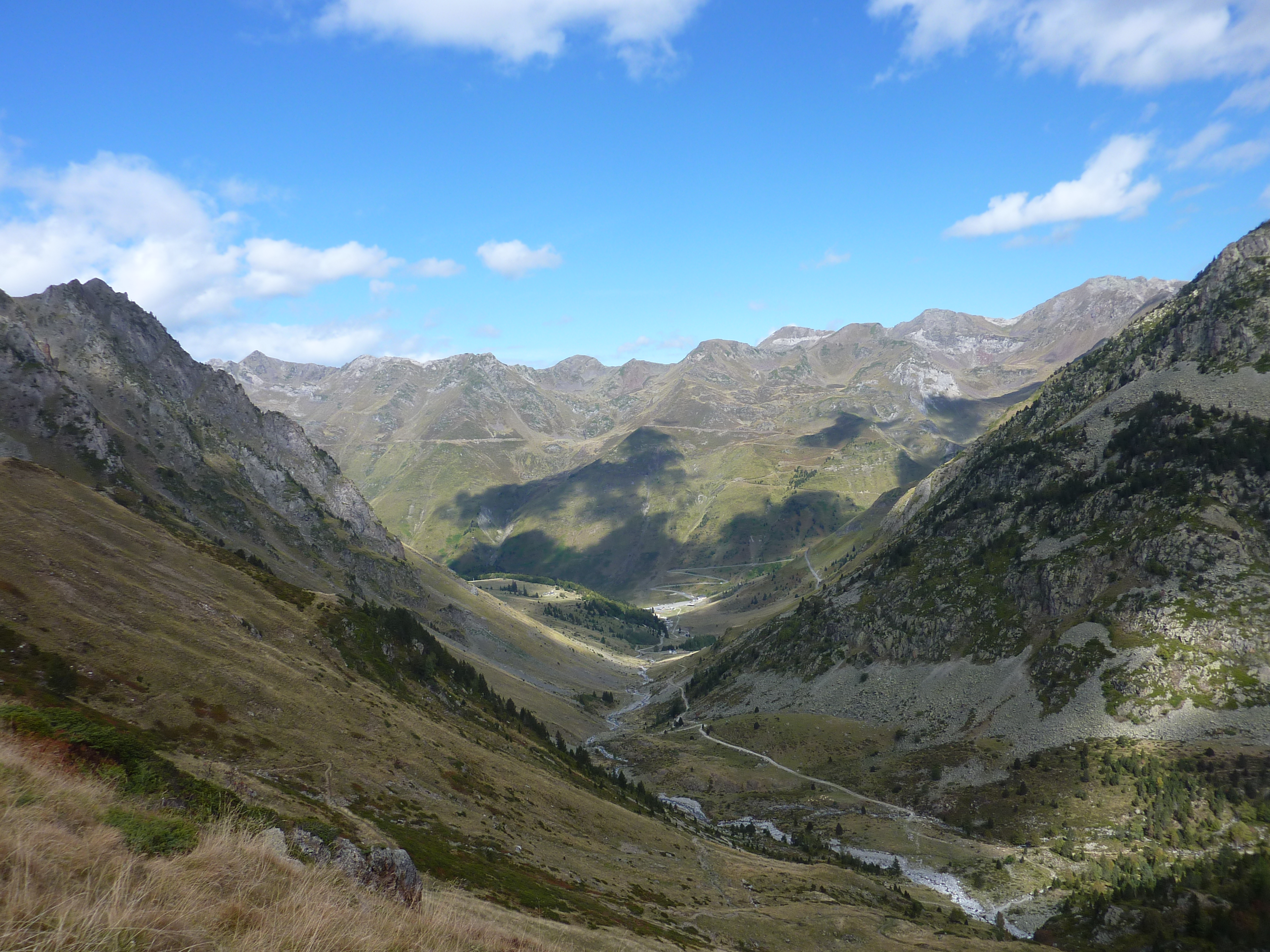 Vue arrière sur la Vallée du Bastan ou de Barèges ainsi que sur la Route des Cols menant au Tourmalet