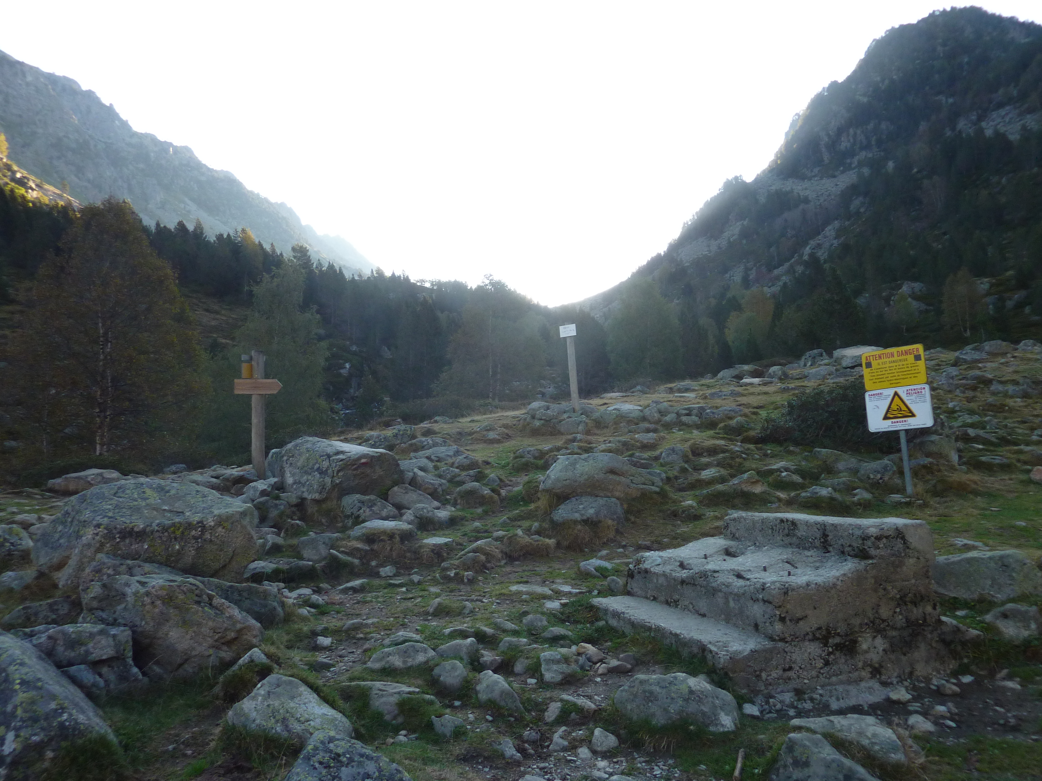 A ce croisement situé à proximité du Pont de la Gaubie et marqué par la présence d'un panneau directionnel, suivre le chemin montant tout droit direction Col de Madamète, balisé en rouge et blanc