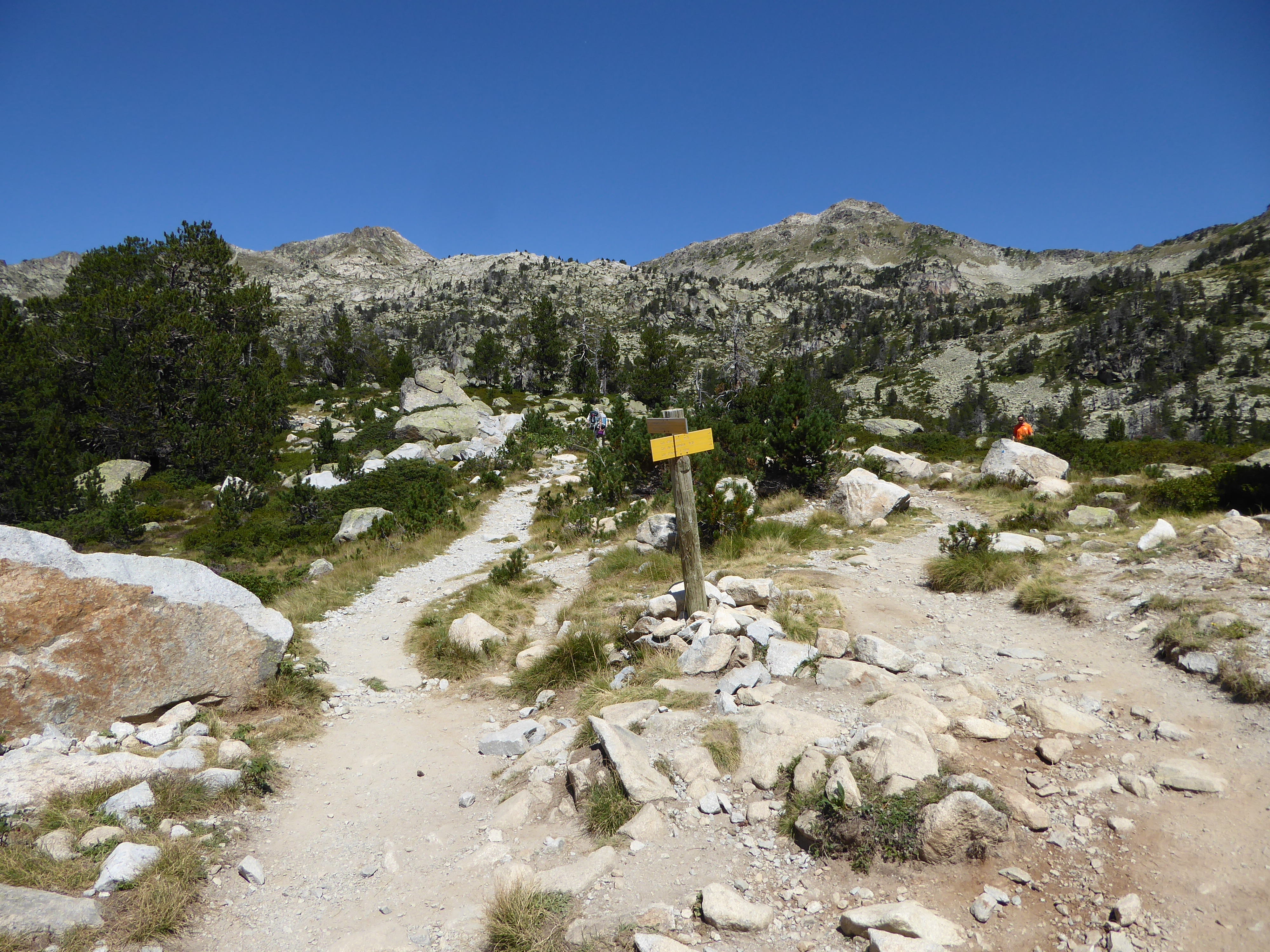 A ce croisement (2189 m), tourner à droite direction Lac d'Aumar