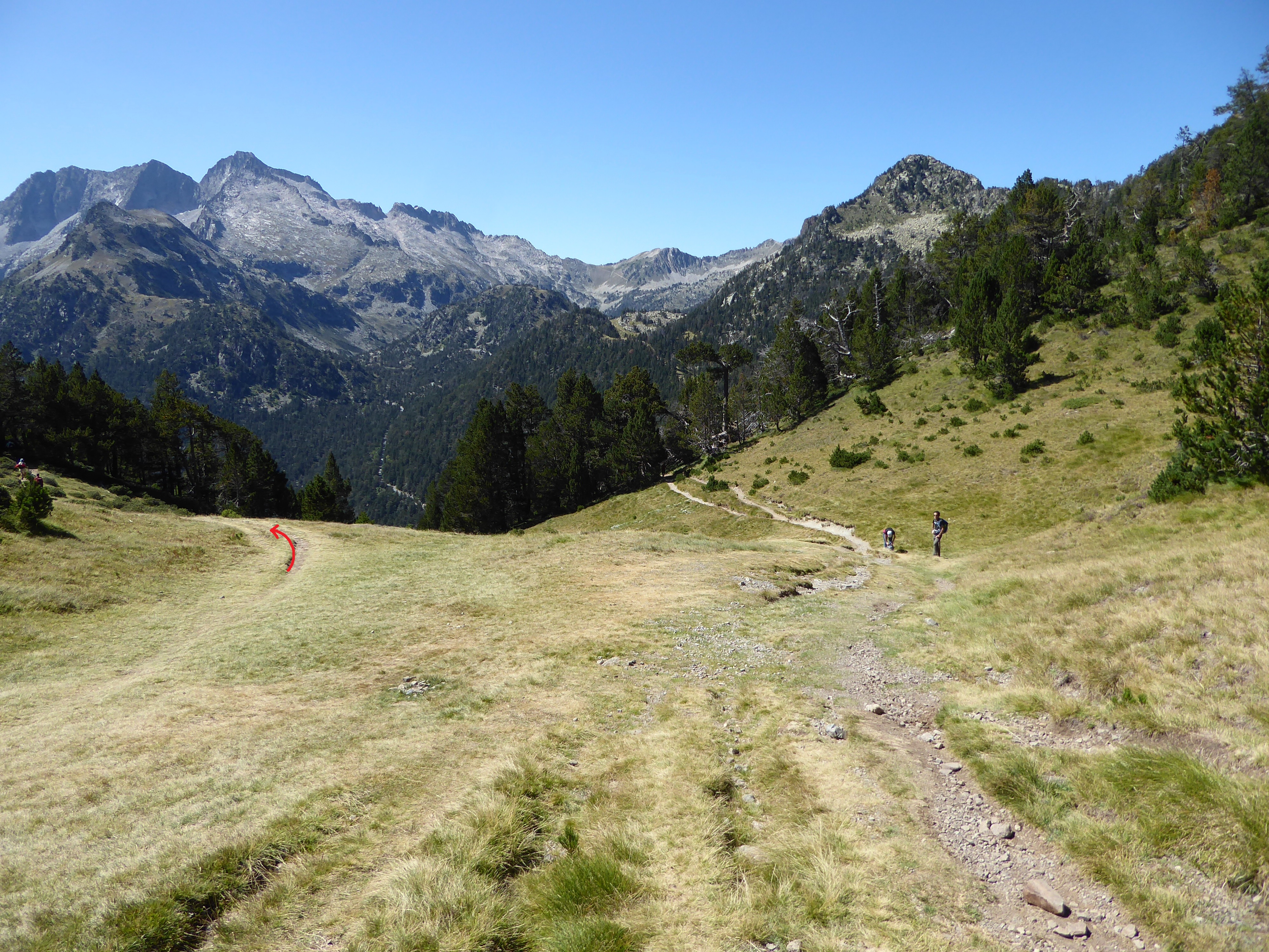 A proximité du Col d'Estoudou, continuer à monter par le chemin partant de biais sur la gauche direction Col d'Estoudou, balisé en rouge et blanc (le chemin de droite permet de retourner au Lac d'Orédon)