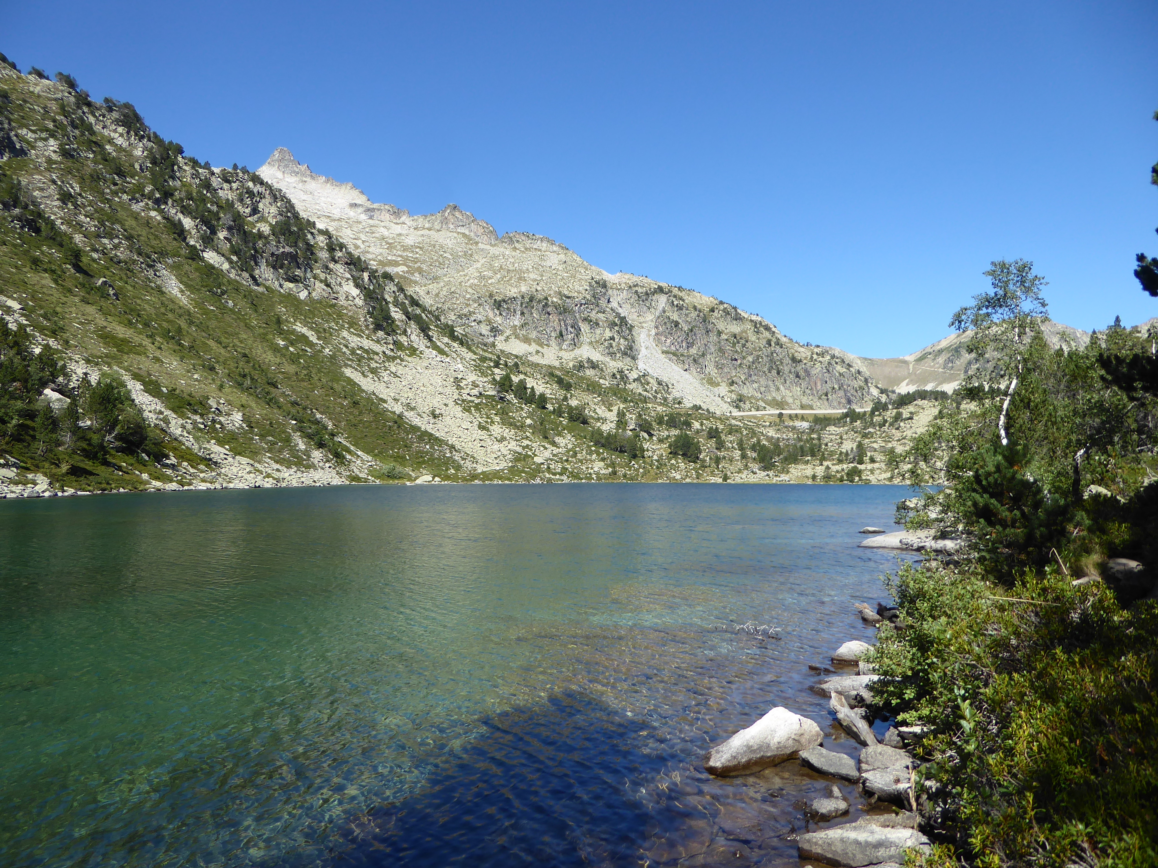 Très belle vue sur le Massif de Néouvielle avec le Ramoun (3011 m), sommet pointu, et le Pic de Néouvielle (3091 m) juste à droite