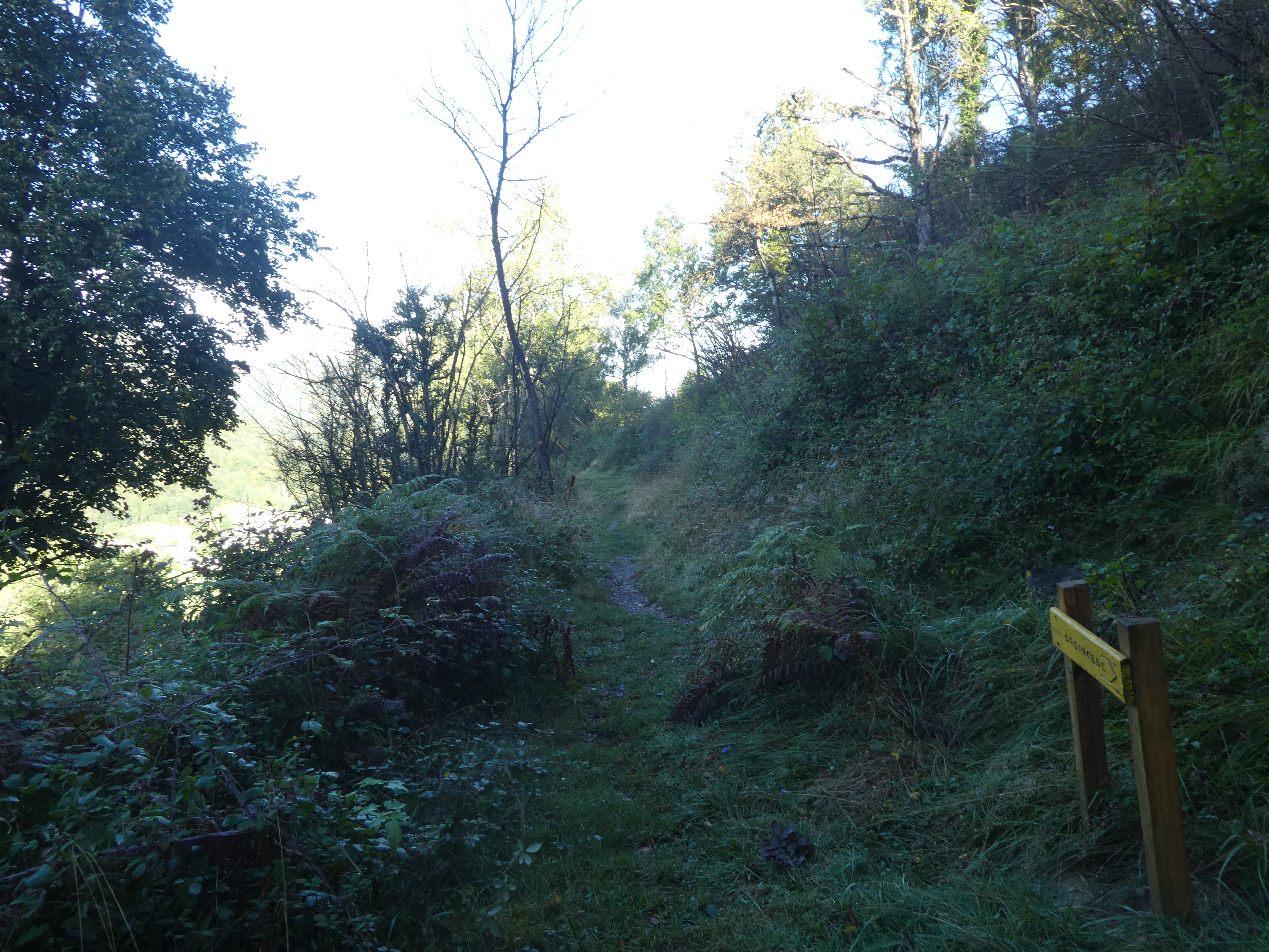 A ce croisement marqué par la présence d'un panneau directionnel (150 mètres après le précédent), suivre le chemin partant légèrement sur la gauche direction Pont d'Arteil, balisé sporadiquement en jaune
