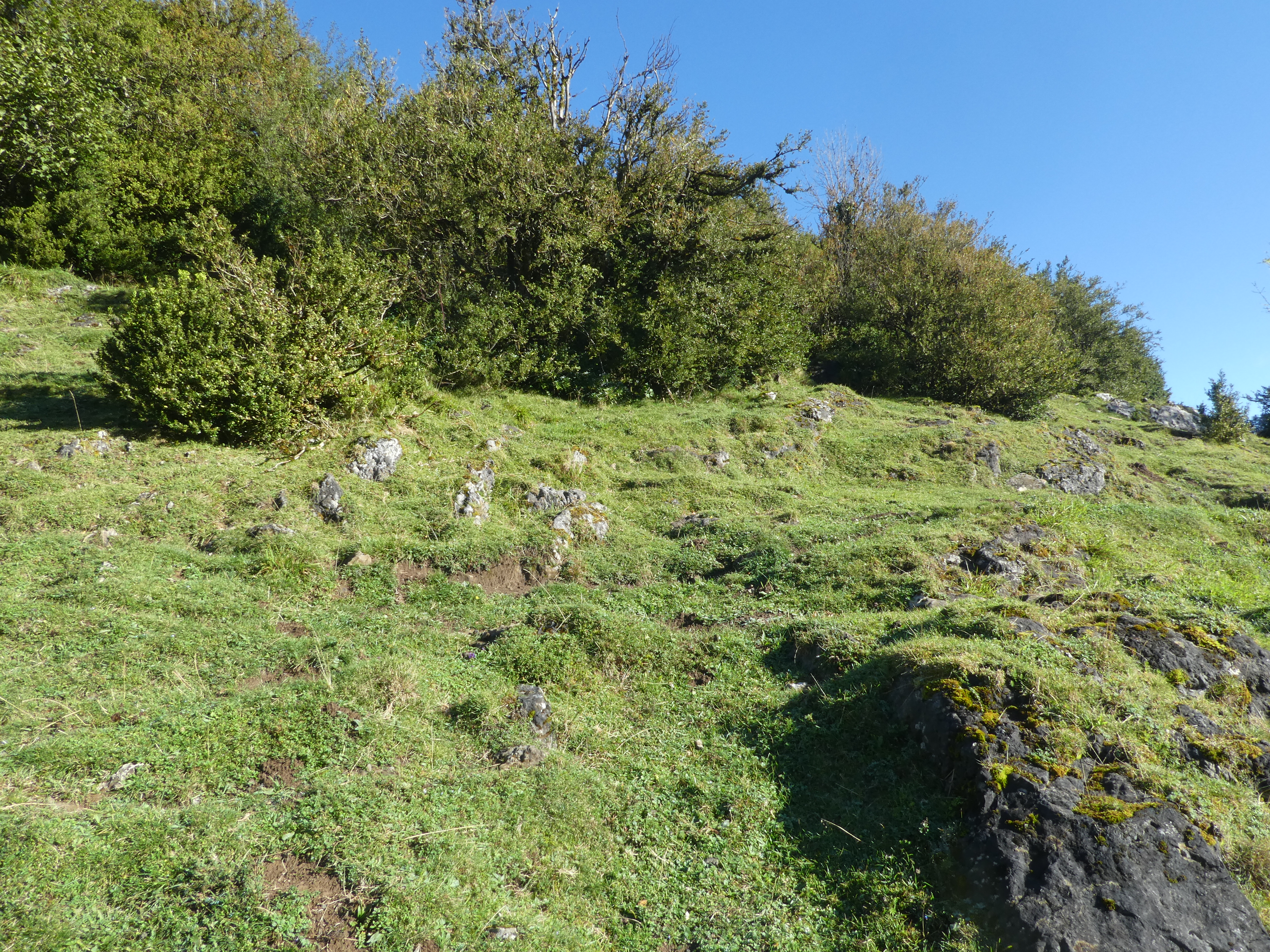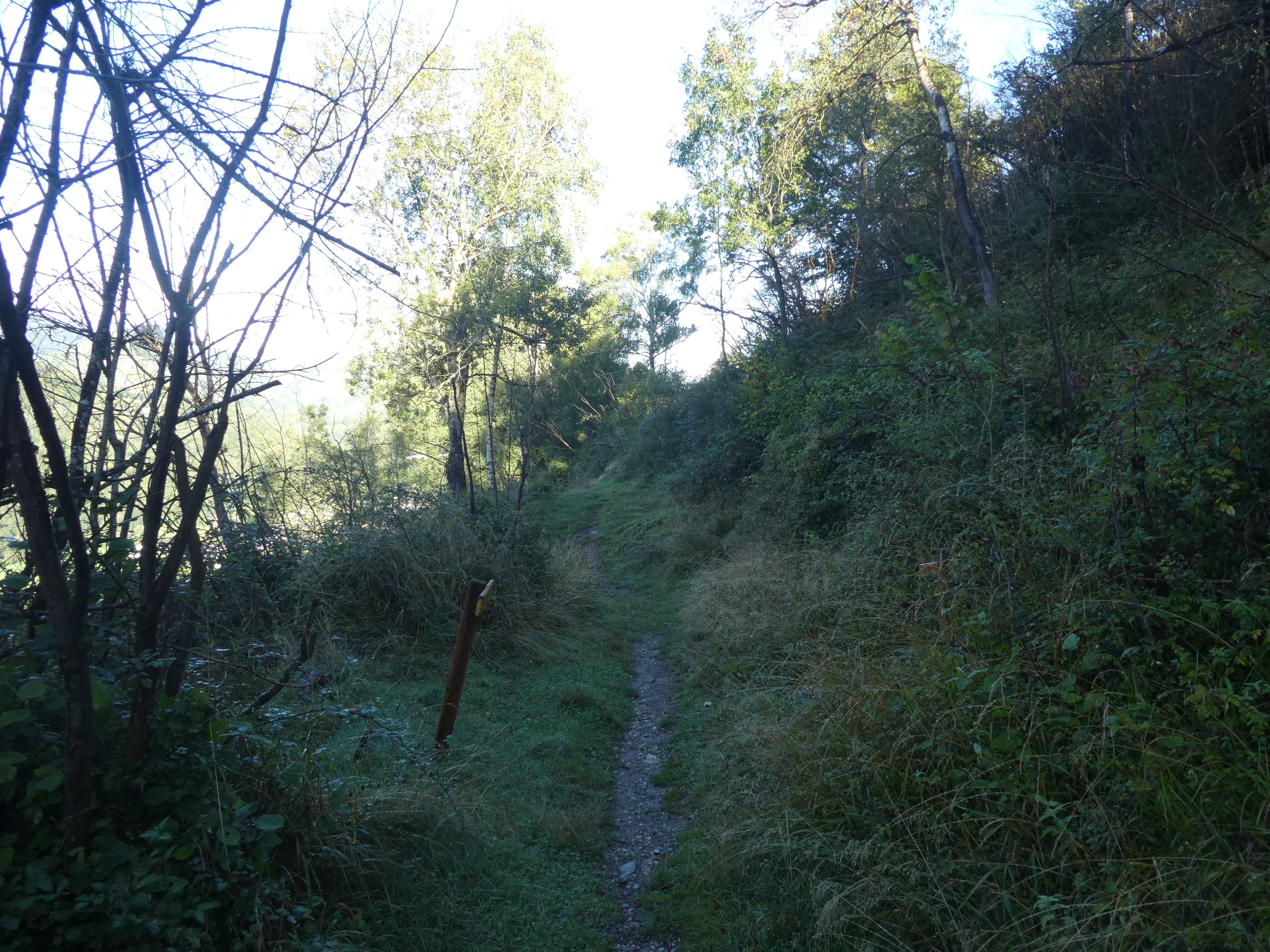 A ce croisement marqué par la présence d'un cairn (100 mètres après le précédent), suivre le chemin montant raidement tout droit direction Galade, balisé sporadiquement en jaune (attention, le chemin partant légèrement sur la gauche est aussi balisé en jaune)
