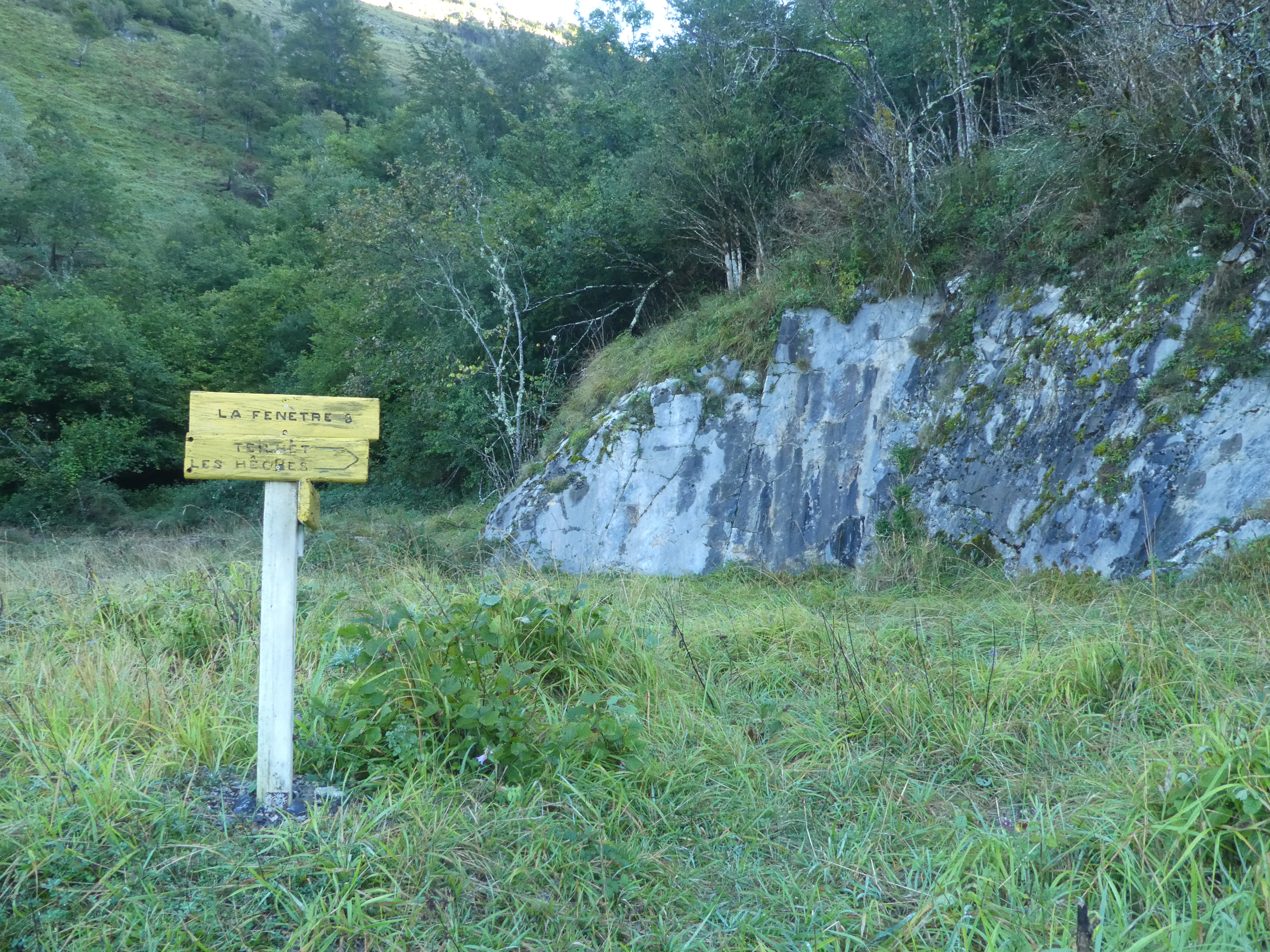 A ce croisement marqué par la présence d'un panneau directionnel (25 mètres après le précédent), suivre le chemin partant sur la droite et remontant la Coume d'Arricaou direction Fenêtre 8, balisé sporadiquement en jaune