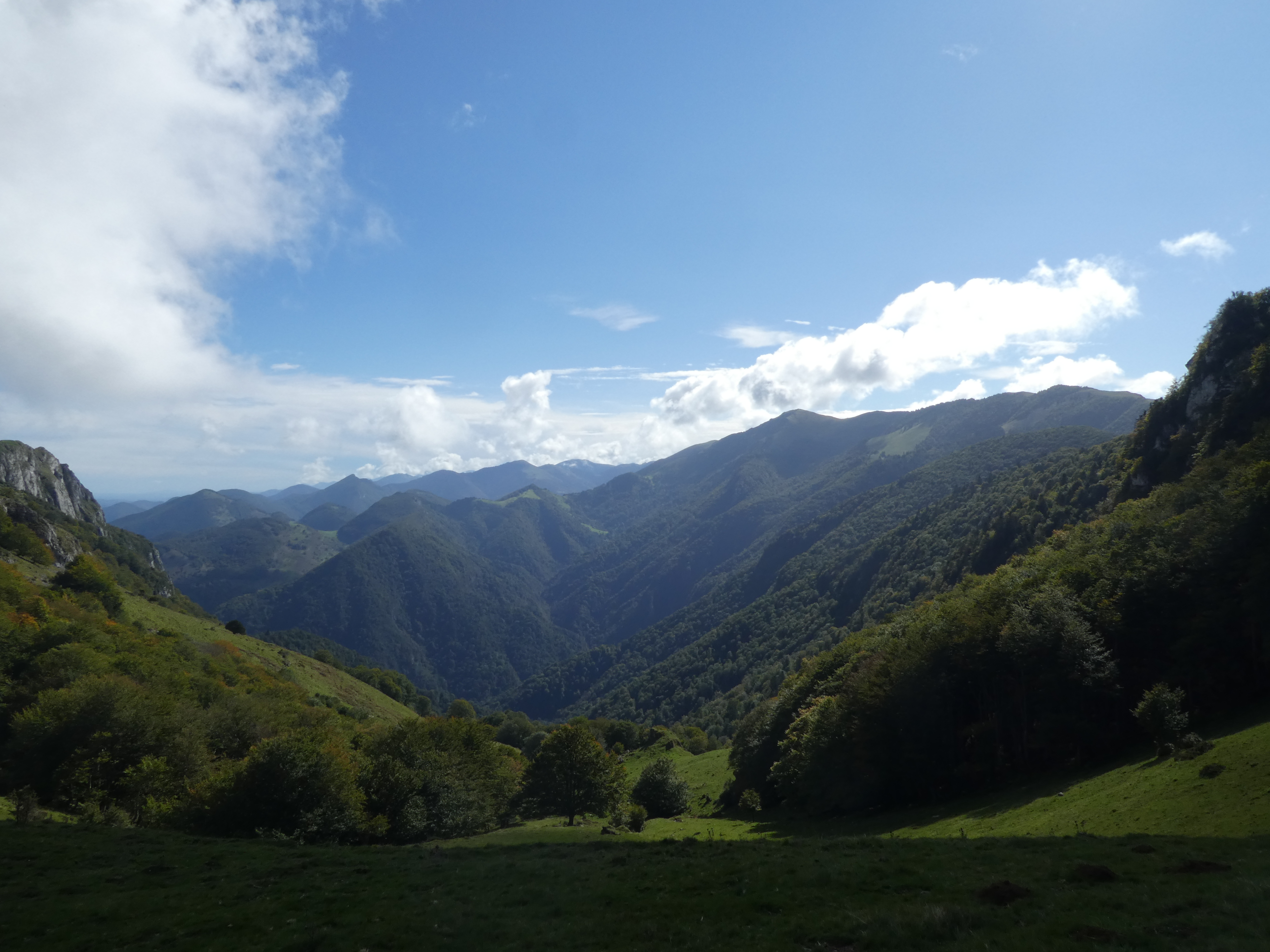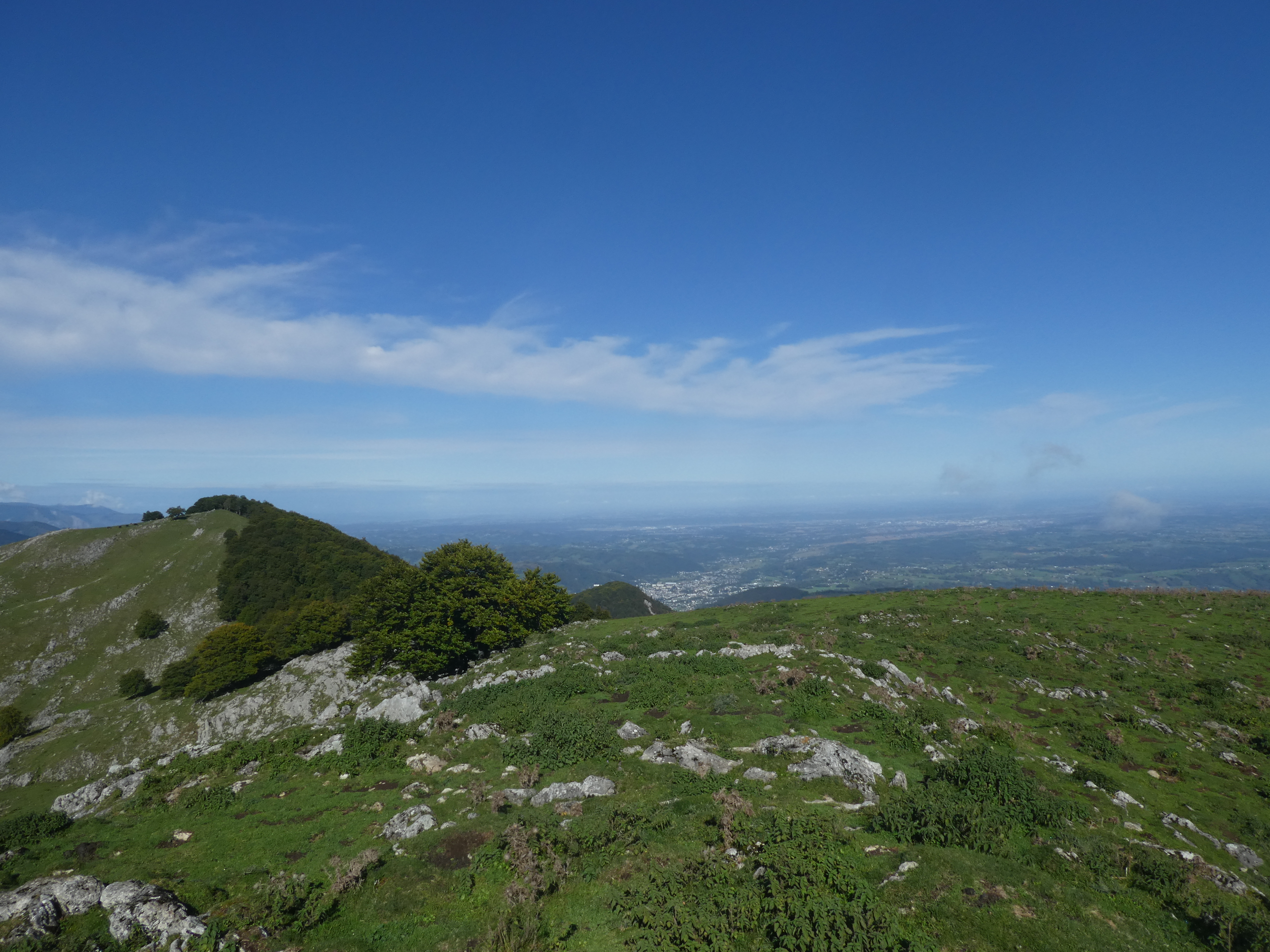 Arrivée au sommet du Haboura (1628 m) : beau panorama sur le Midi de Bigorre, le Montaigu, le Casque du Lhéris, la Montagne de Billexe, le Signal de Bassia, les sommets de la Vallée d'Aure, l'Arbizon, le Pic de Bastan ... ainsi que sur la Vallée de l'Adour de Payolle, de Gripp et sur la plaine