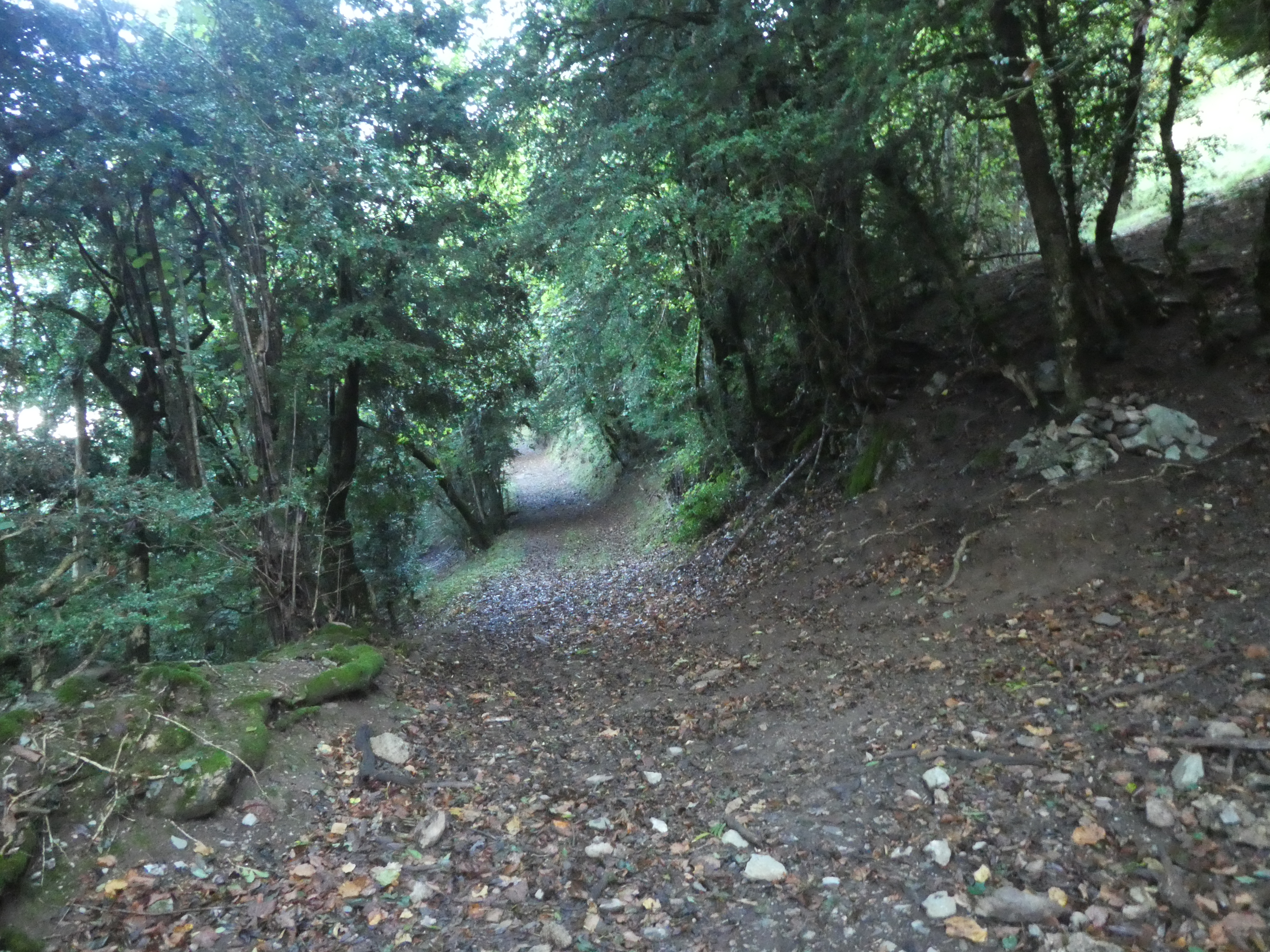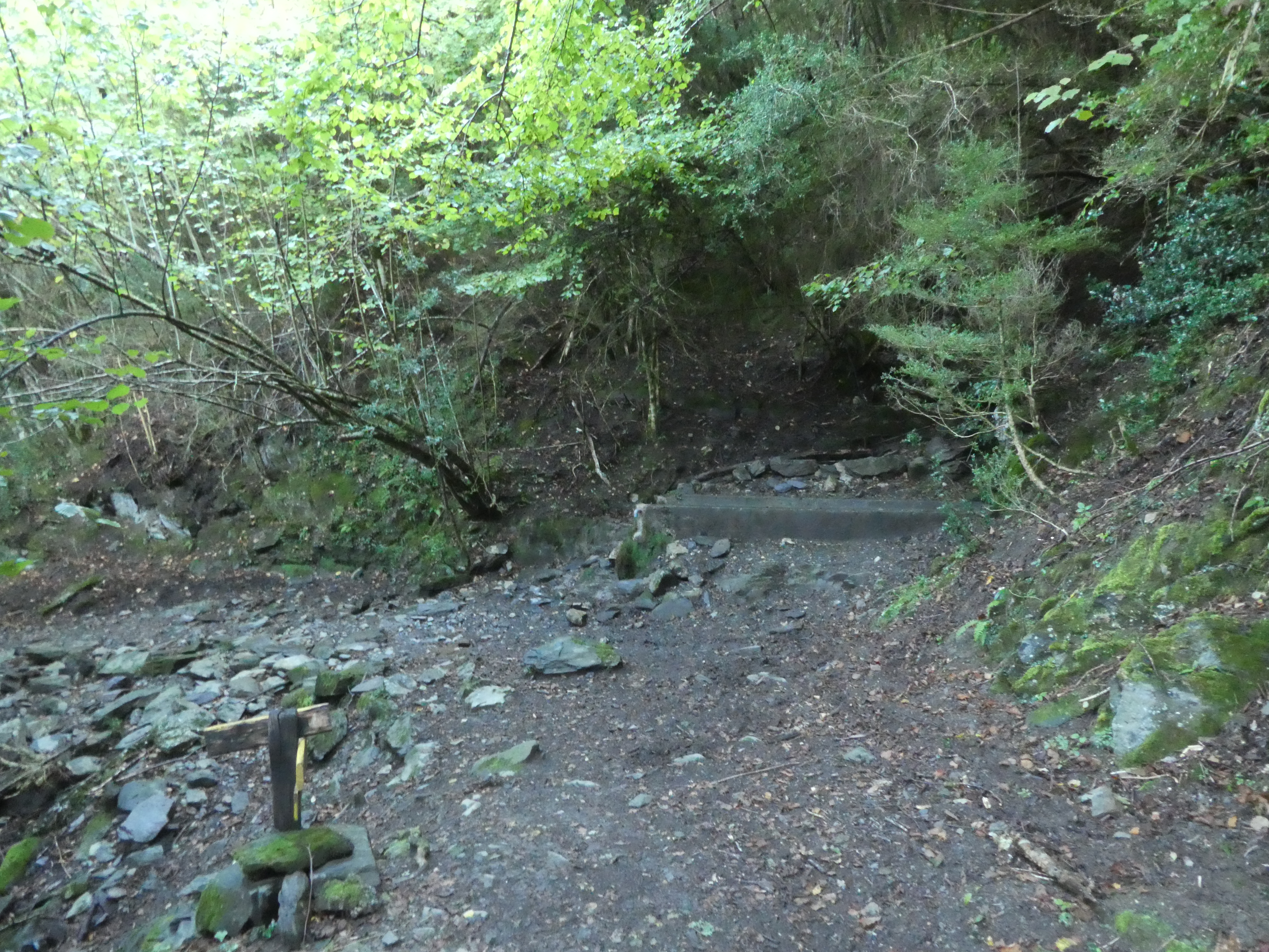 A ce croisement cairné avec le chemin venant directement du Pont d'Arteil (700 mètres après le précédent), suivre ce dernier sur la gauche direction Pont d'Arteil, balisé sporadiquement en jaune (boucle bouclée)