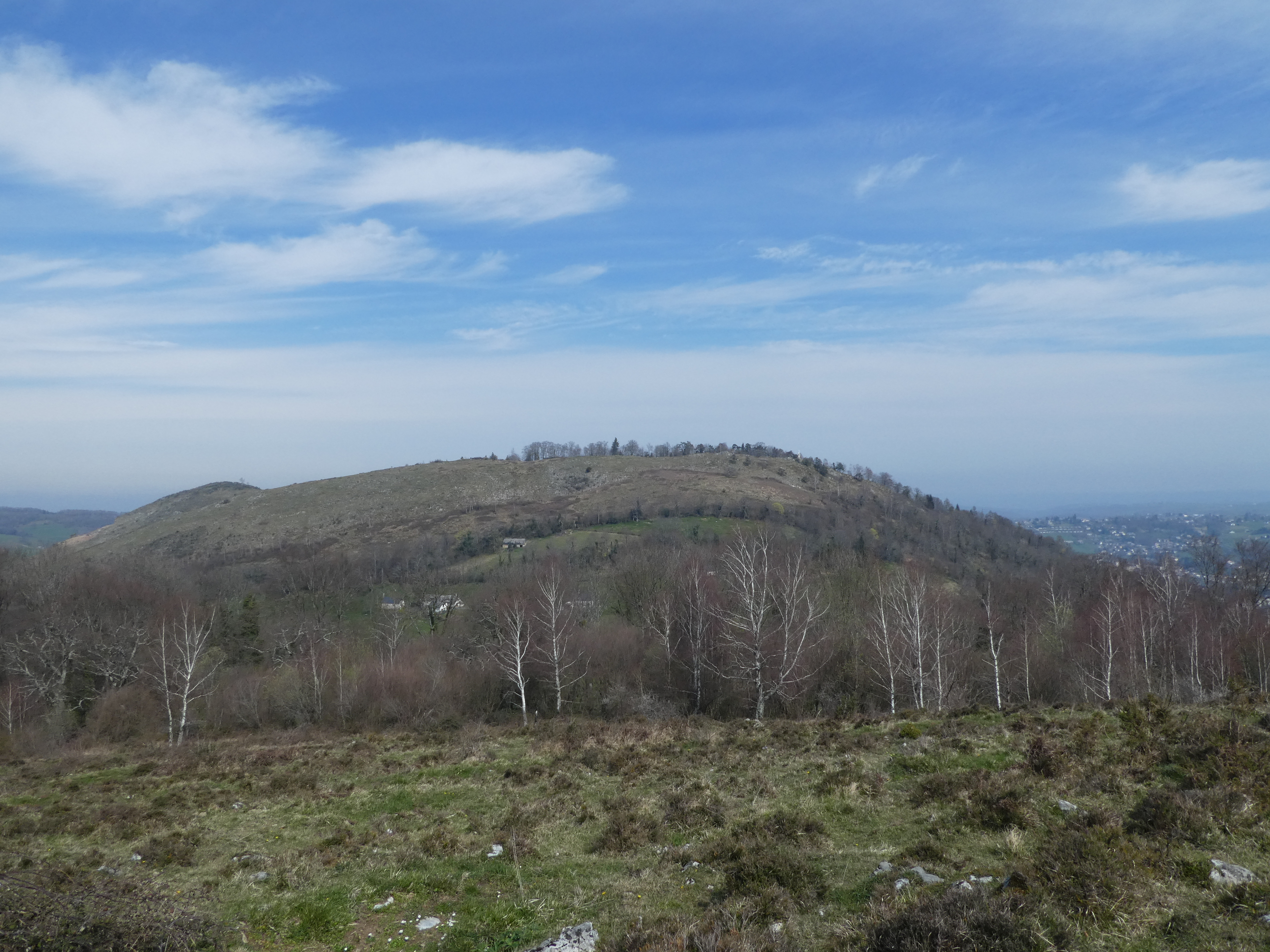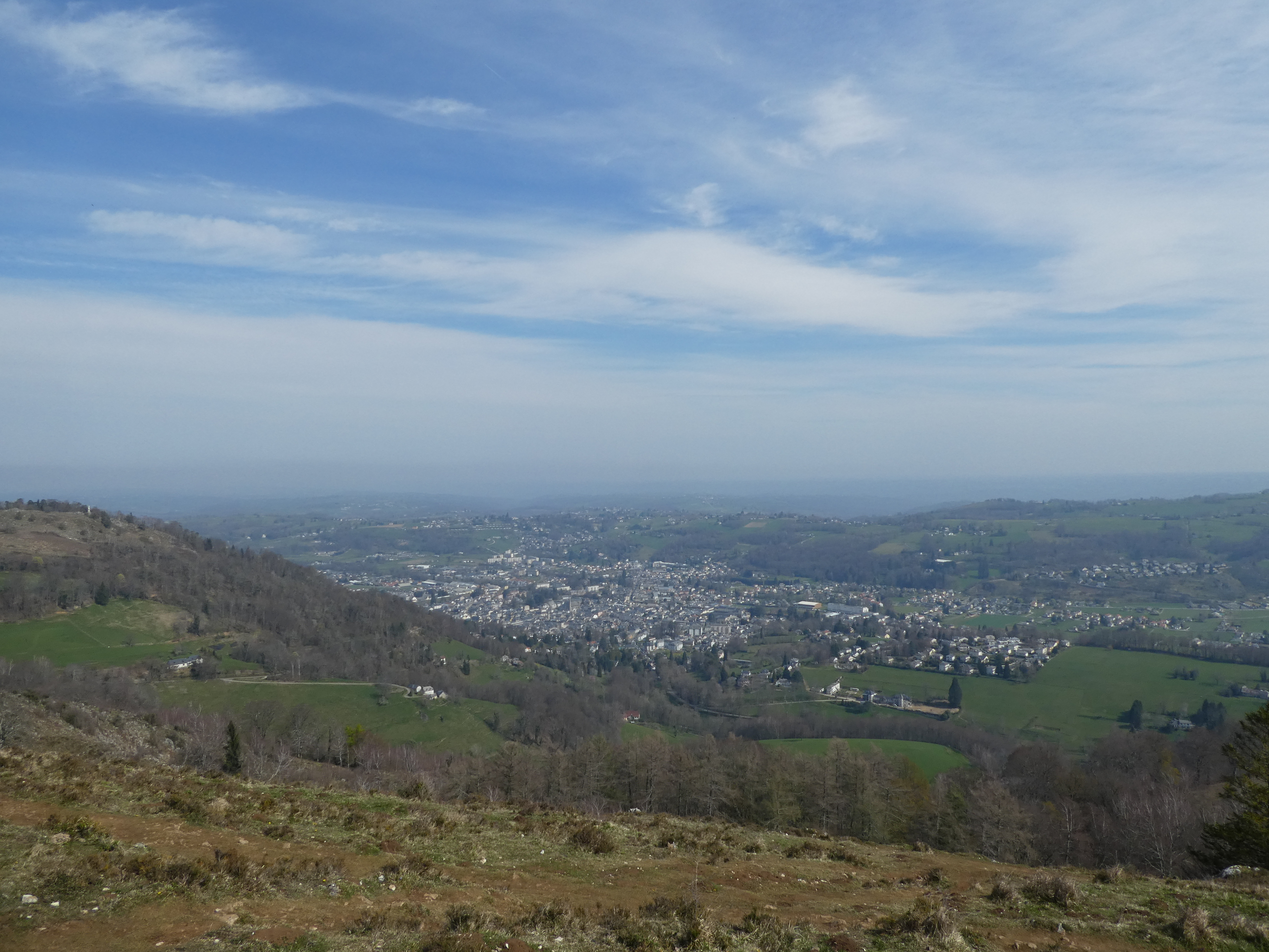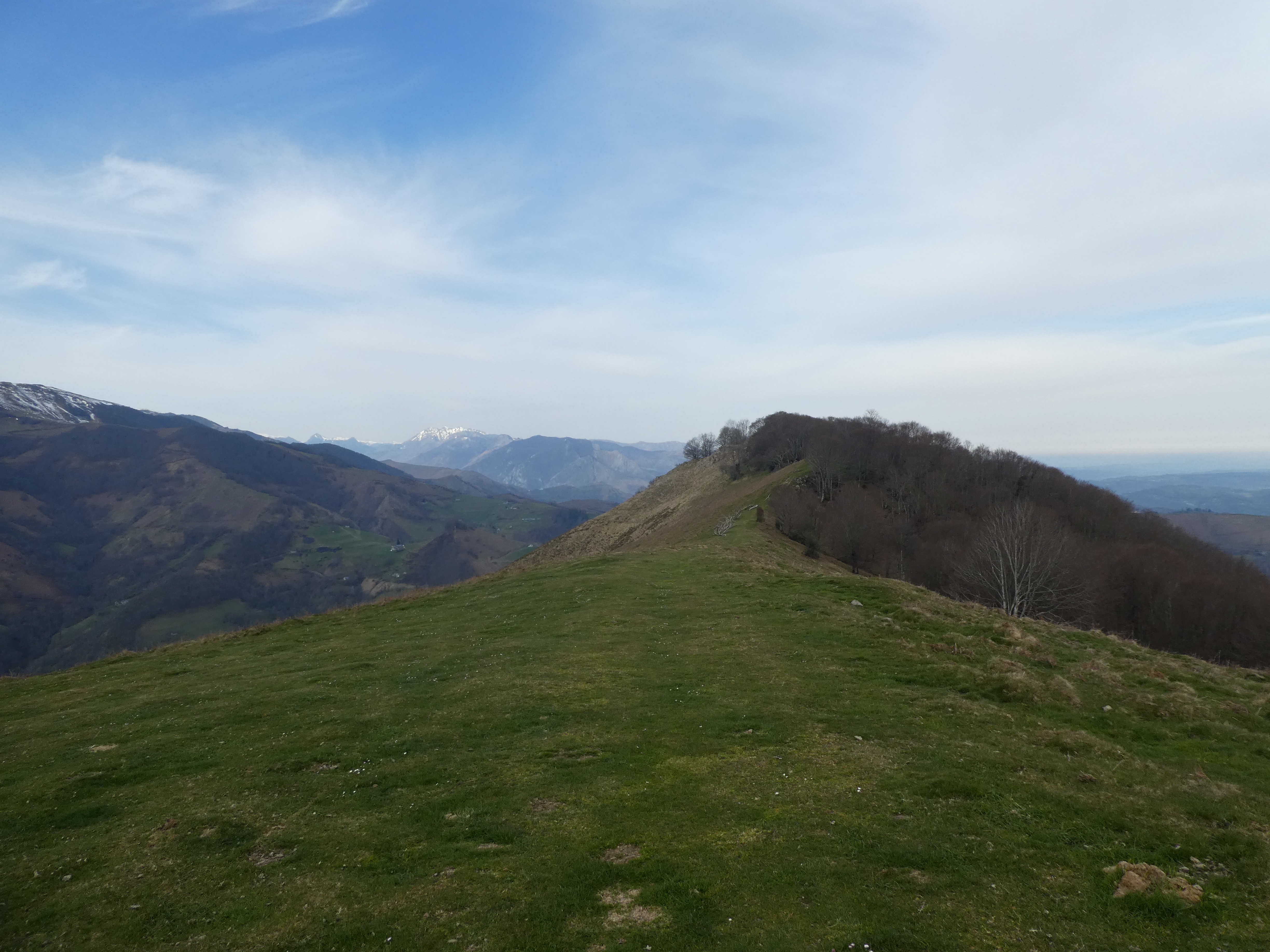 Arrivée au sommet du Tucou (950 m) : belle vue sur le Montaigu, le Casque du Lhéris, le Caoutérou, le Monné ainsi que sur la plaine, la Vallée de l'Adour et la ville de Bagnères-de-Bigorre