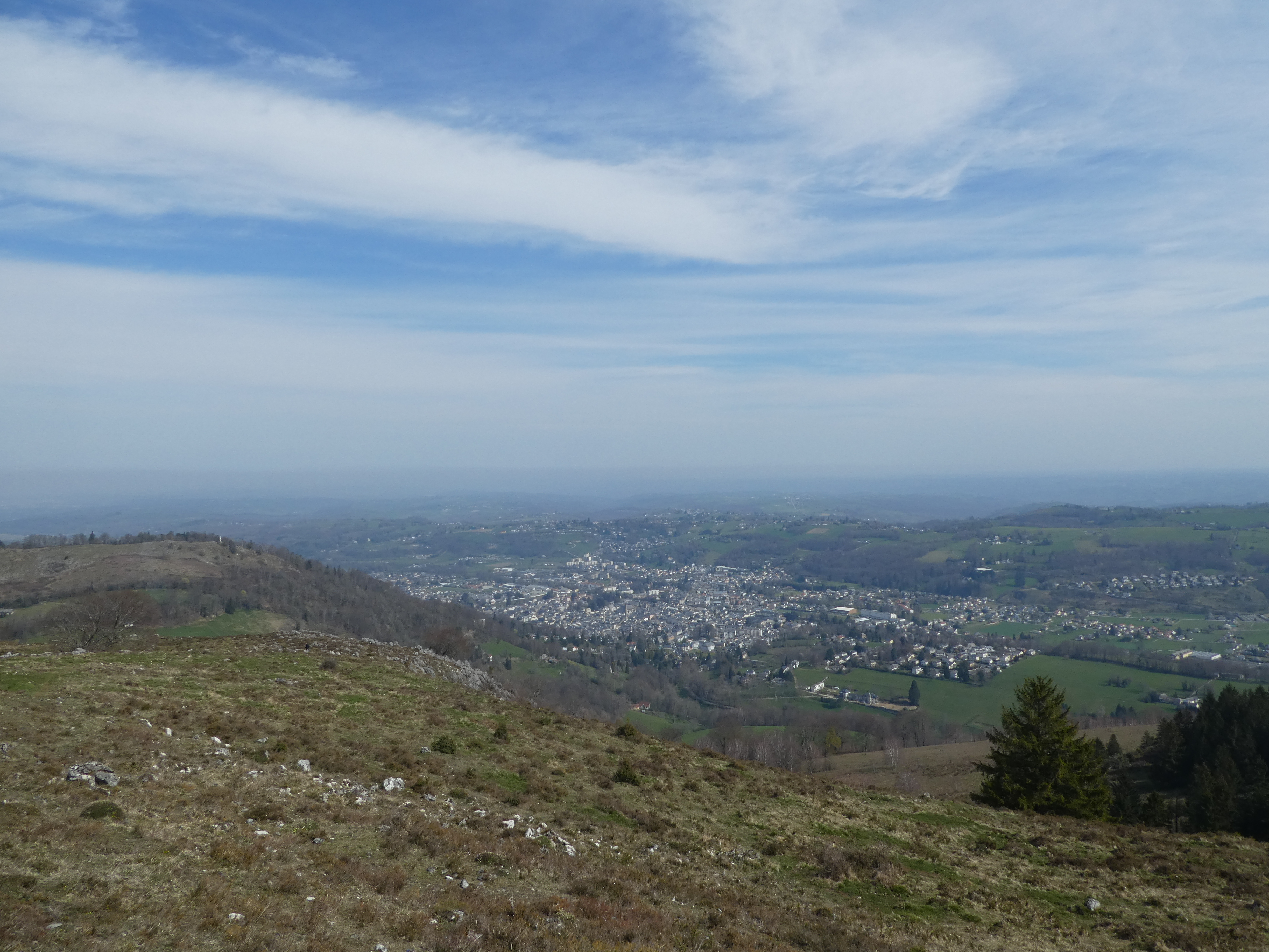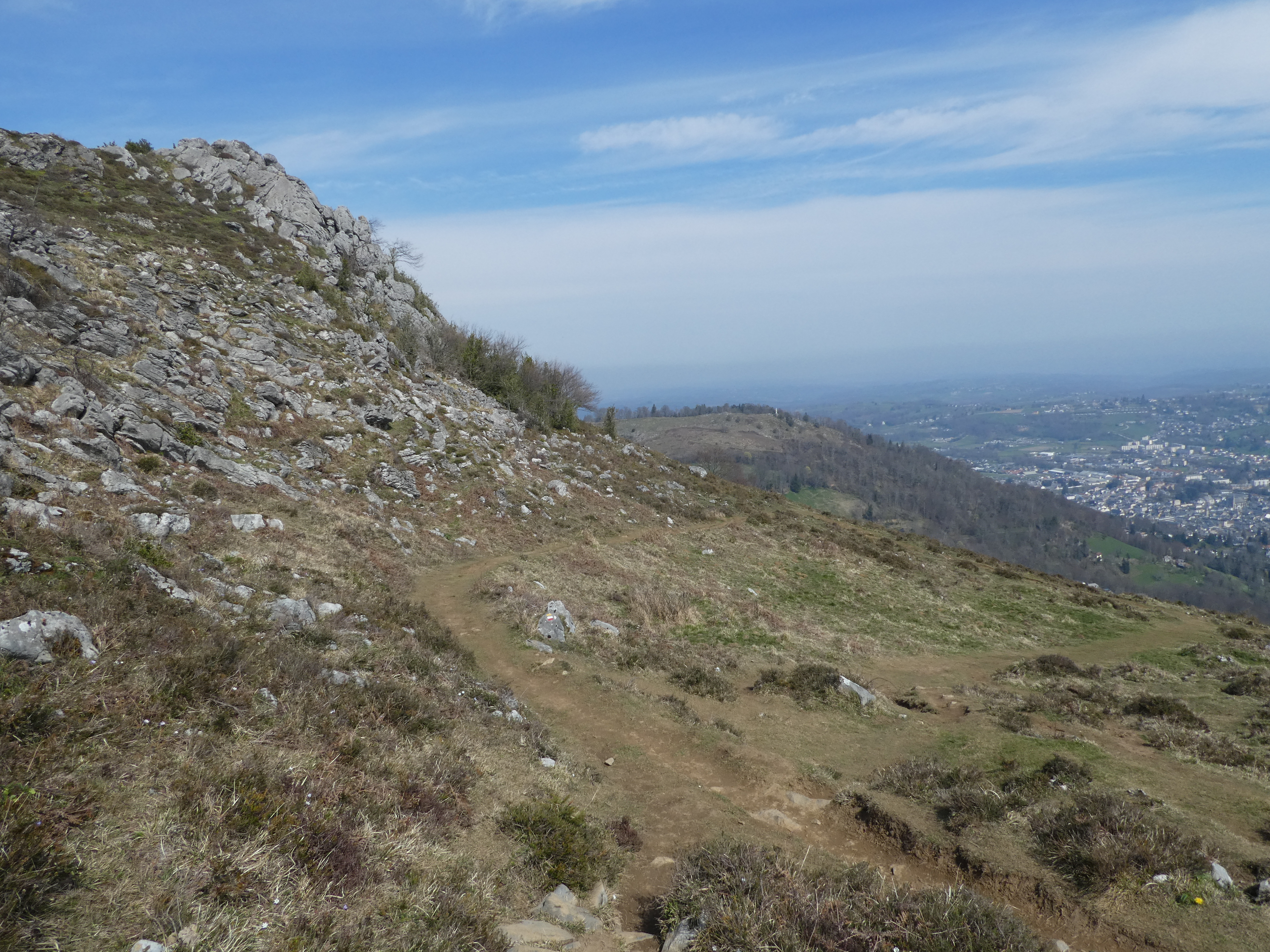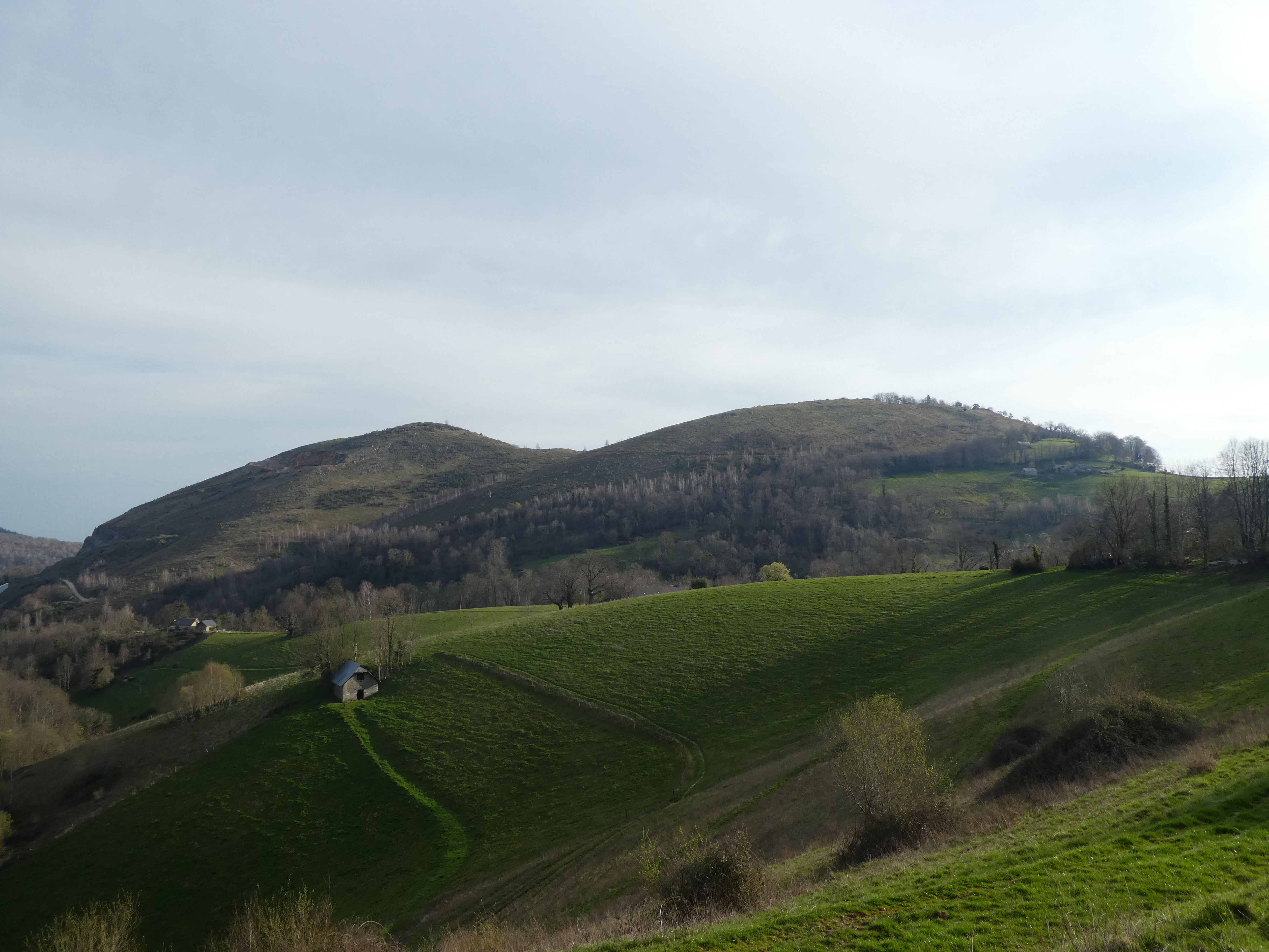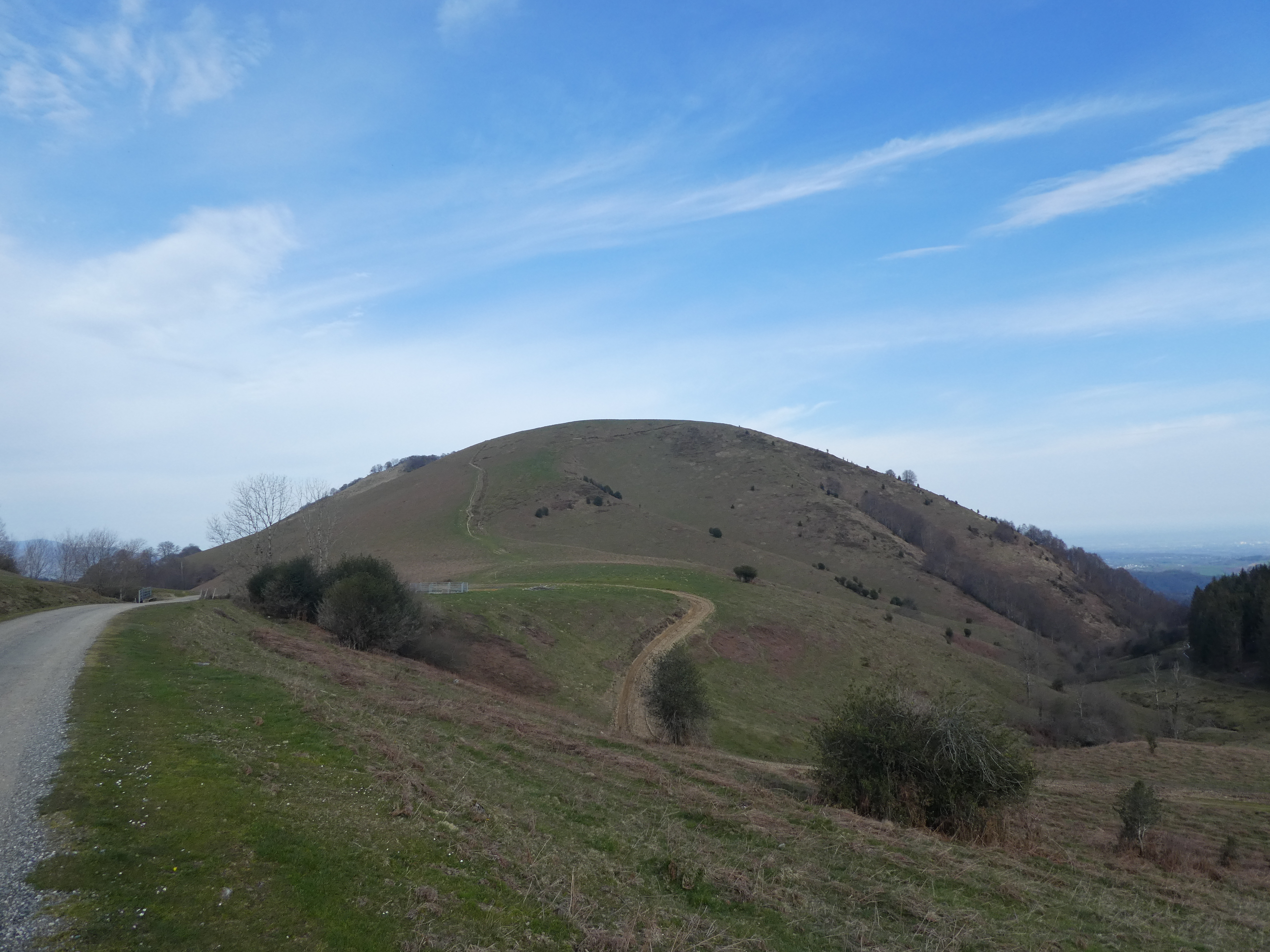 Arrivée au sommet du Tucou (950 m) : belle vue sur le Montaigu, le Casque du Lhéris, le Caoutérou, le Monné ainsi que sur la plaine, la Vallée de l'Adour et la ville de Bagnères-de-Bigorre