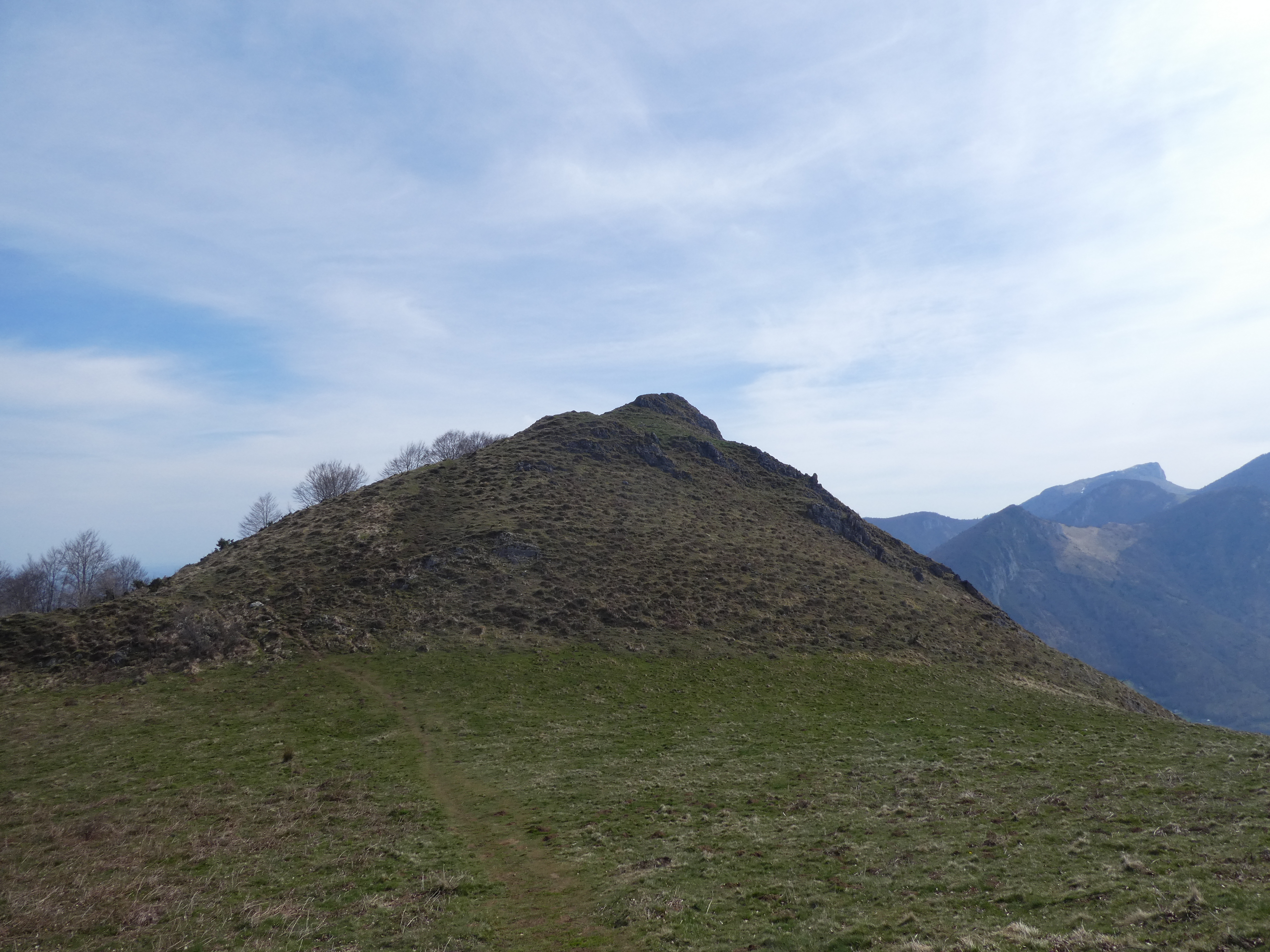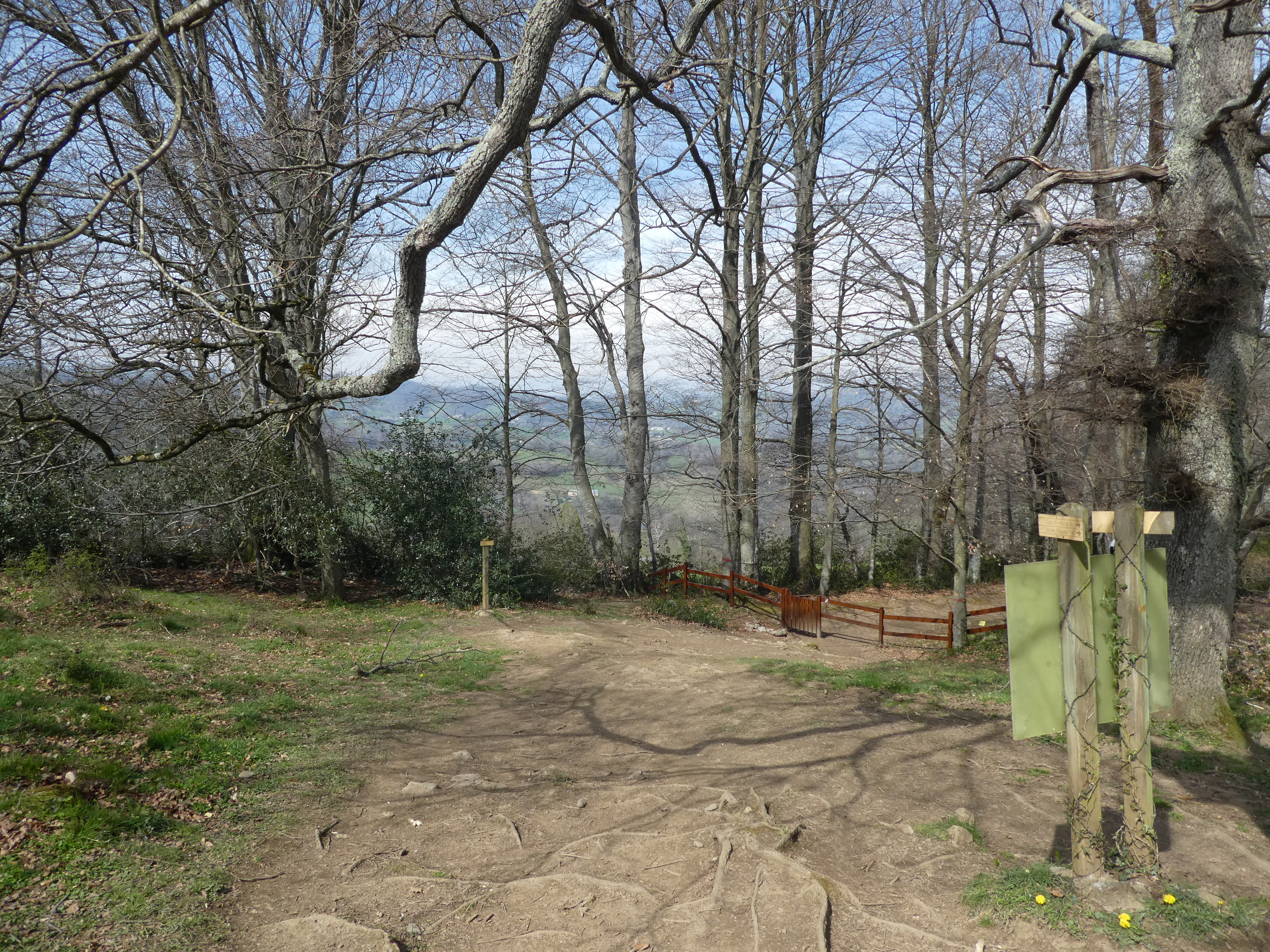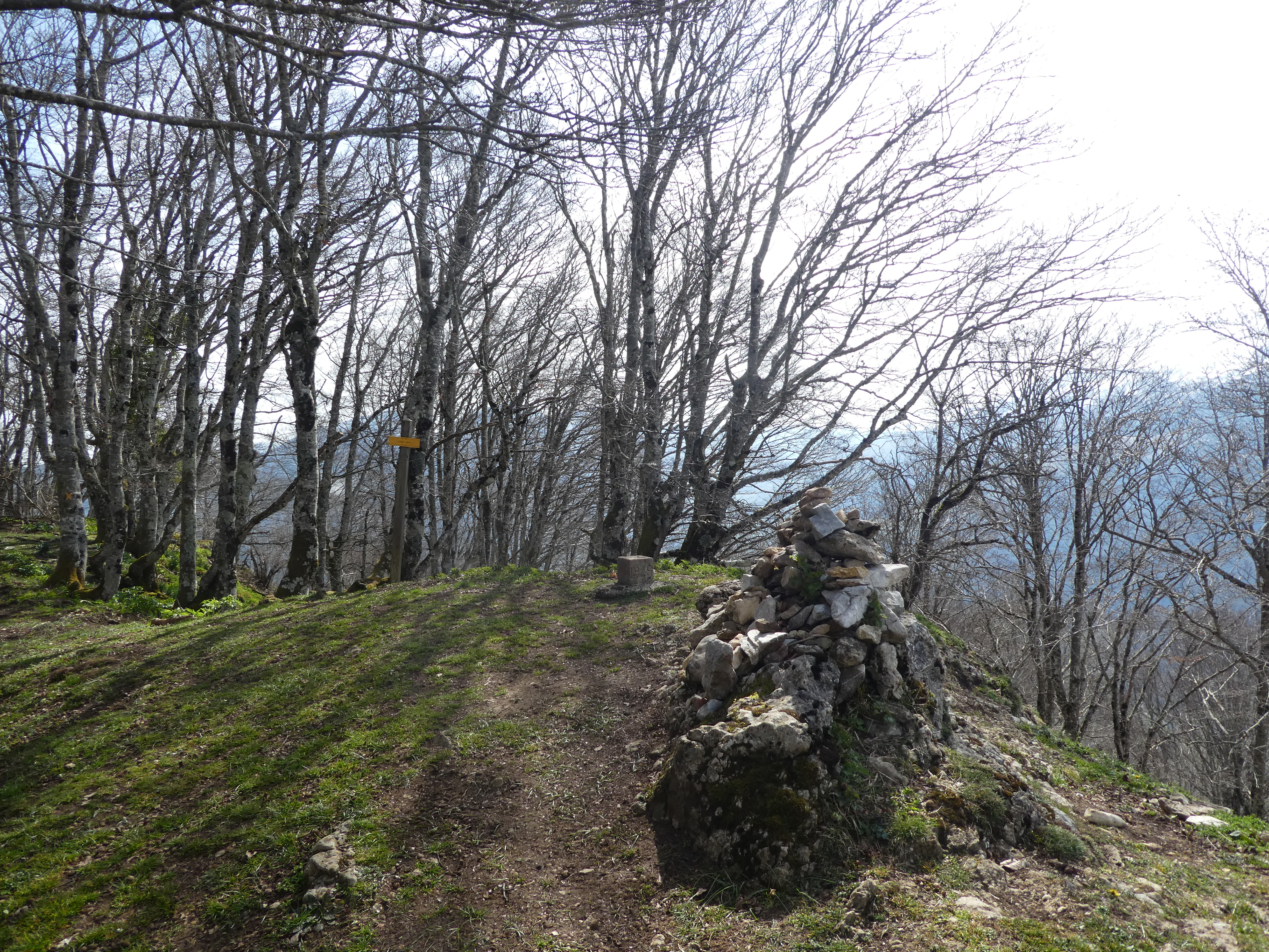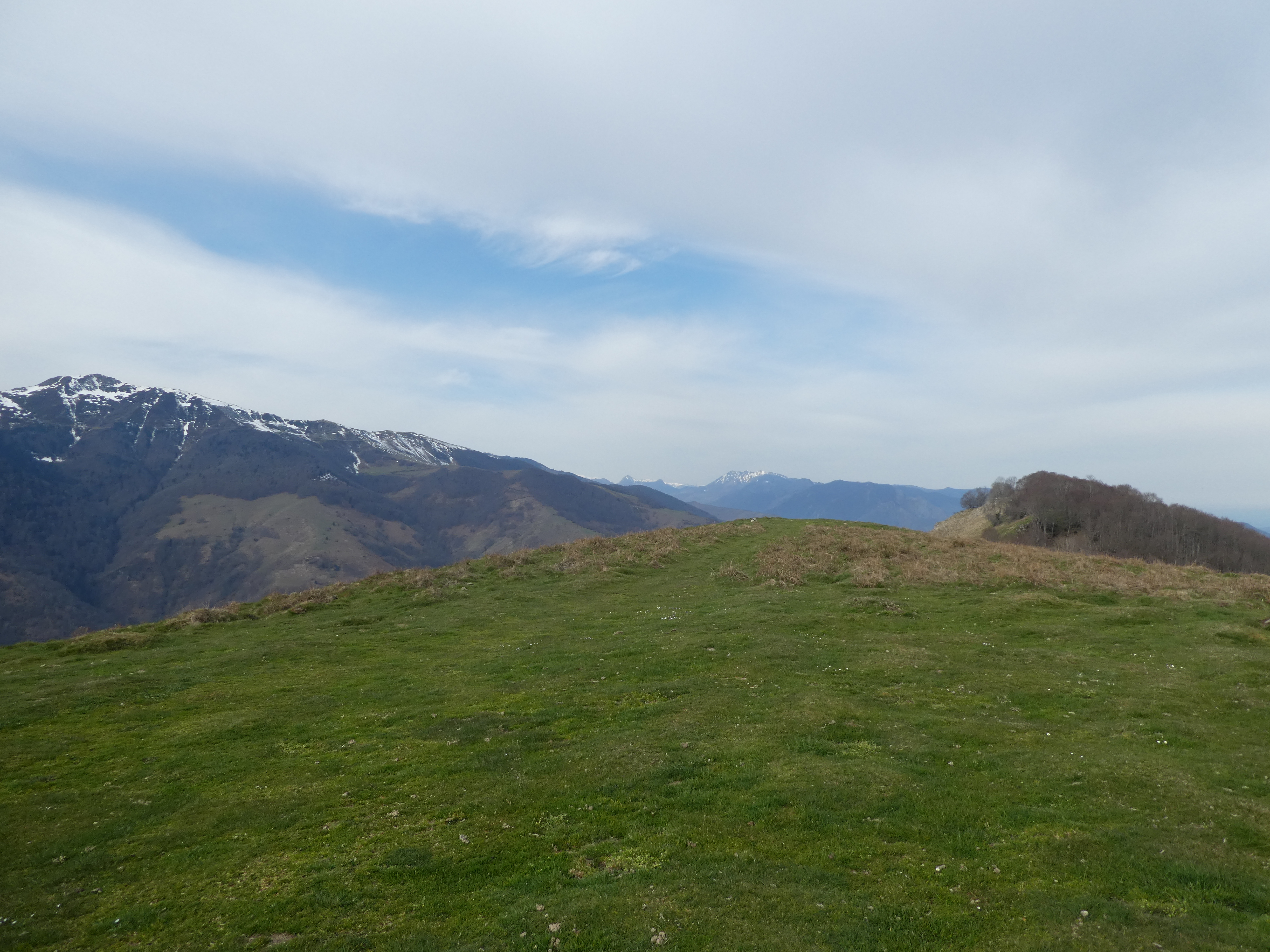 Arrivée au sommet du Monné (1269 m) : panorama réduit en raison de la présence d'arbres au sommet avec vue sur les massifs du Midi de Bigorre et du Montaigu