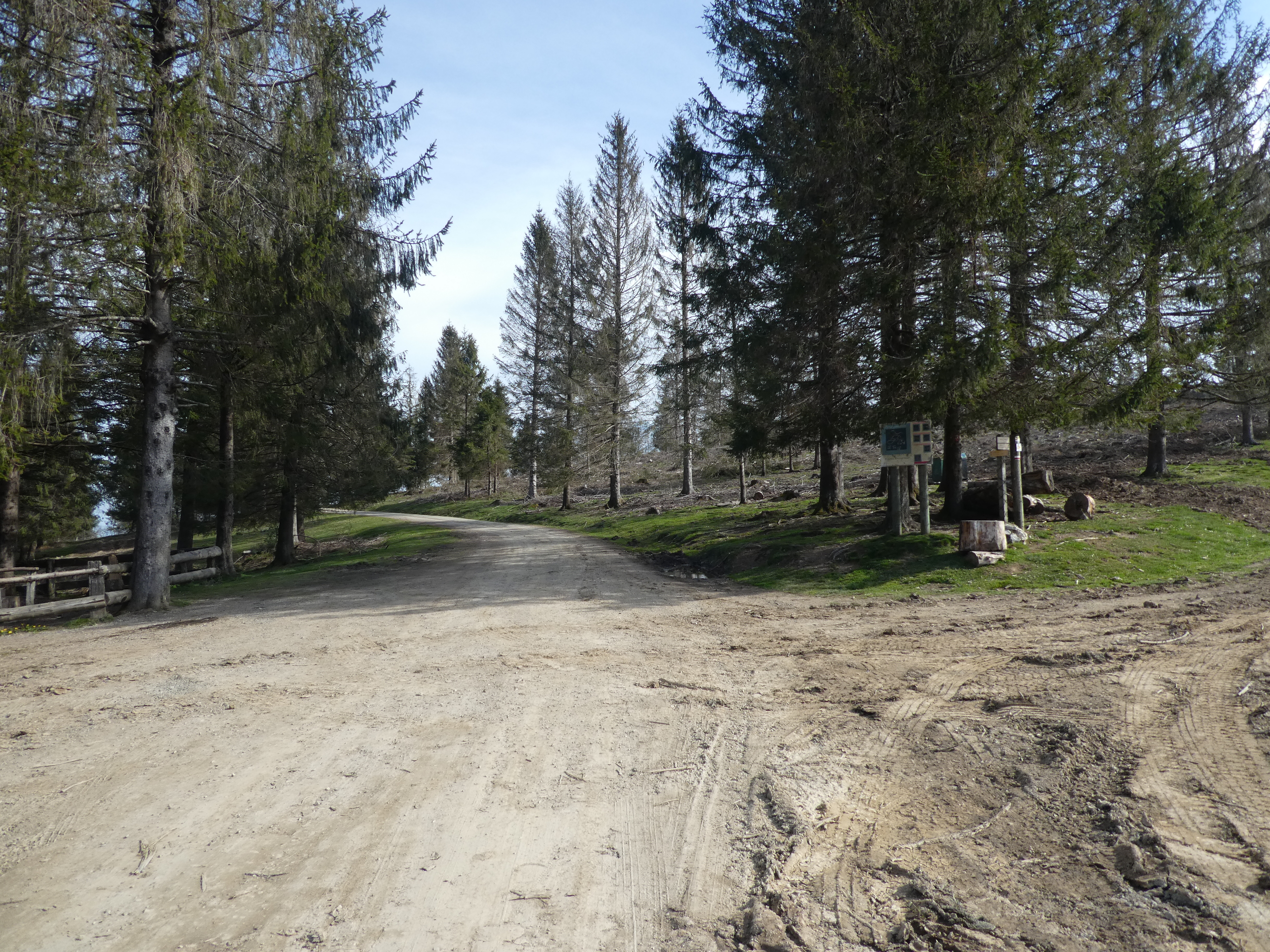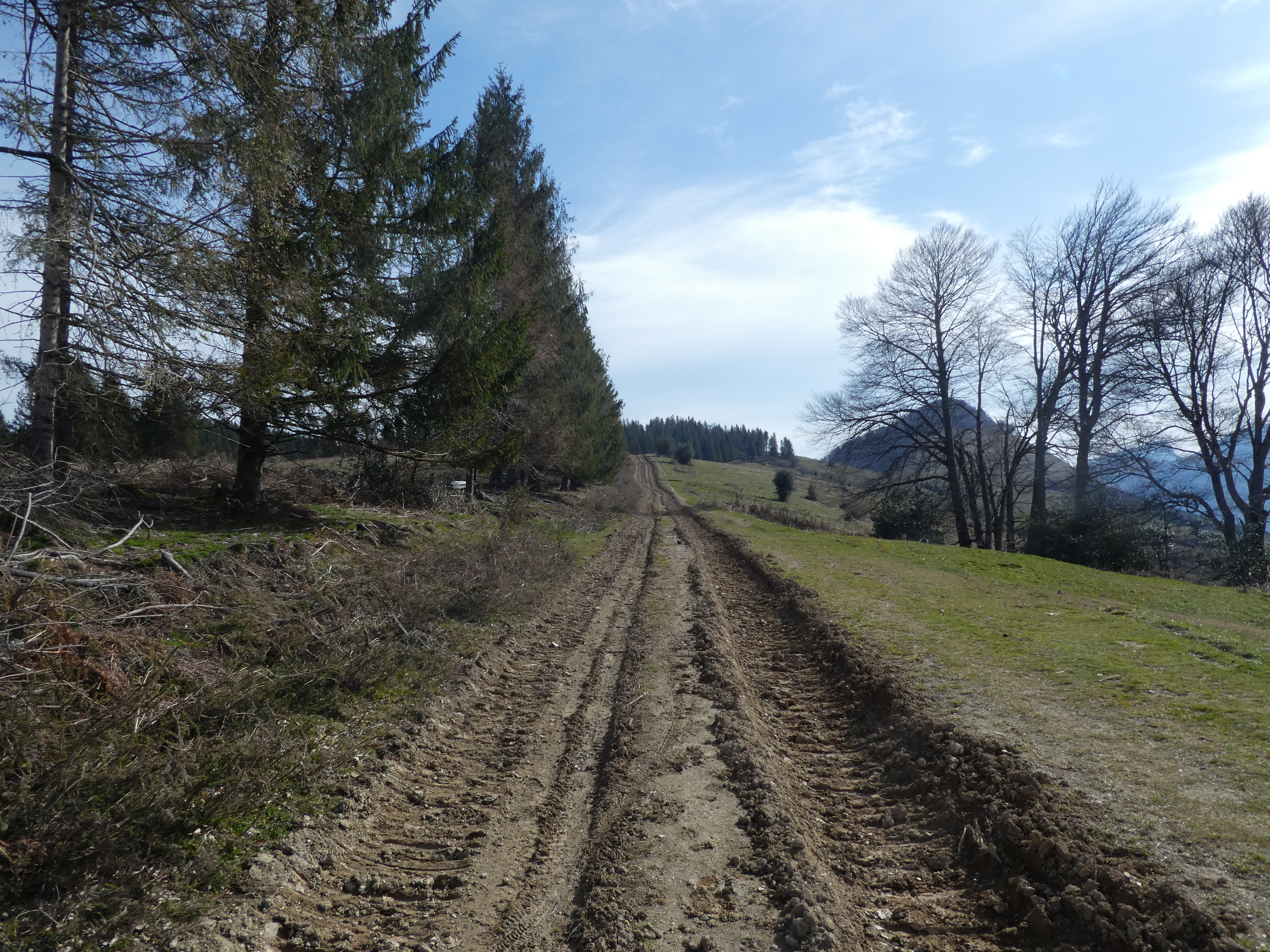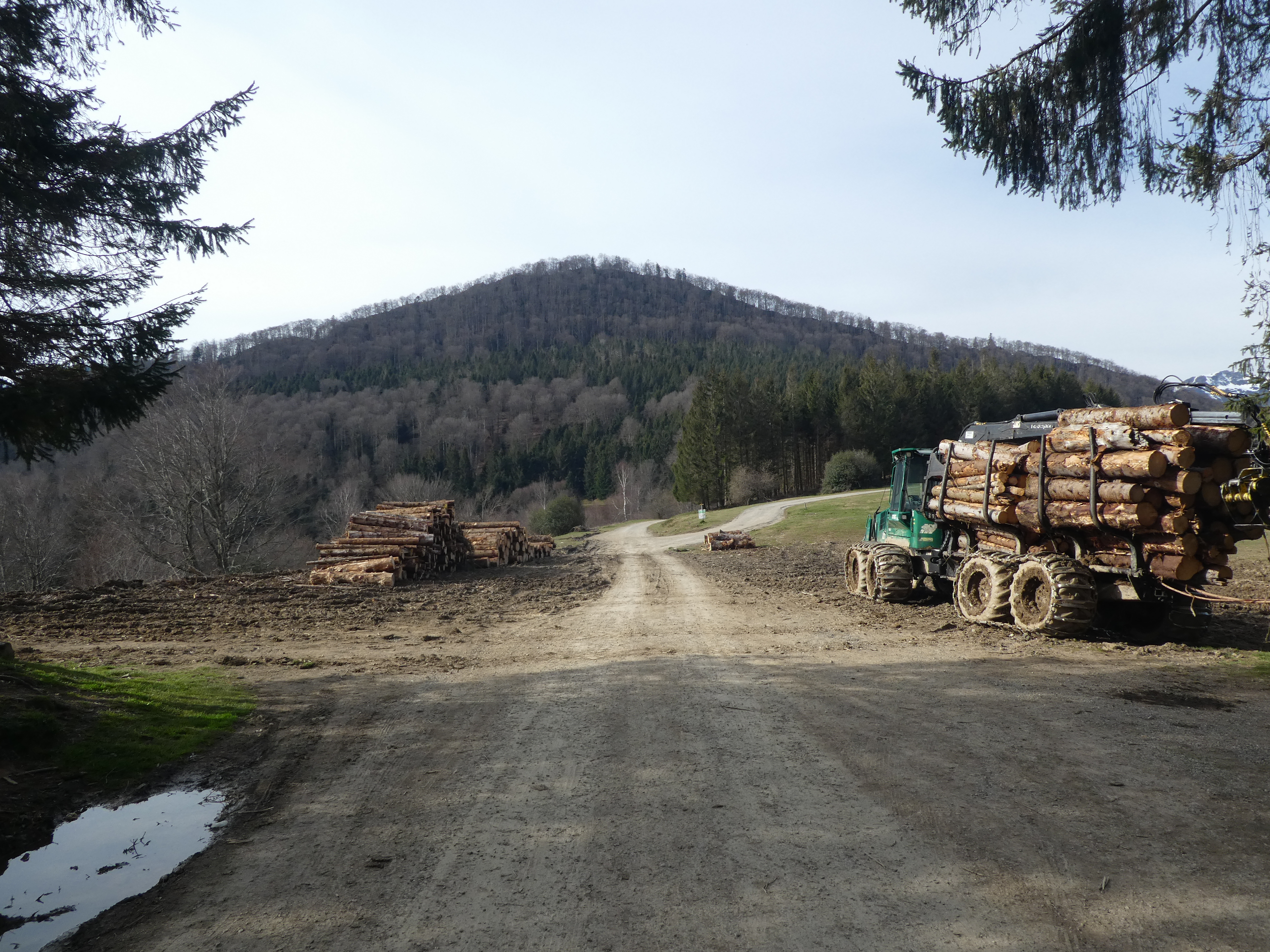 Dès que le chemin de montée atteint une zone de travaux forestiers clairsemée (1500 mètres après le précédent croisement), garder un cap Sud afin de rejoindre la piste de montée vers le Rond Point d'Esquiou passant par les Portes de Fer direction Rond Point d'Esquiou (par Cot de Ger), balisé en jaune
