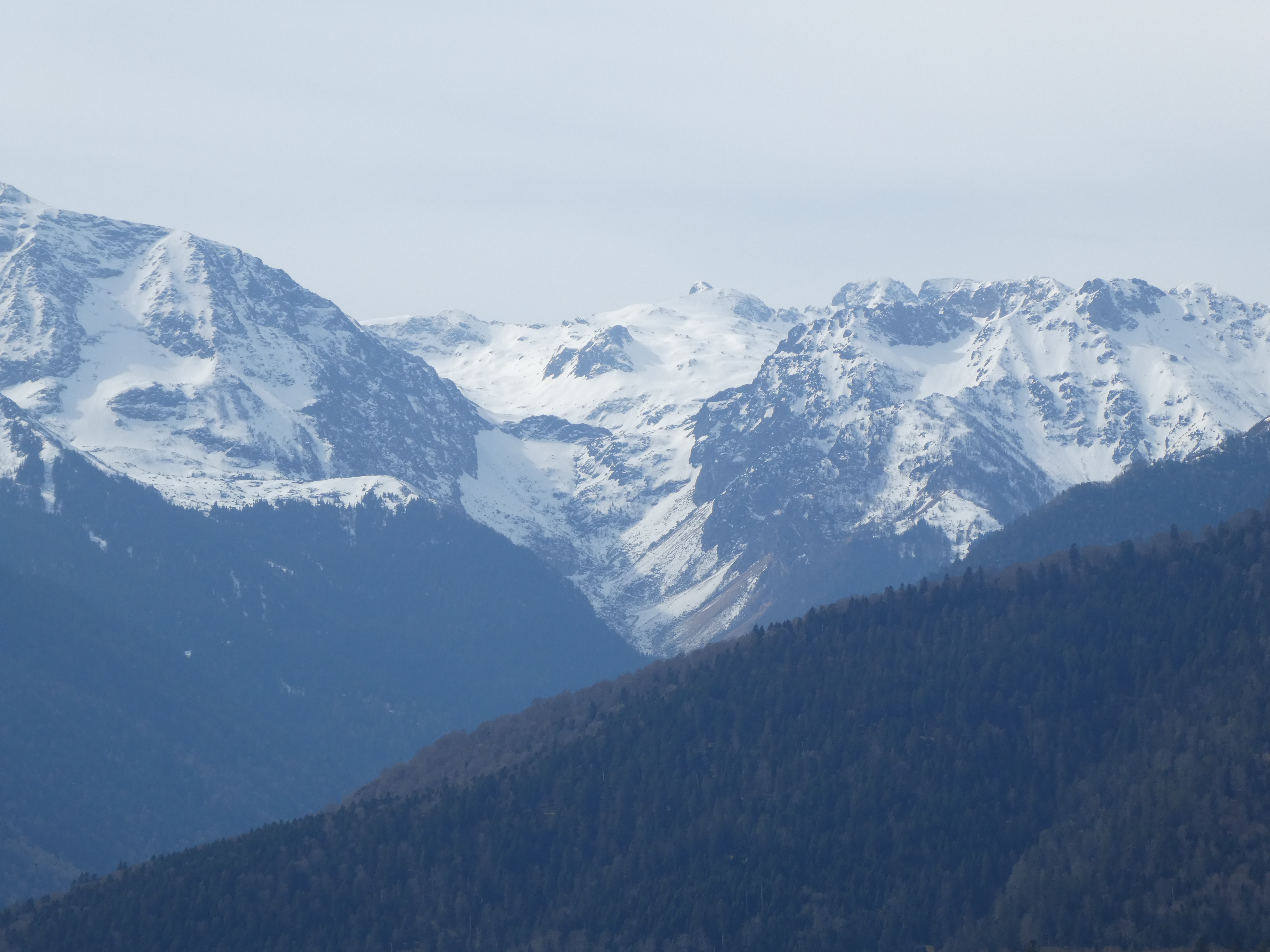 Zoom sur les sommets du Luchonnais et ses 3000 ... ainsi que sur le Pico de la Maladeta à gauche et ses 3308 mètres d'altitude