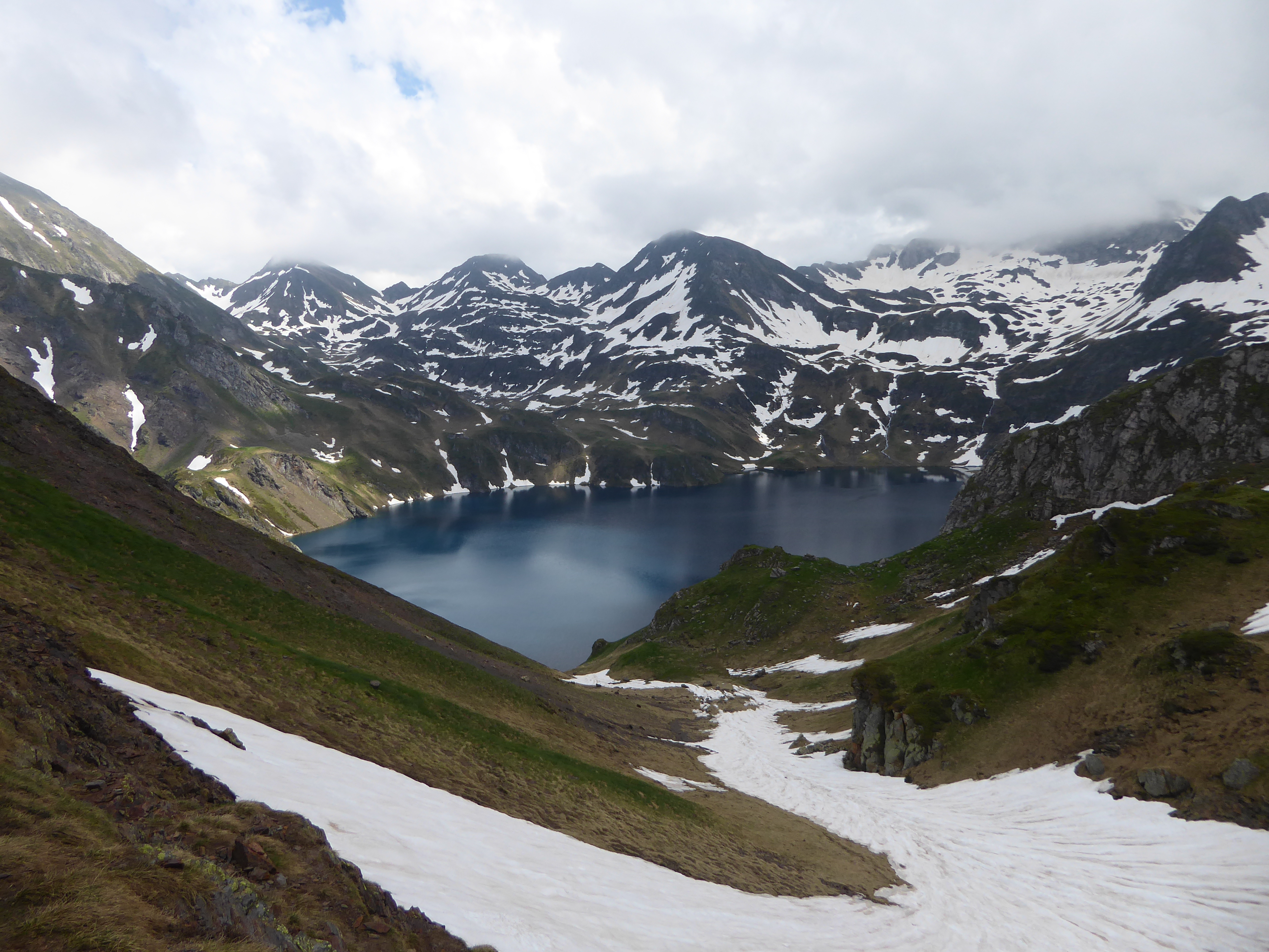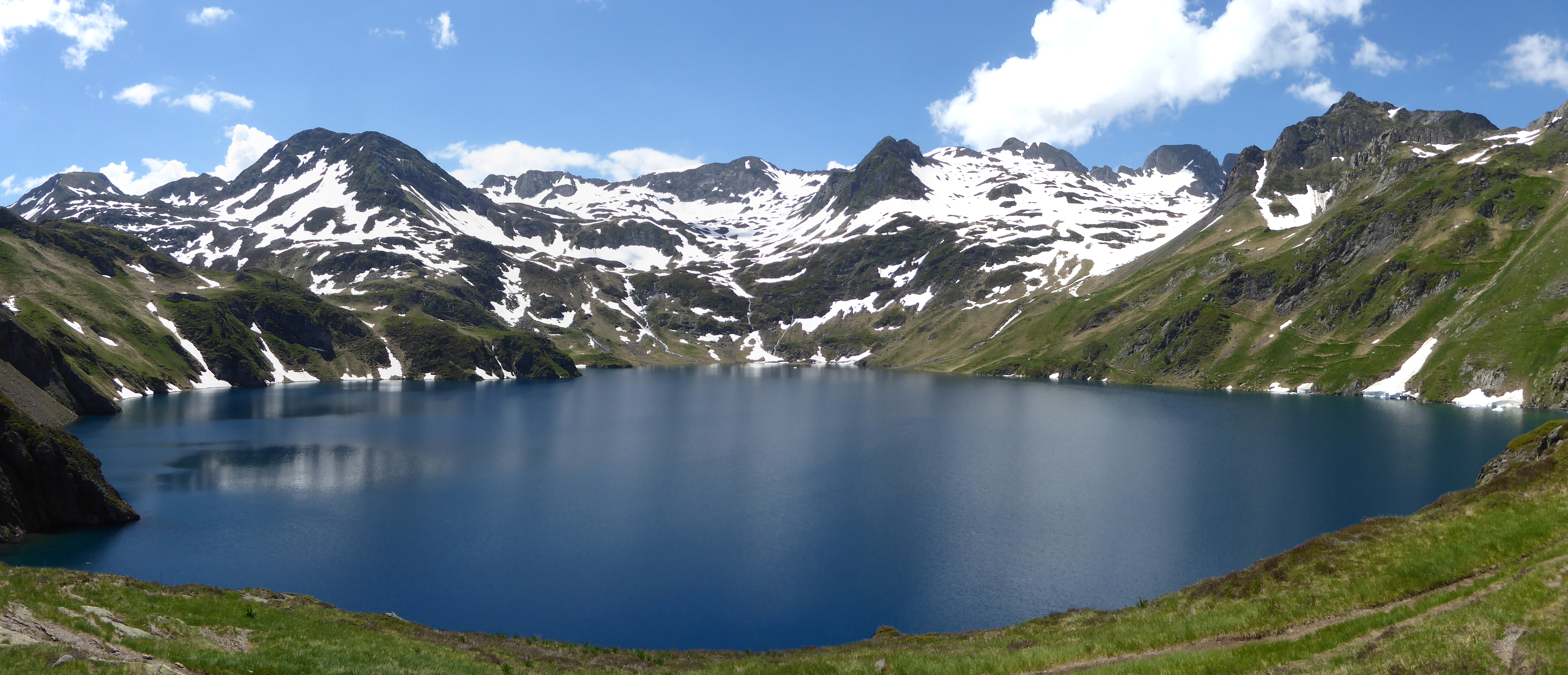 Lac Bleu (1968 m) : suivre le chemin partant sur la gauche et longeant le lac sur la droite direction Col de Bareilles, balisé en jaune