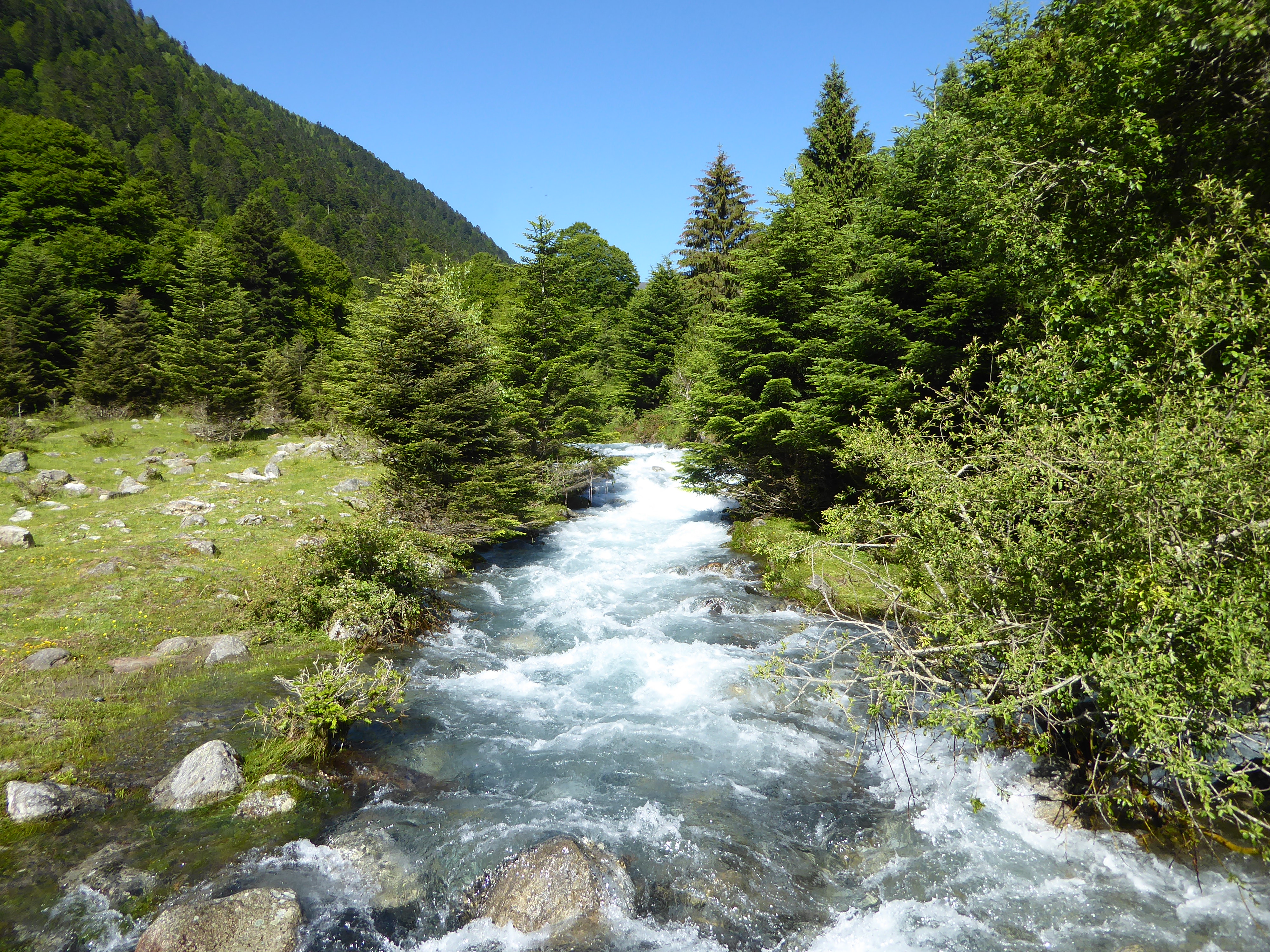 Passerelle (1513 m) : continuer à suivre le chemin qui descend le Vallon du Lhécou direction le Chiroulet, balisé en jaune