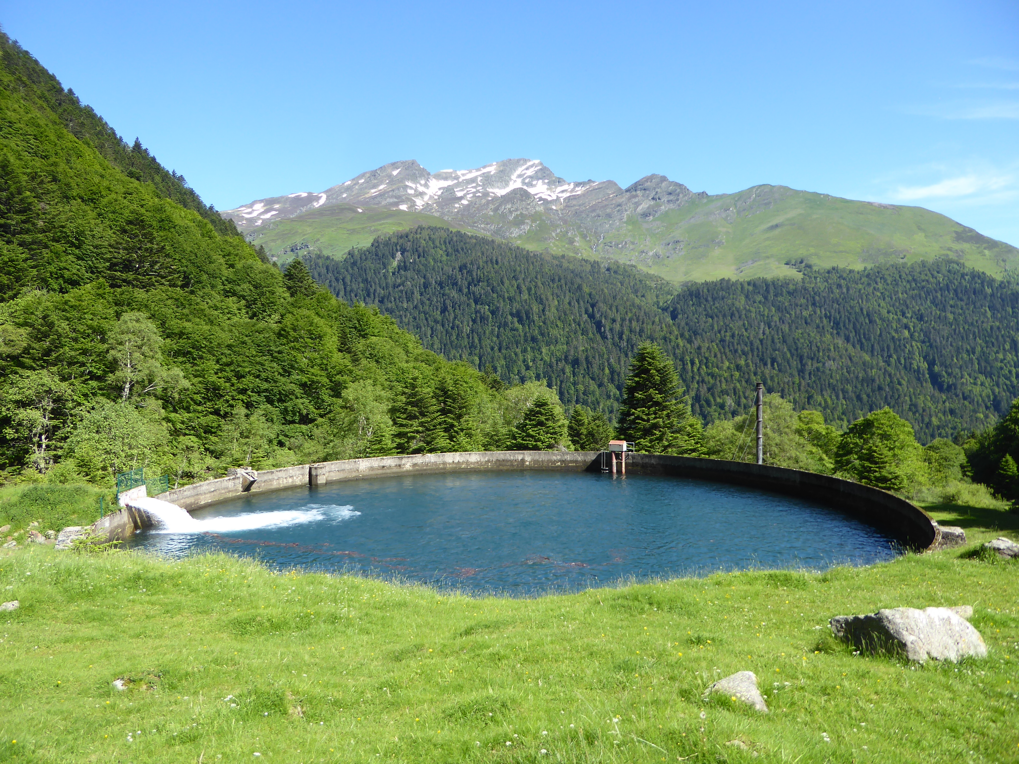 Le Bassin d'eau en question avec en arrière-plan, le Pic de Montaigu culminant à 2339 mètres d'altitude
