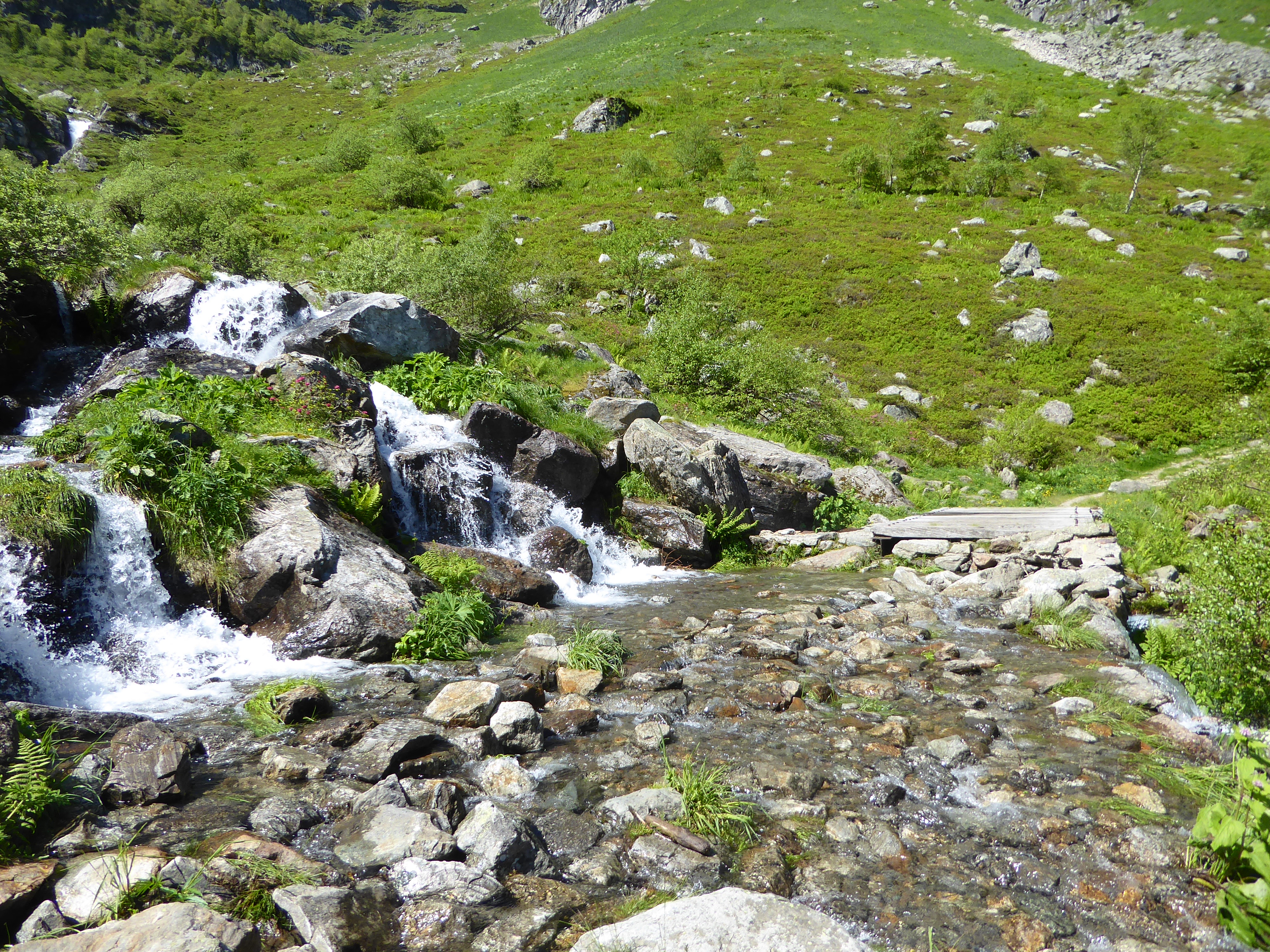 Passerelle (1513 m) : continuer à suivre le chemin remontant le Vallon du Lhécou direction Lac Bleu, balisé en jaune