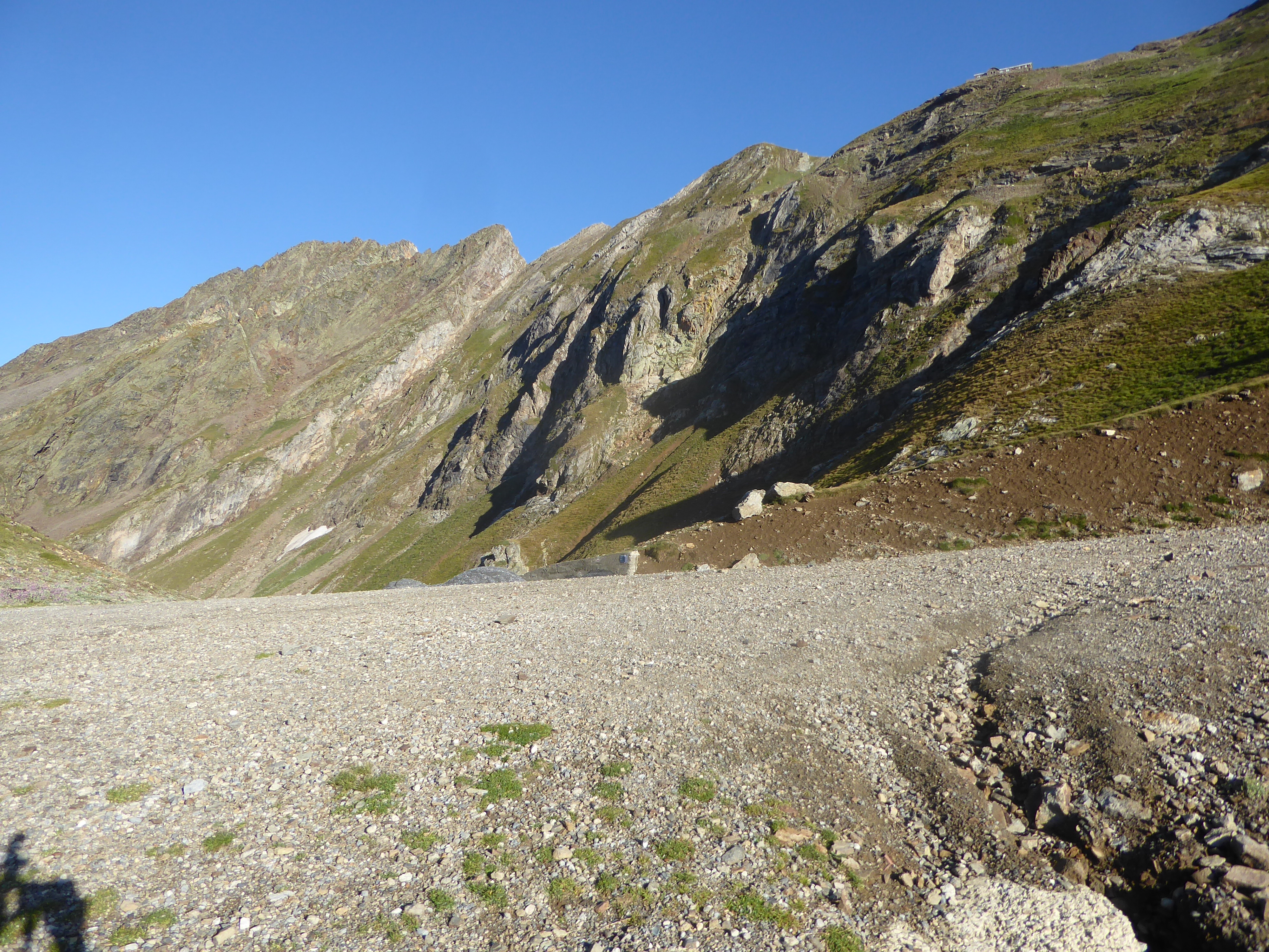 Hôtellerie des Laquets (2621 m) : continuer à suivre la large piste partant tout droit direction Pic du Midi, balisé en jaune