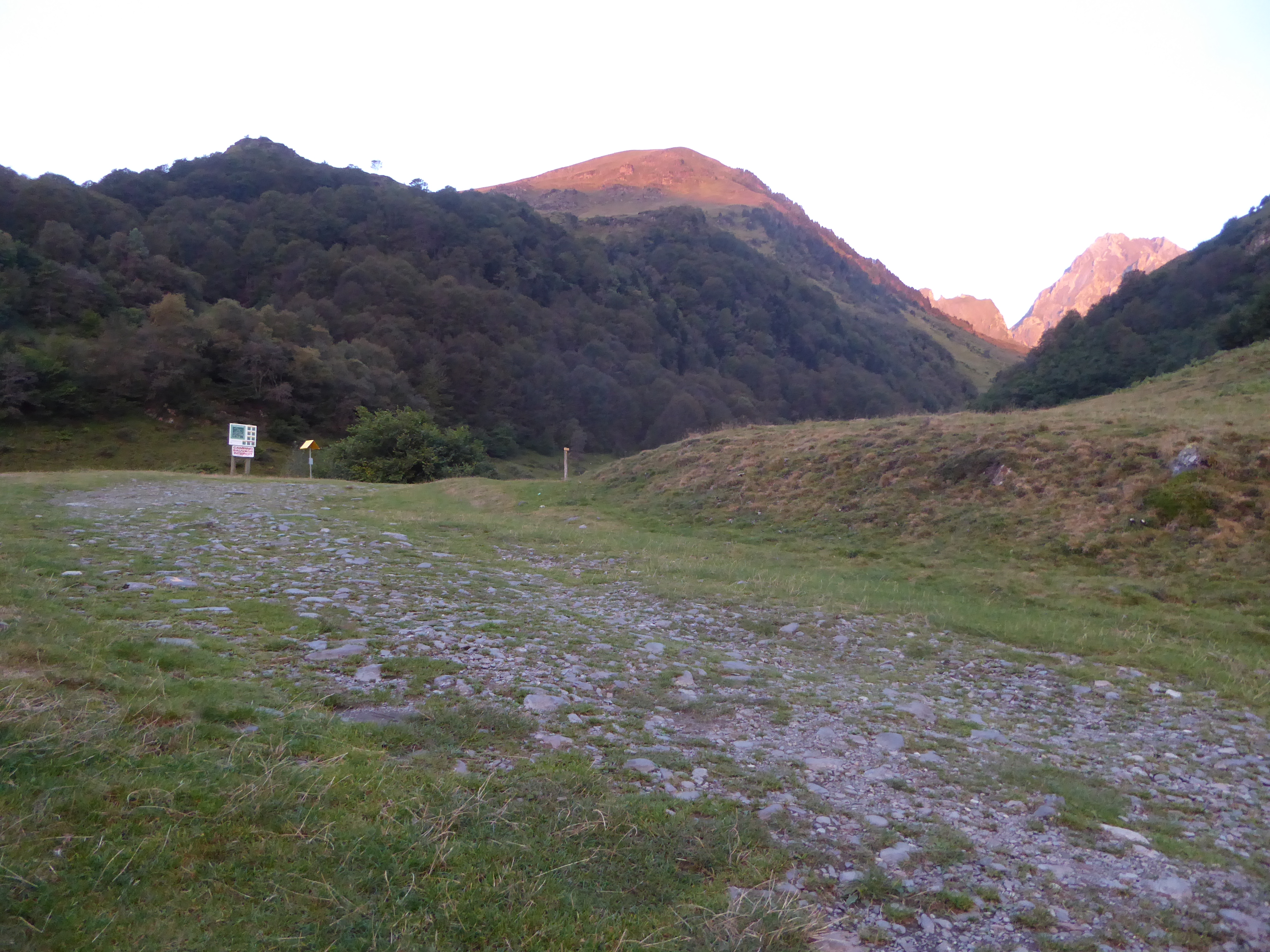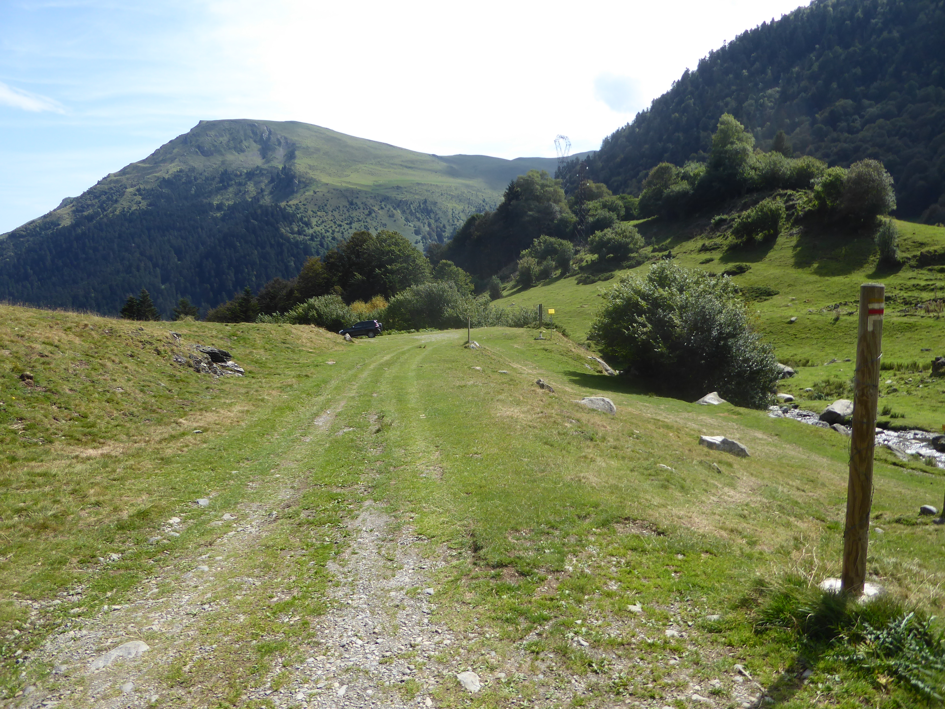 Départ Virage d'Artigues (1274 m) : suivre le large chemin montant raidement tout droit direction Pic du Midi, balisé en jaune