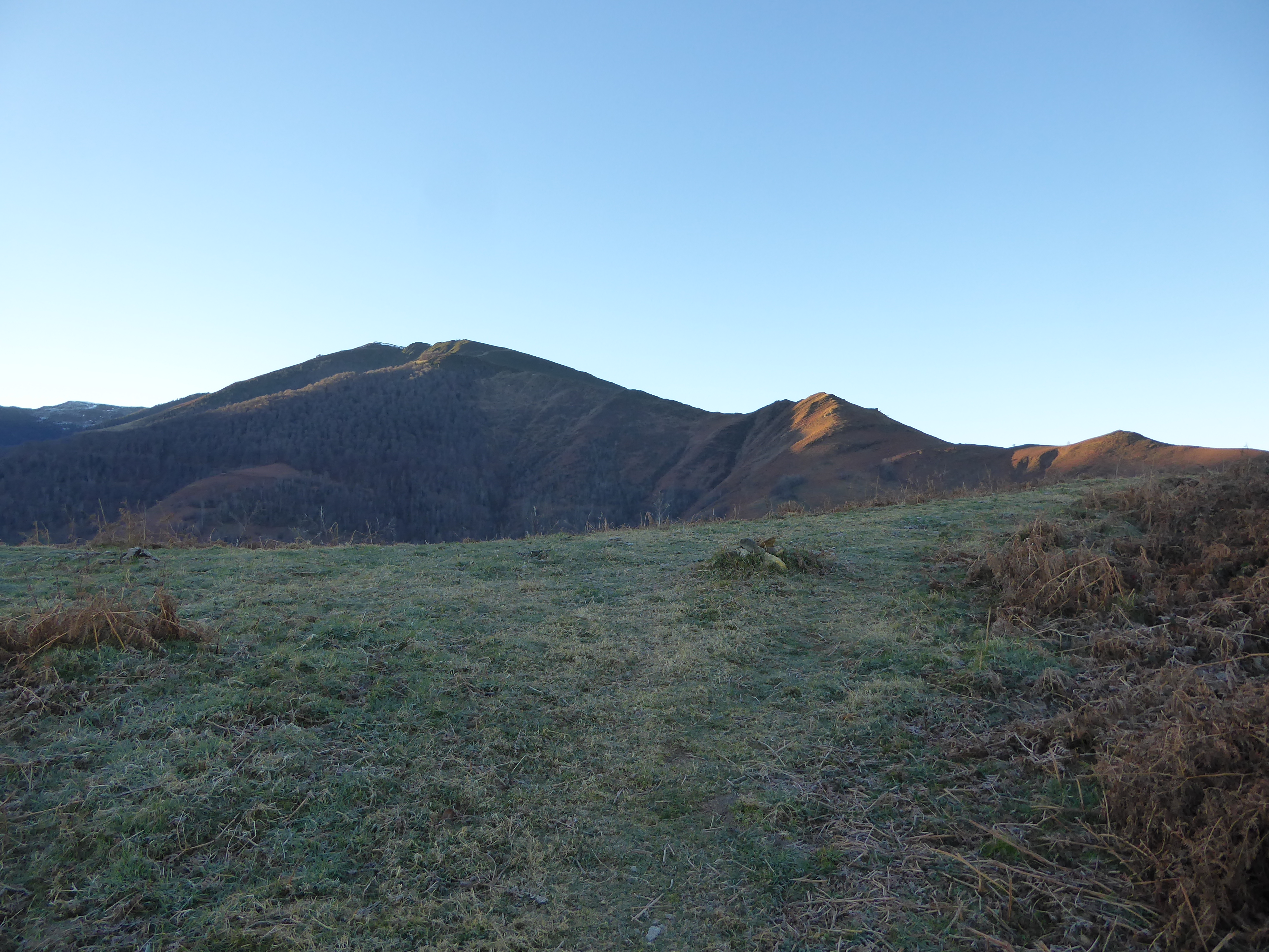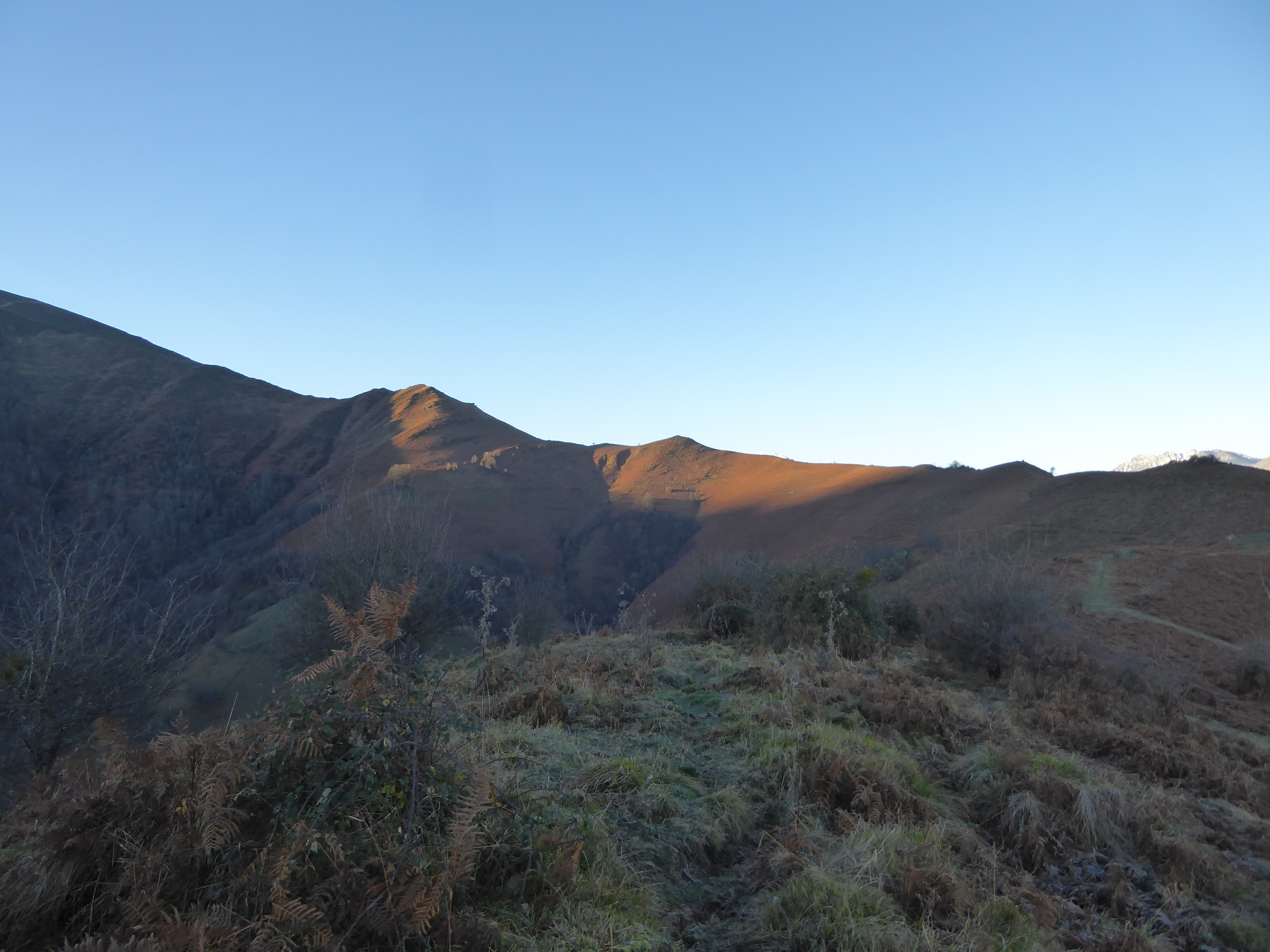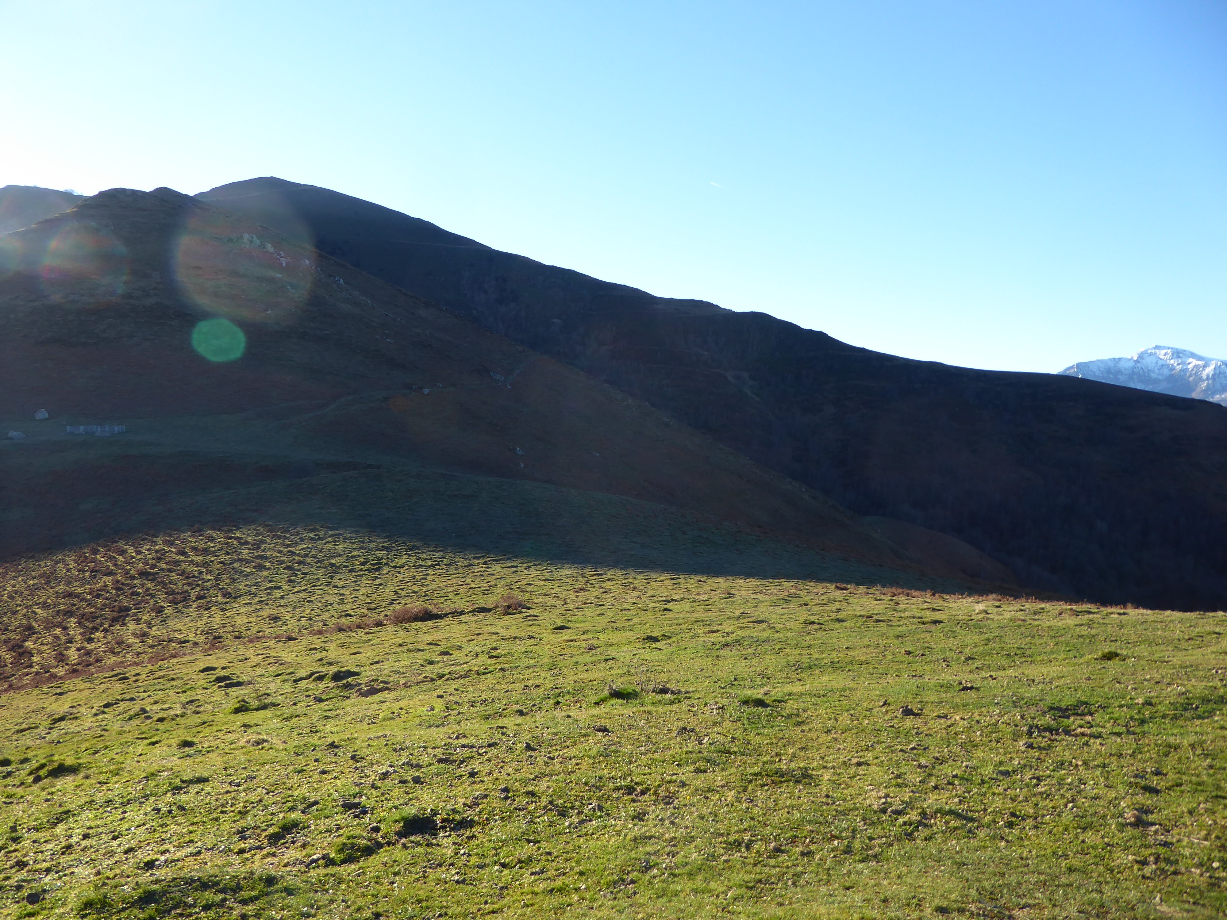 Monter hors sentier sur cette raide pente herbeuse pour rejoindre le Tuquet de Lhési ; pour ceux qui ne veulent pas y monter, contourner ce sommet par le chemin de droite