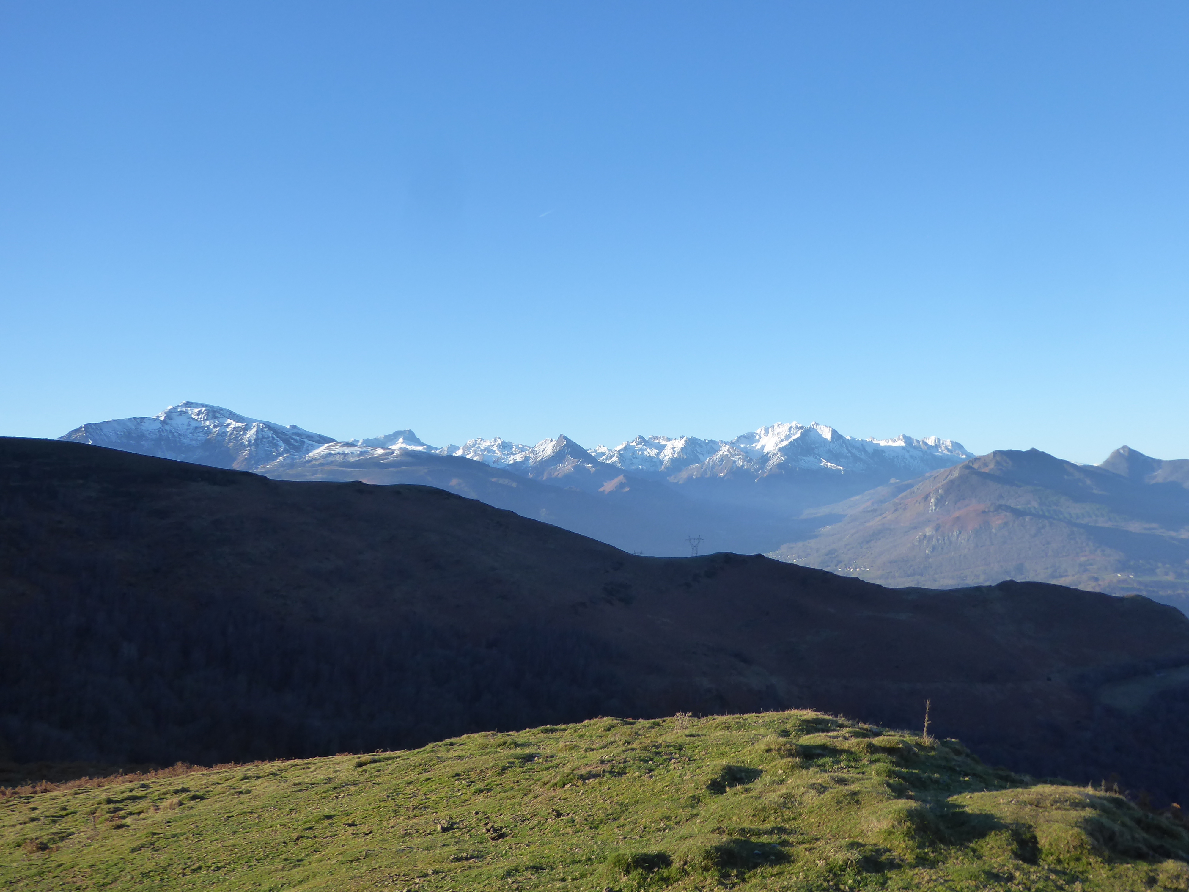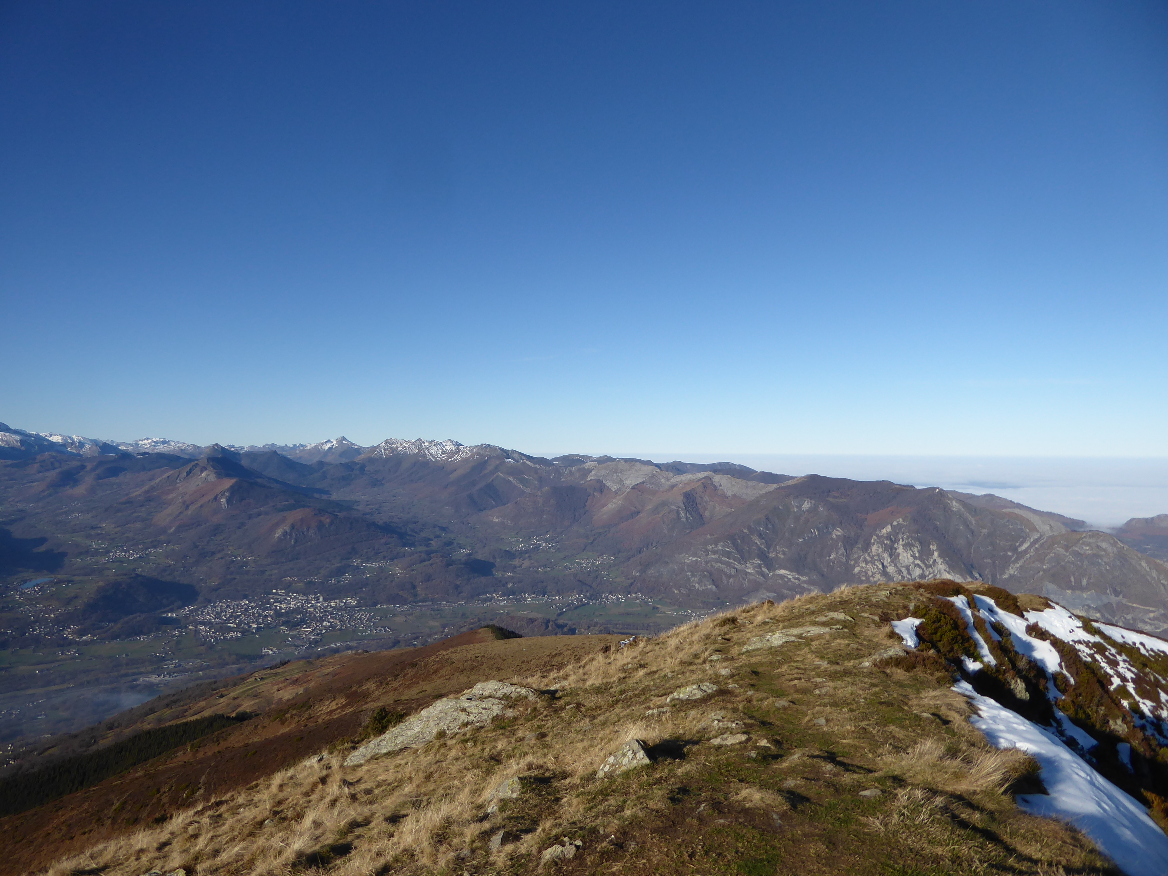 Arrivée au sommet du Soum de Trézères (1617 m) : panorama bien plus étendu que celui du Soum des Lits ... les secteurs du Midi de Bigorre, de Cauterets, du Balaïtous et du Val d'Azun sont bien visibles ! (panorama pris au retour)