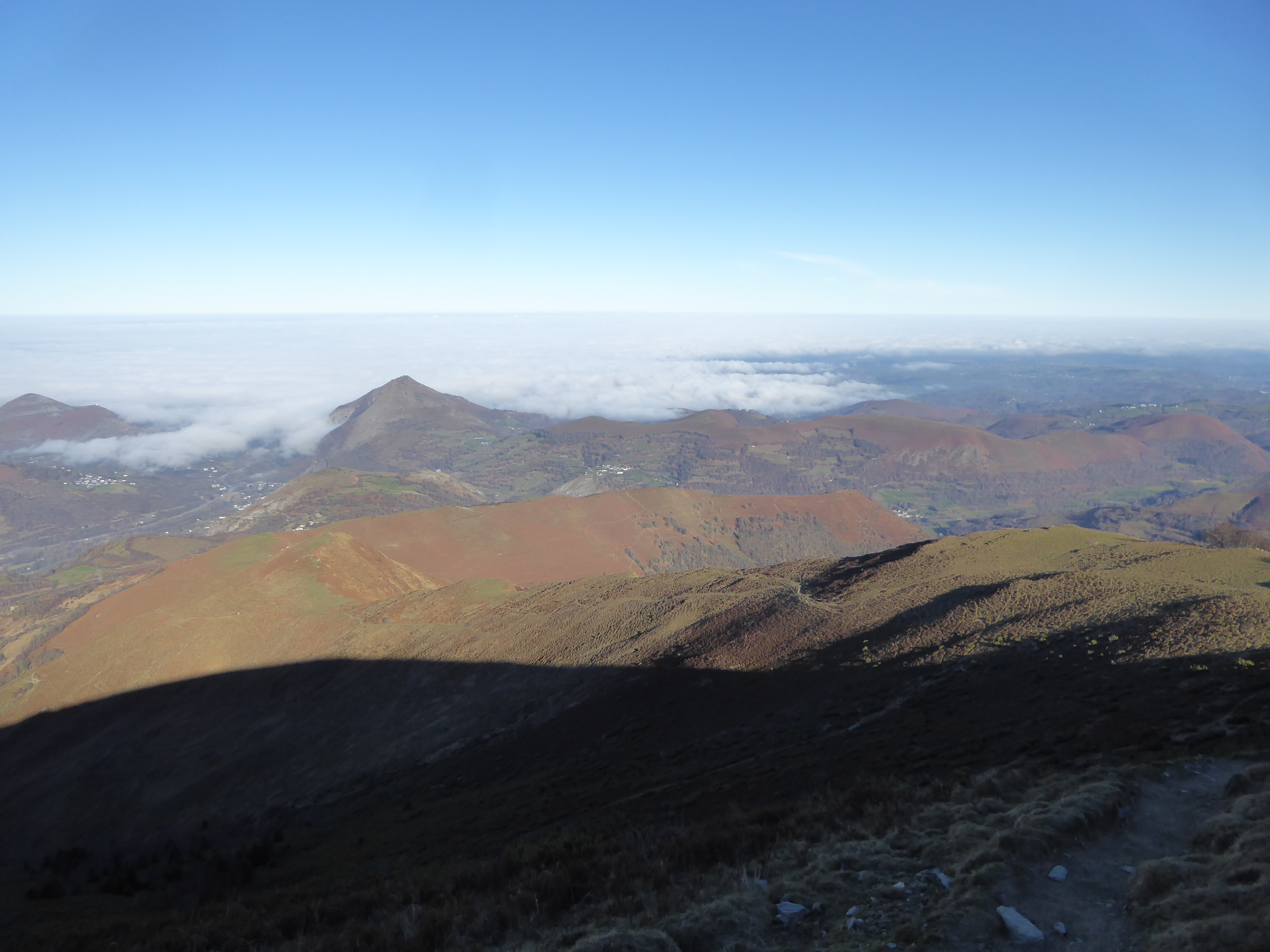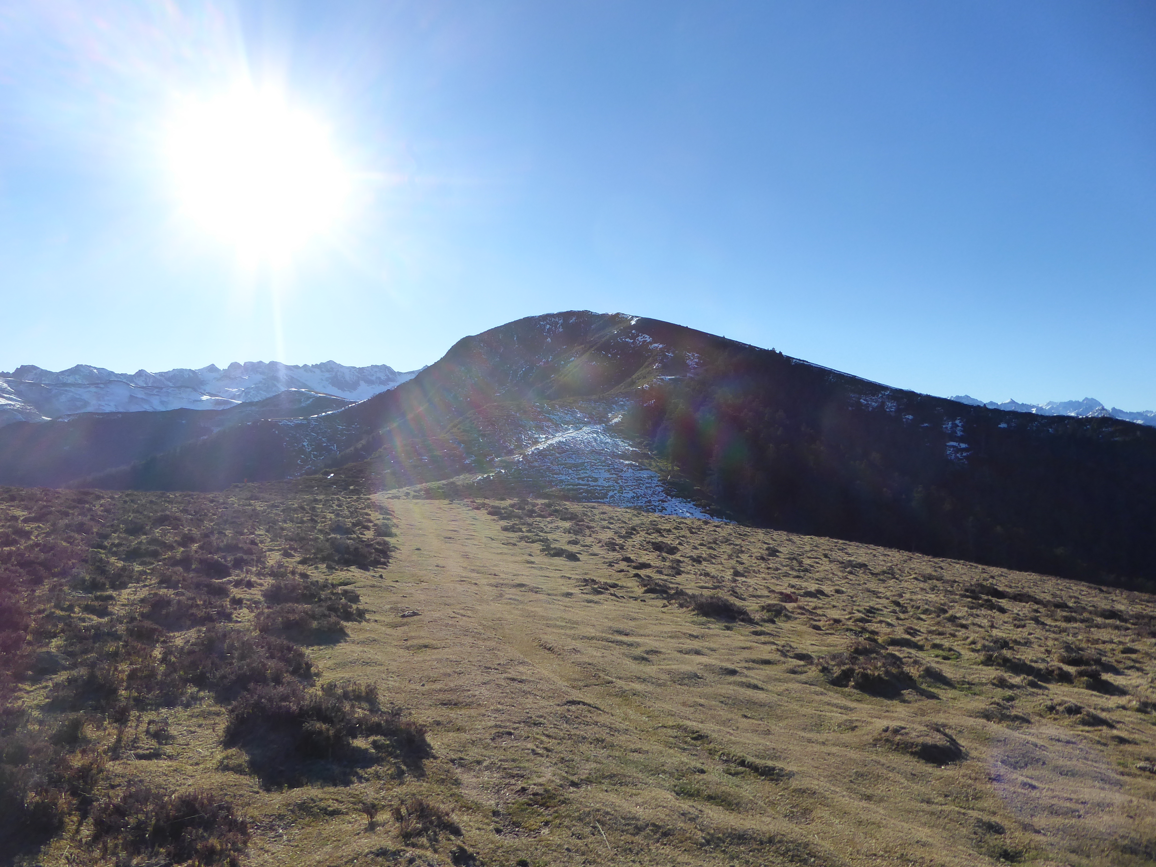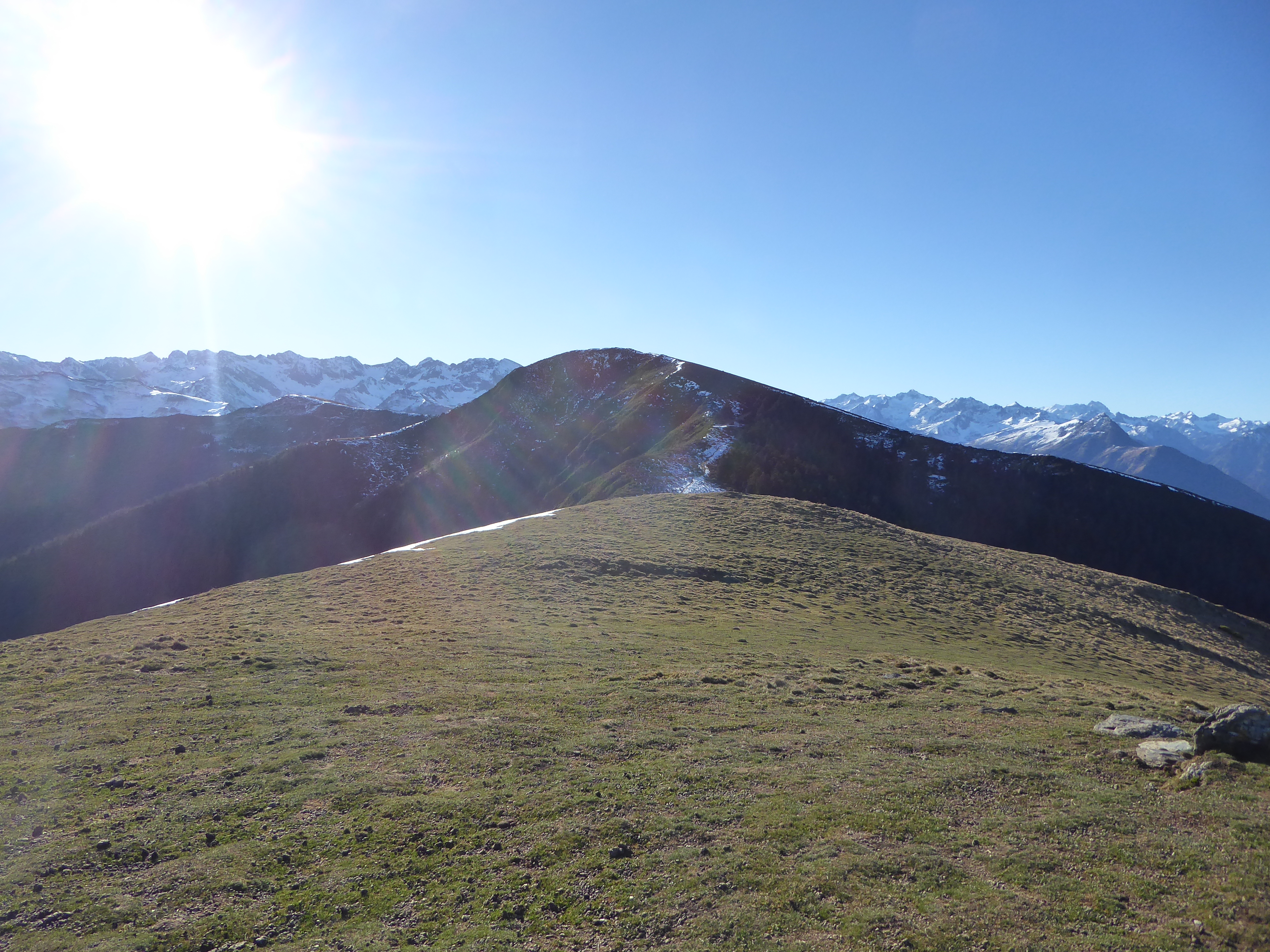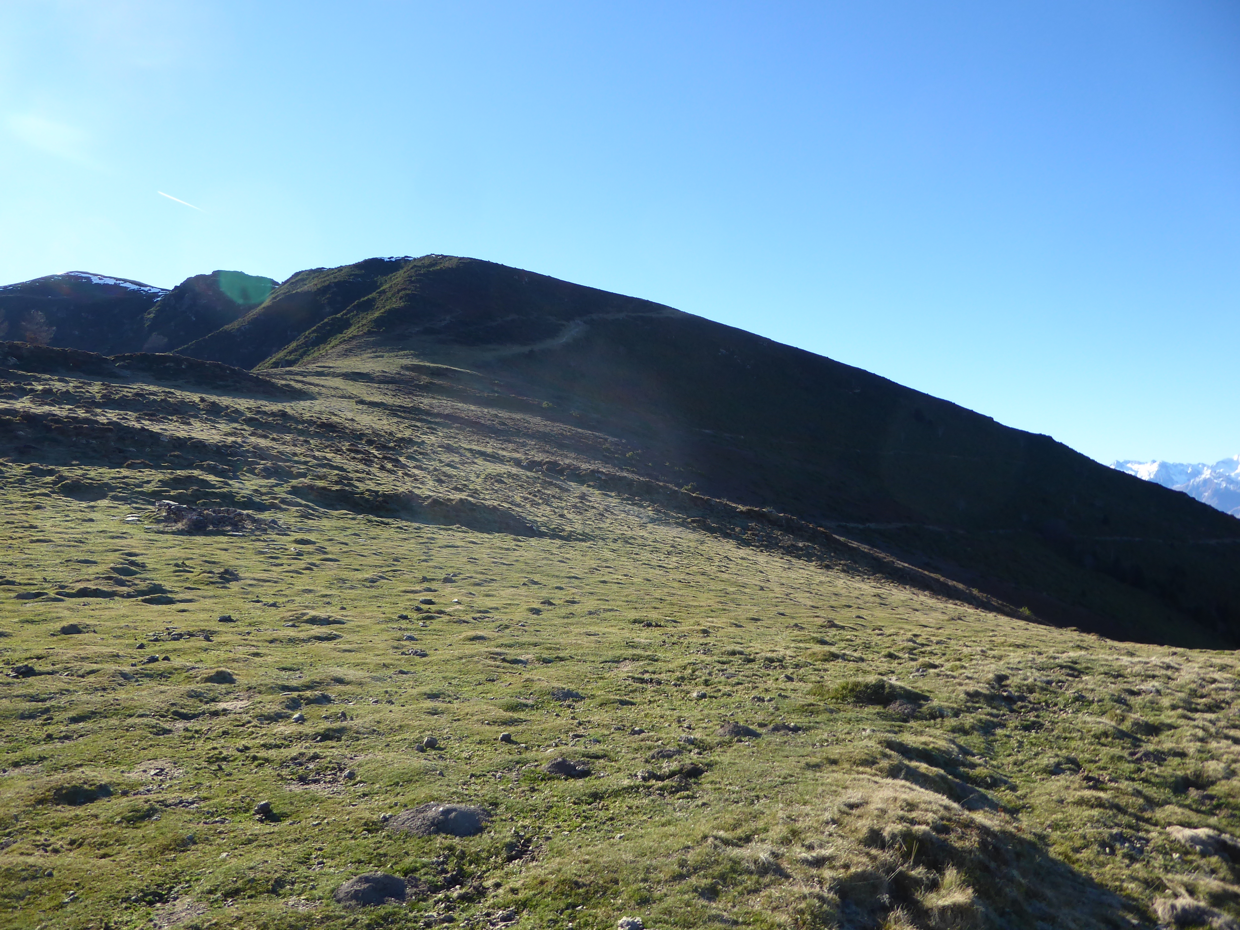 Redescendre du sommet dans le même sens que celui de l'aller en suivant le fil de crête direction Tuquet de Lhési