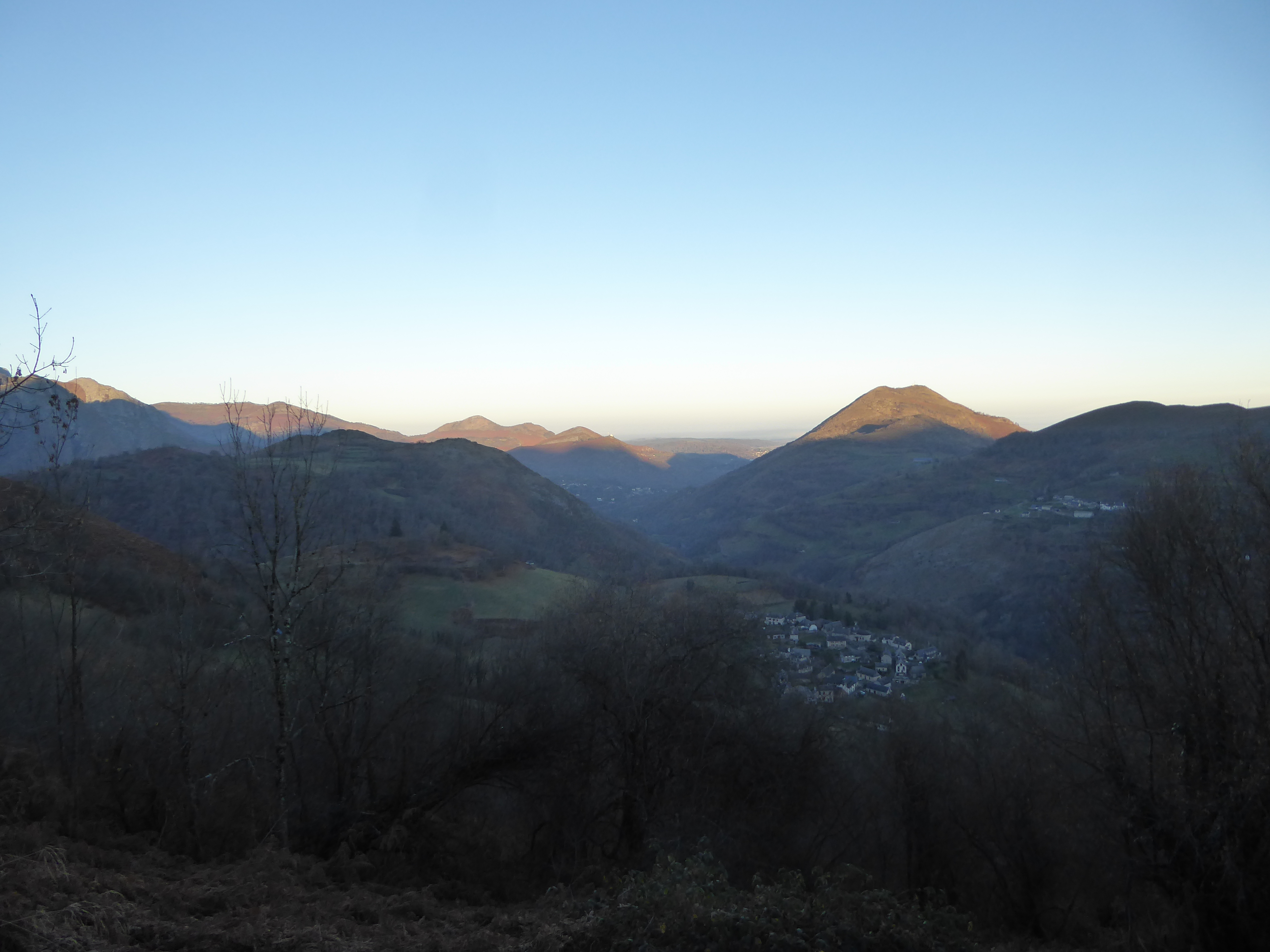 Lever de soleil sur la Vallée de Castelloubon ... le village d'Ousté en contrebas et Lourdes en fond de vallée