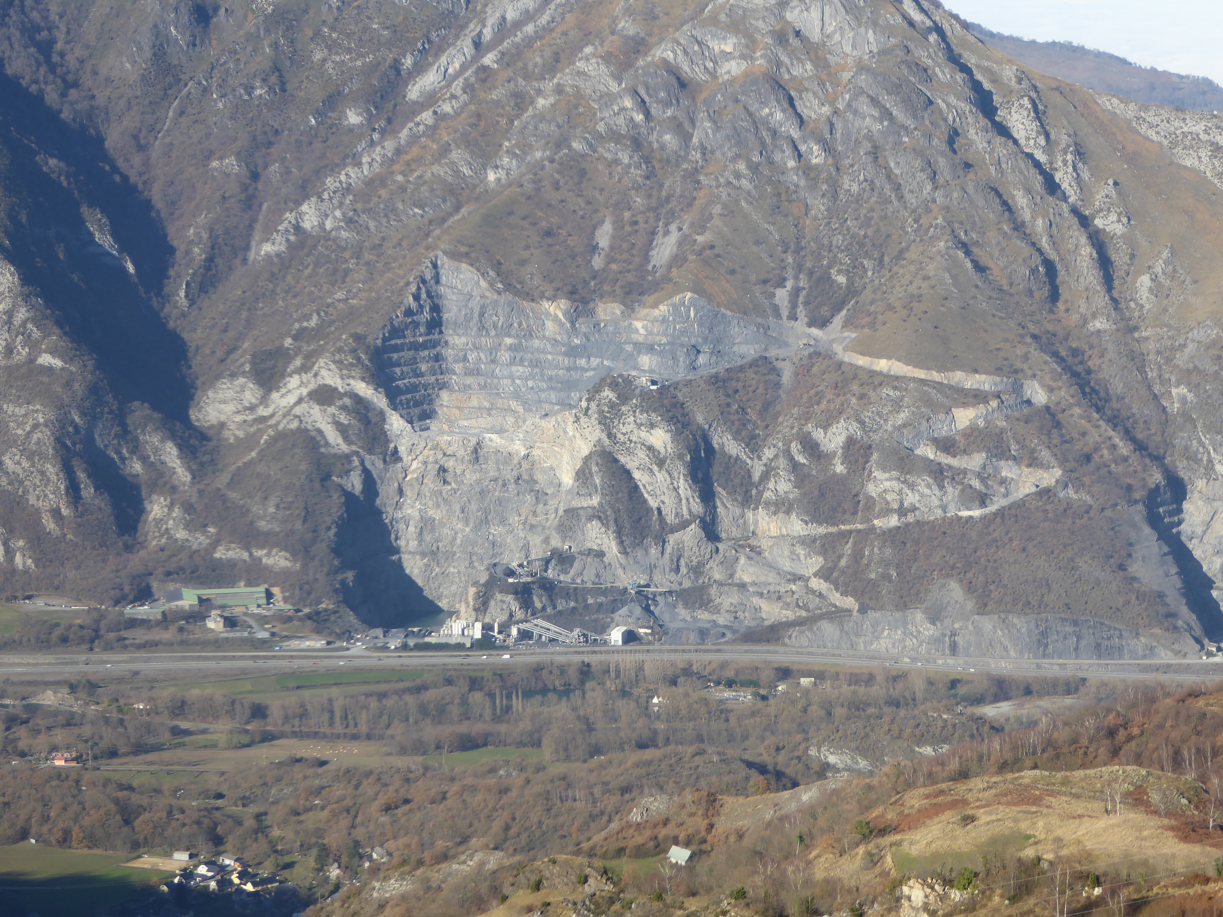 Vue plongeante sur la carrière d'Agos-Vidalos en bordure de la D821