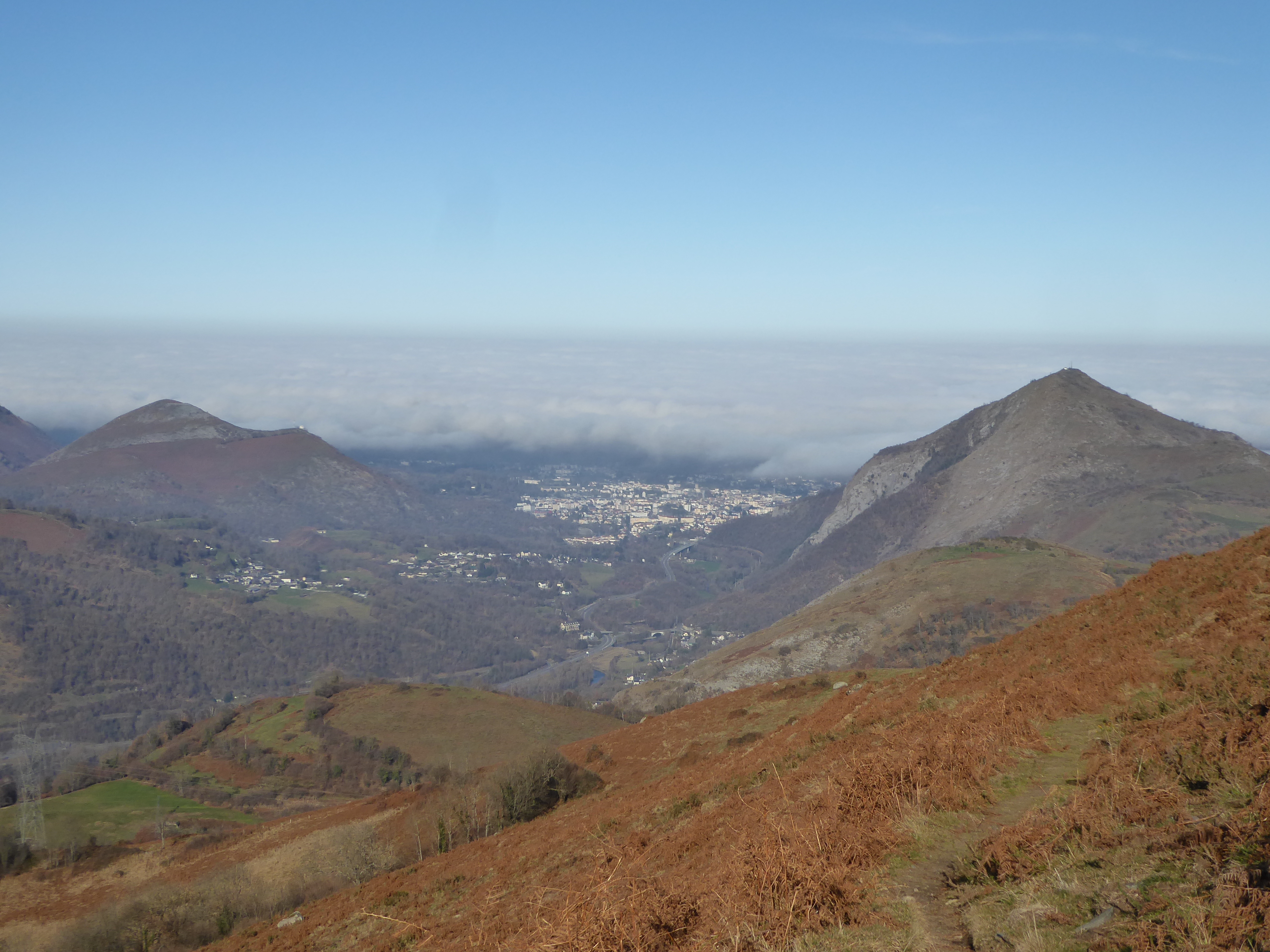 Timide soleil d'hiver sur la Vallée des Gaves et Lourdes ... la plaine est noyée sous les nuages bas et le brouillard !