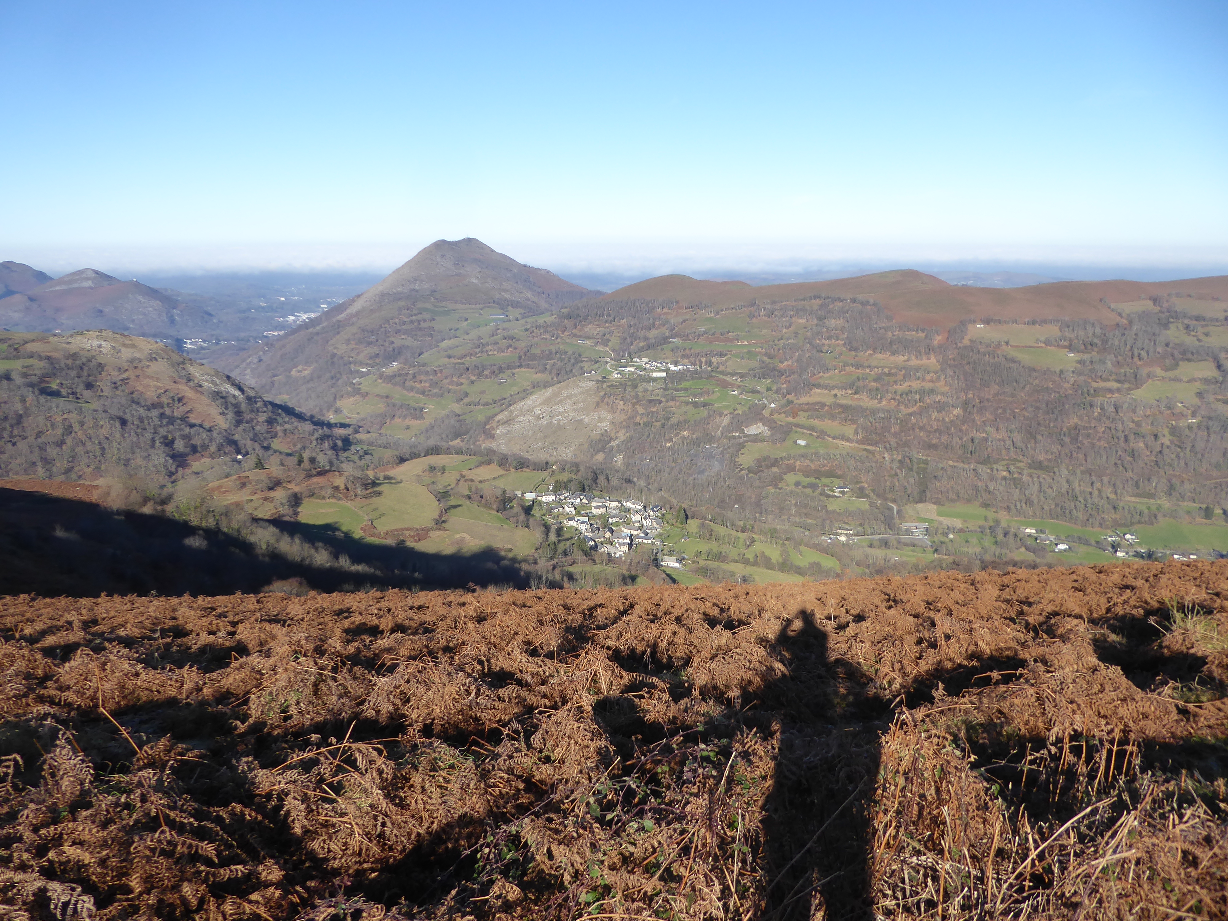 En prenant de l'alitude, on aperçoit clairement la Vallée des Gaves avec la ville d'Argelès-Gazost en contrebas ... ainsi que la Vallée du Bergons à droite et le Val d'Azun à gauche