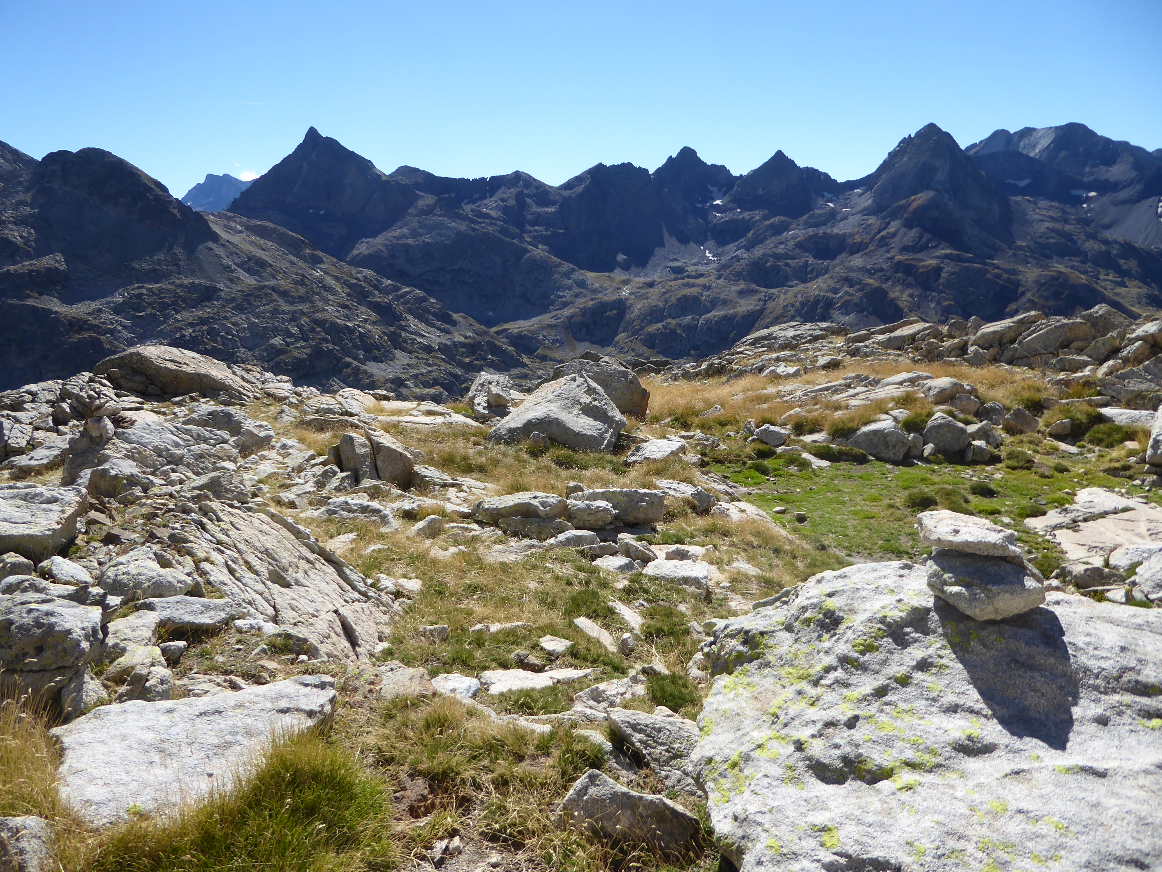 - Présence de deux séries de cairns dans les éboulis : suivre celle partant "vers la gauche" et suivant plus ou moins la frontière franco-espagnole