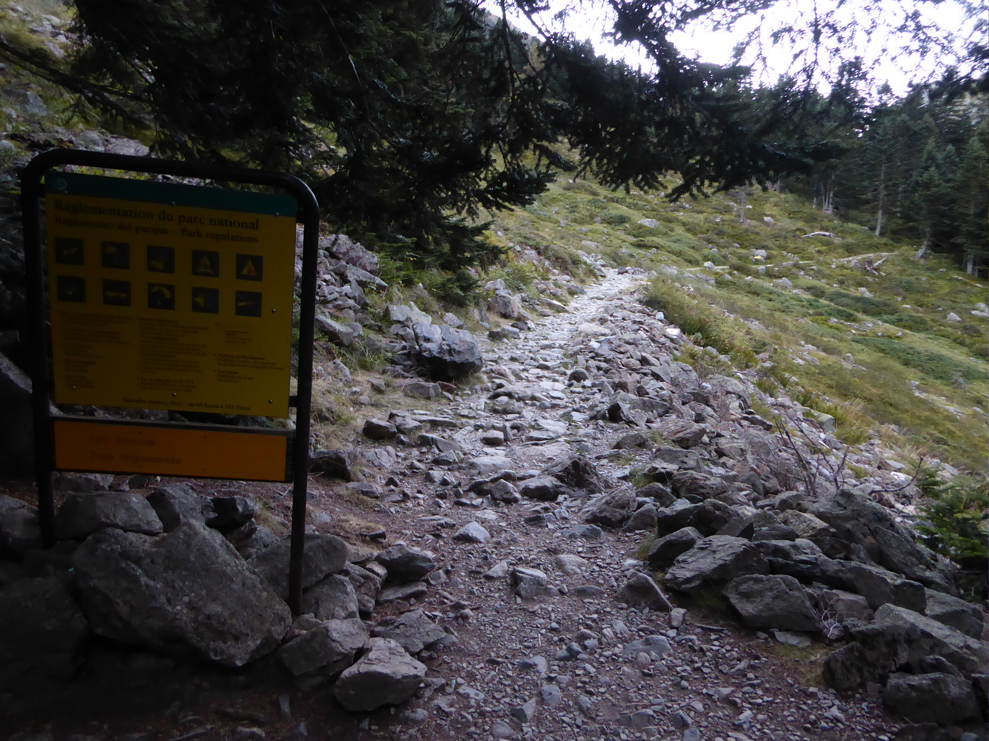 Départ Parking du Plaa d'Aste (1473 m) : suivre le chemin partant sur la gauche et traversant une passerelle direction Port de la Peyre Saint-Martin, aucun balisage