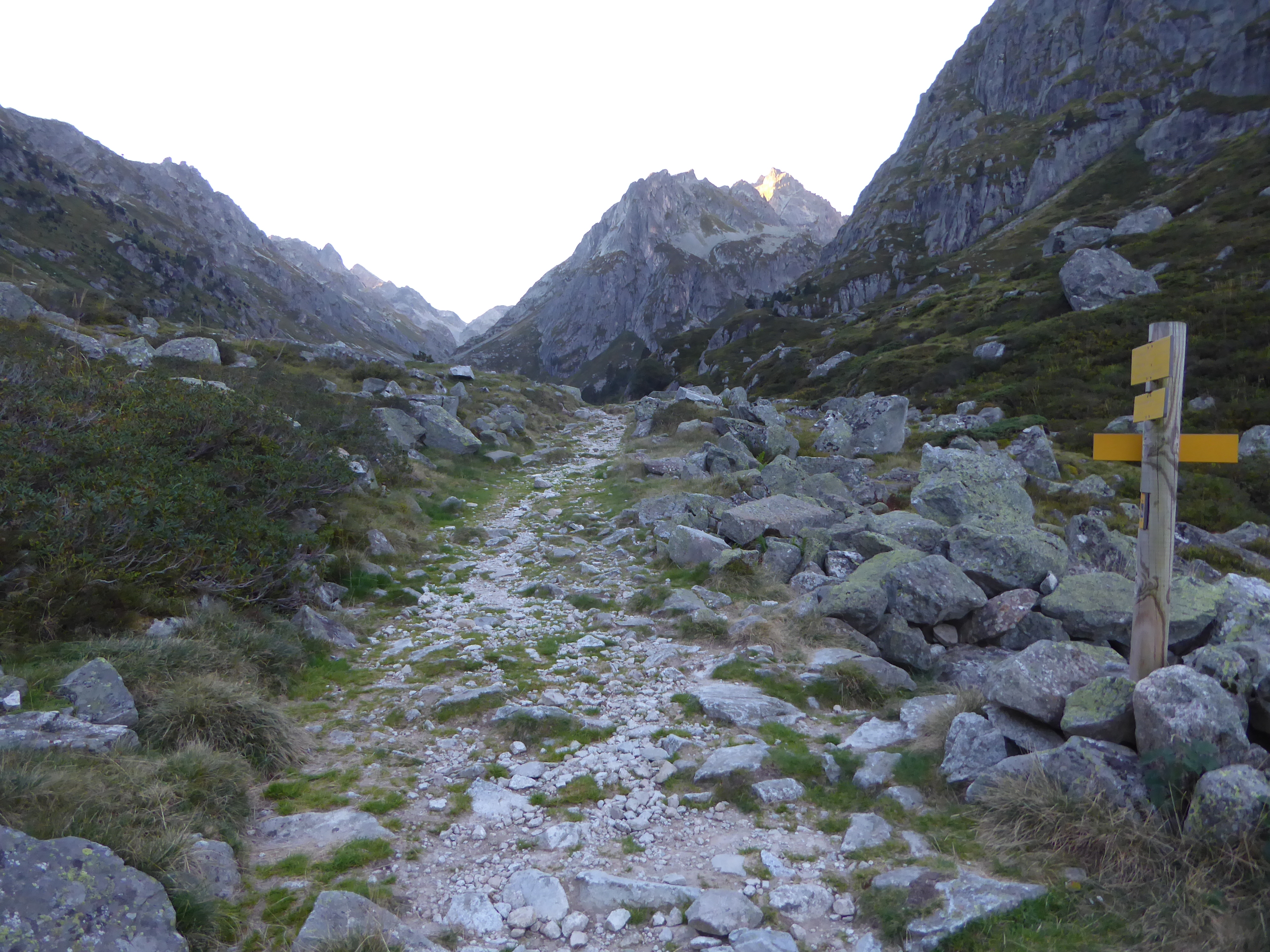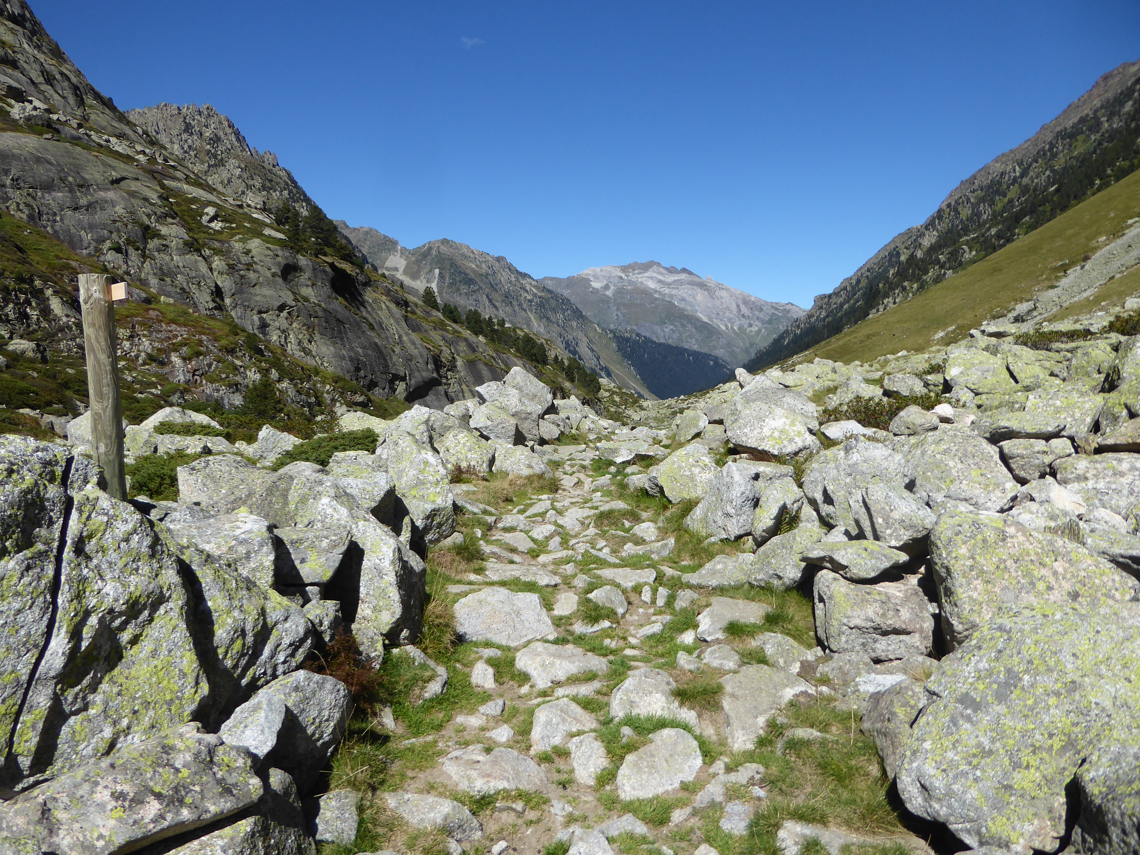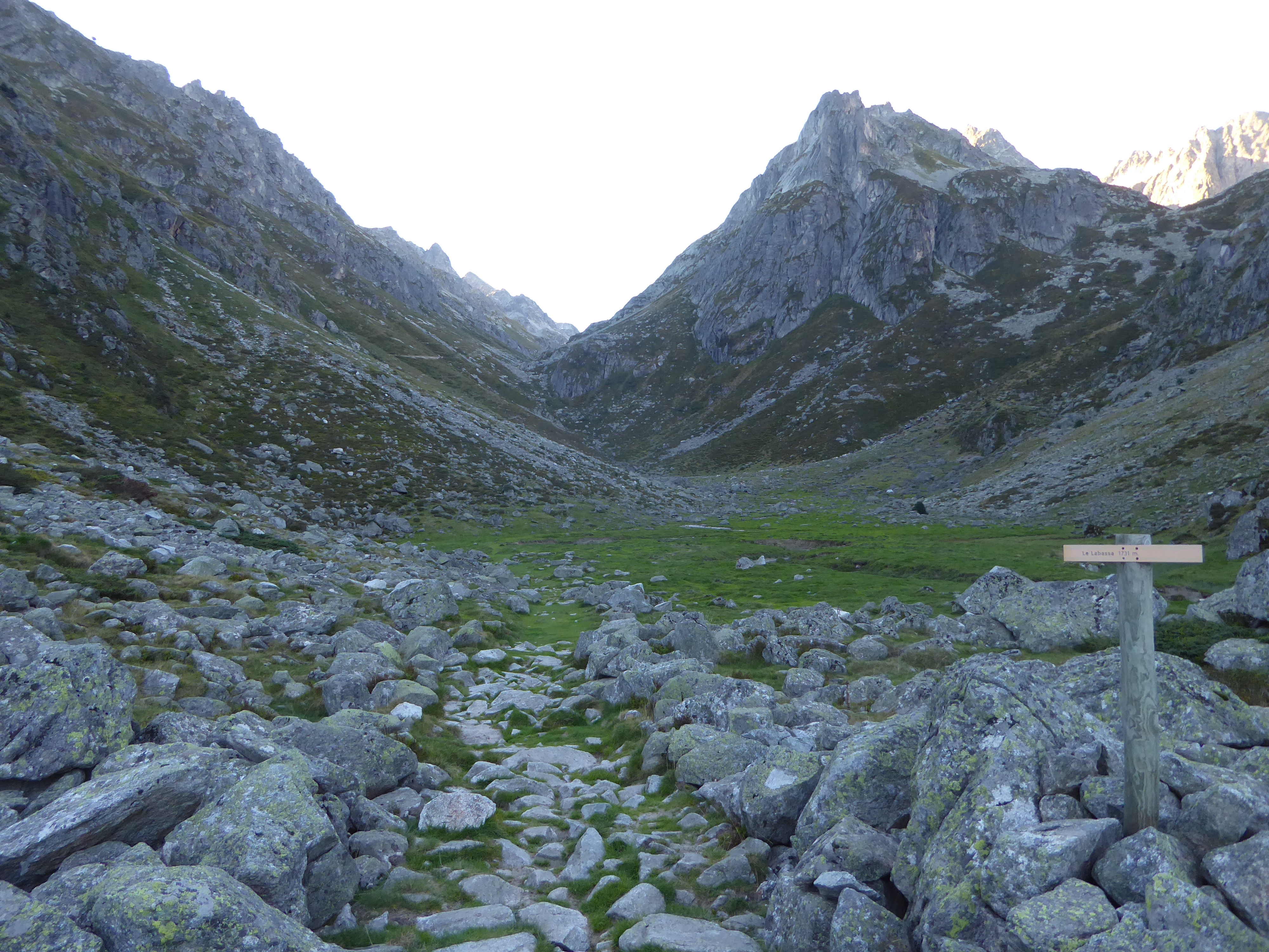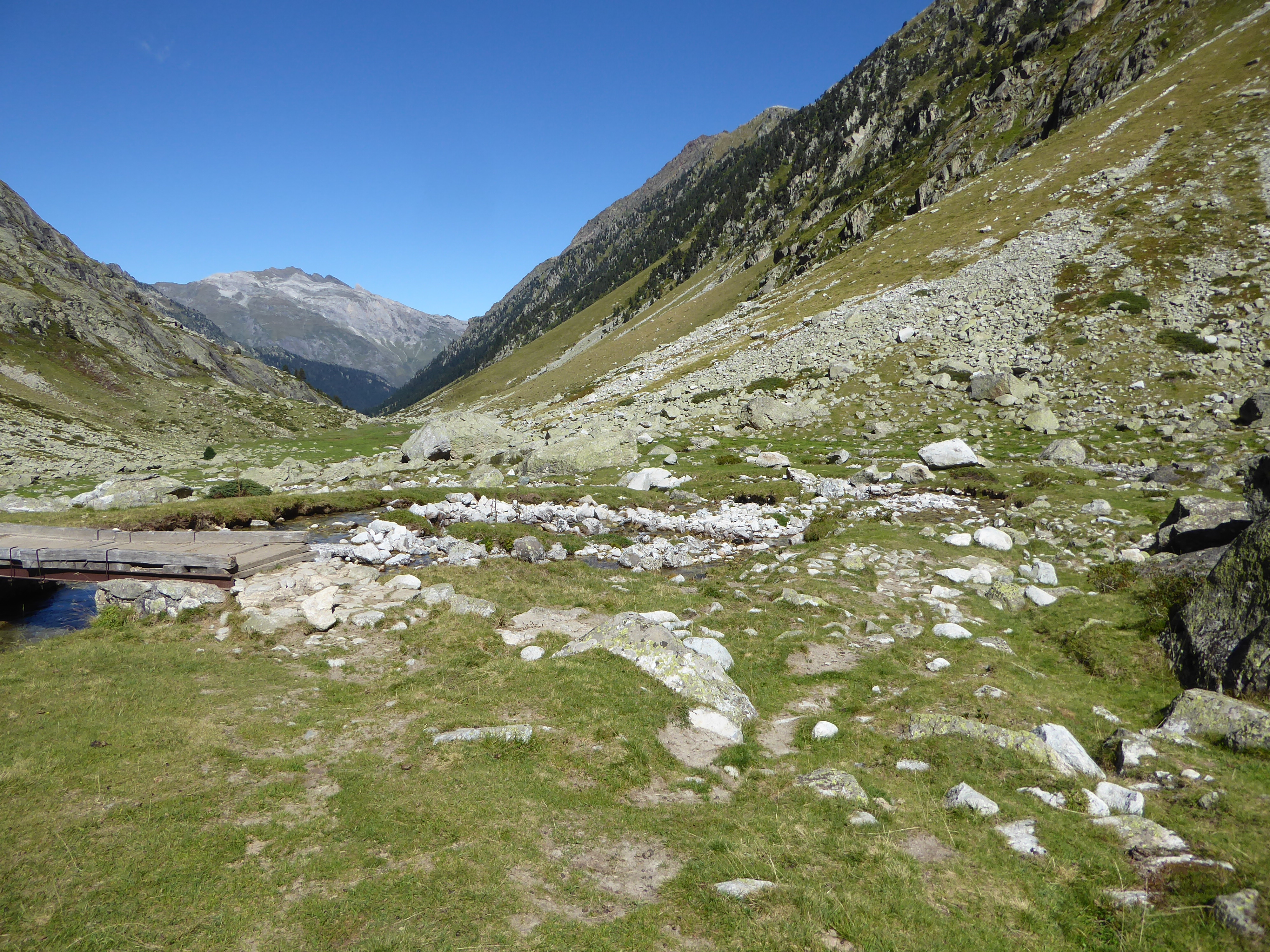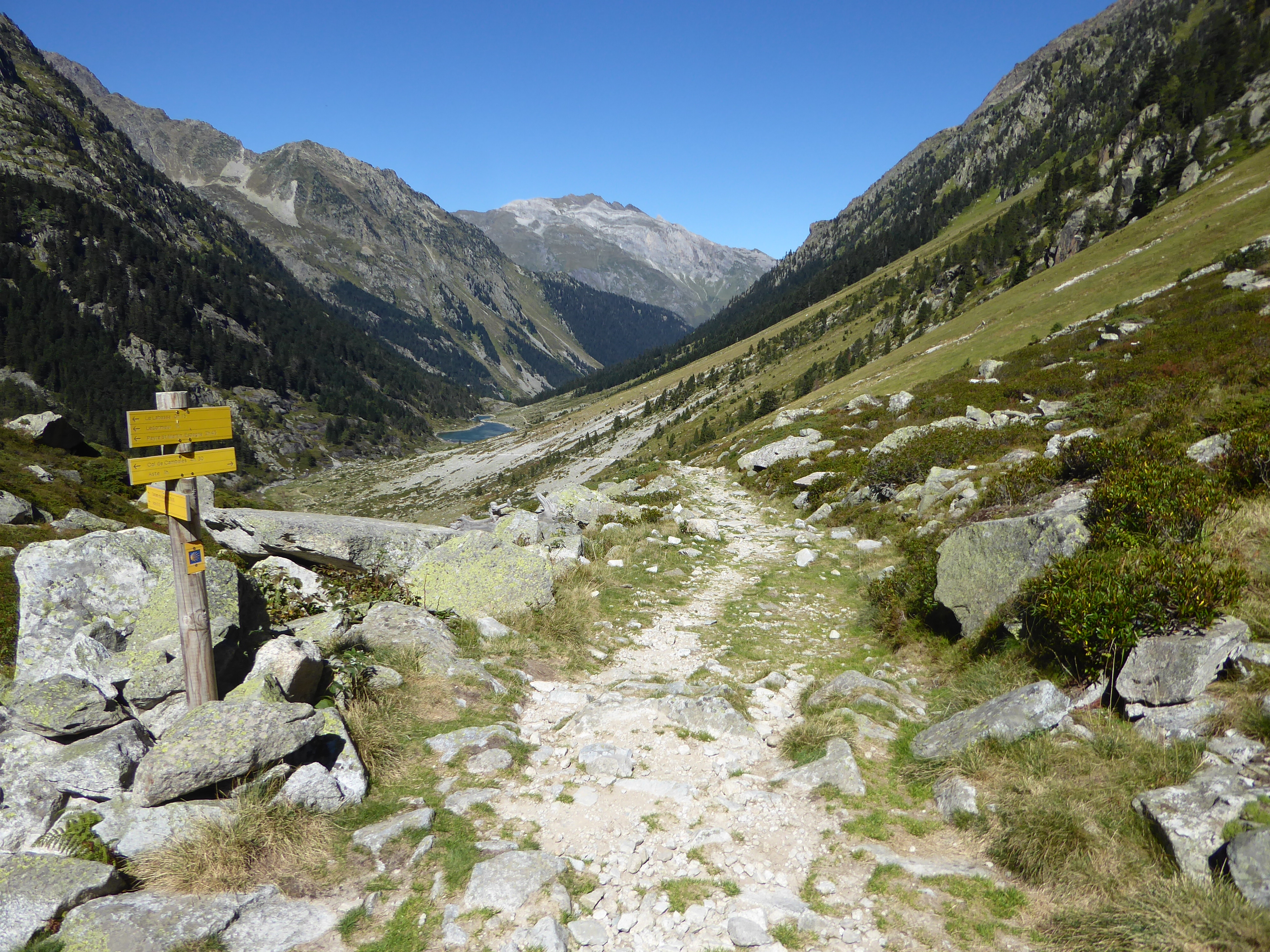 Le Labassa (1731 m) : continuer à suivre le chemin partant tout droit (plus ou moins bien tracé dans l'herbe) et rester rive droite du Gave d'Arrens direction Port de la Peyre Saint-Martin