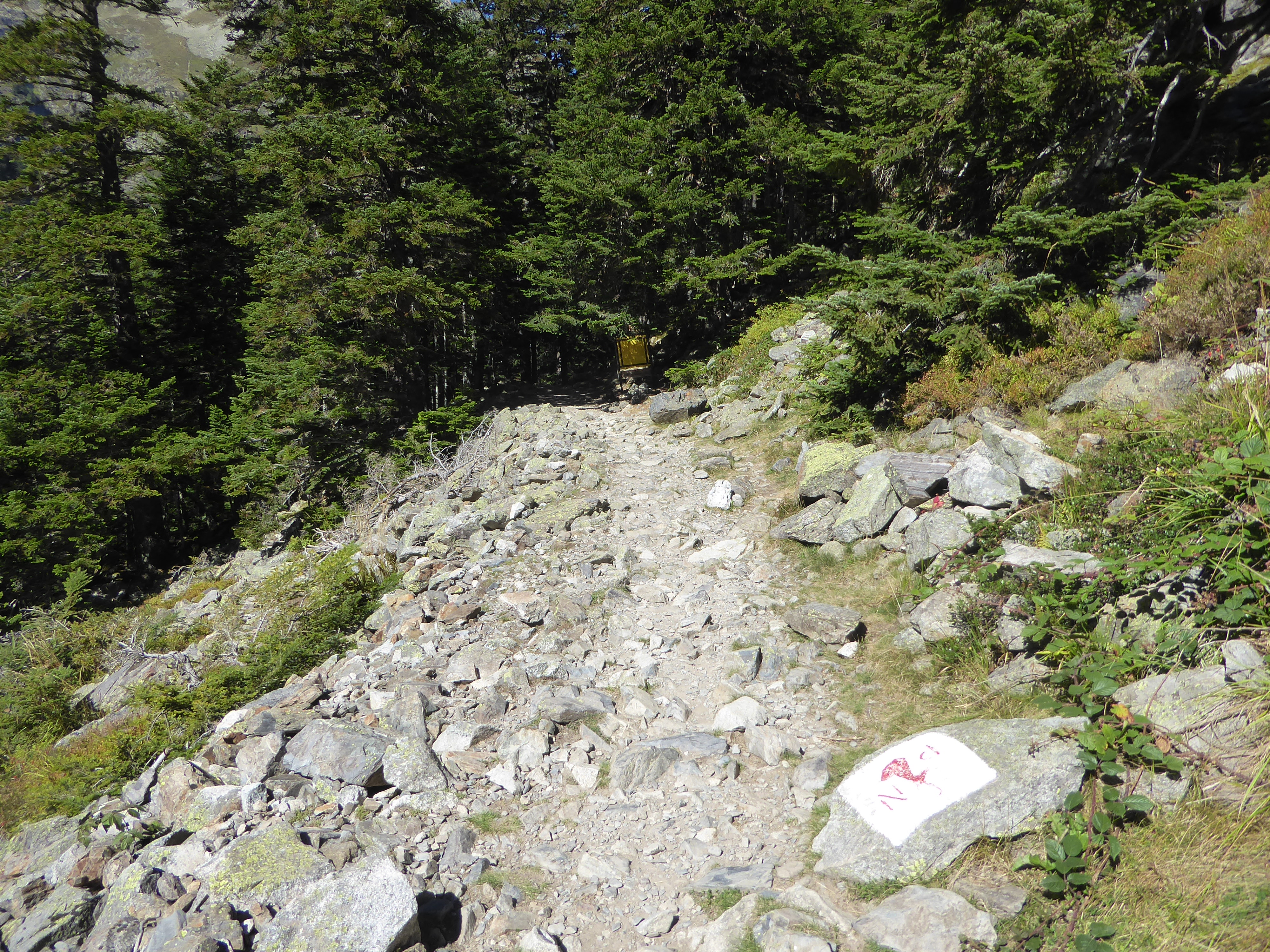 Lac de Rémoulis (2067 m) : continuer à suivre le chemin descendant tout droit direction Parking du Plaa d'Aste
